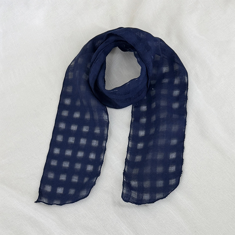 • 린넨 솔리드 컬러 롱 스카프-네이비블루
