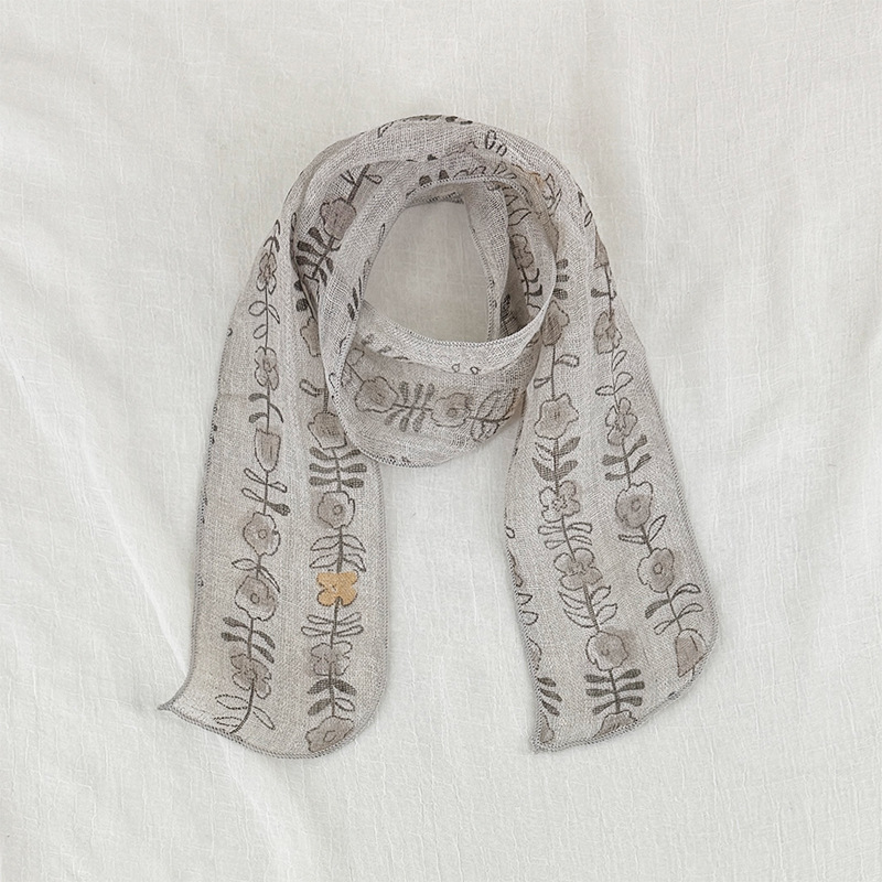 • 린넨 롱 스카프 - 꽃덩굴 스트립