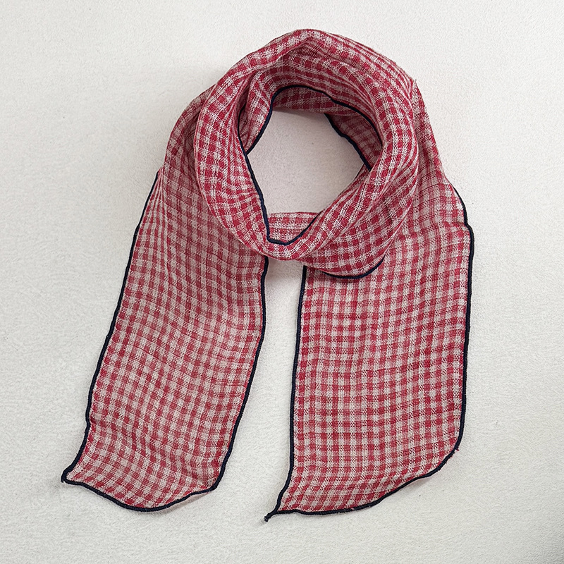 봄과 여름 새로운 빈티지 리넨 작은 긴 스카프 예술 모든 경기 여자 목 보호 작은 스카프 패션 올 매치 스카프 액세서리스토어 가기