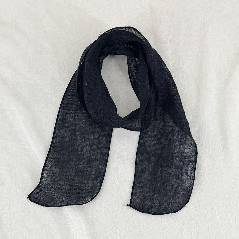 • 린넨 솔리드 컬러 롱 스카프-블랙