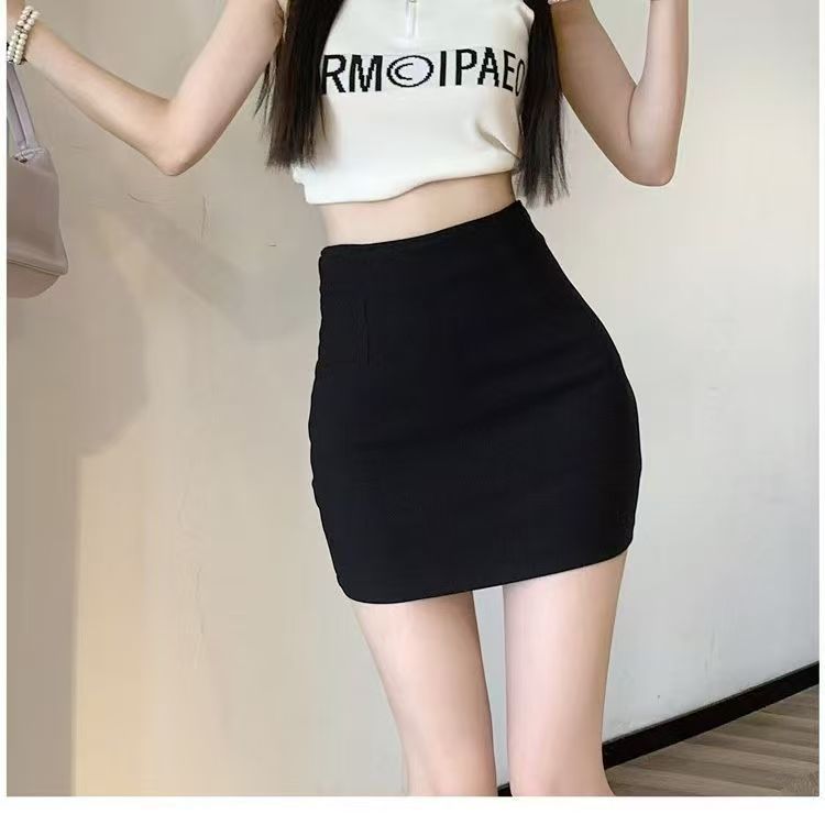 핫걸을 위한 하이웨이스트 미니스커트, 힙커버 스커트, 신장이 작은 사람들을 위한 신축성 있는 타이트 스커트, 노출 방지를 위한 블랙 스커트