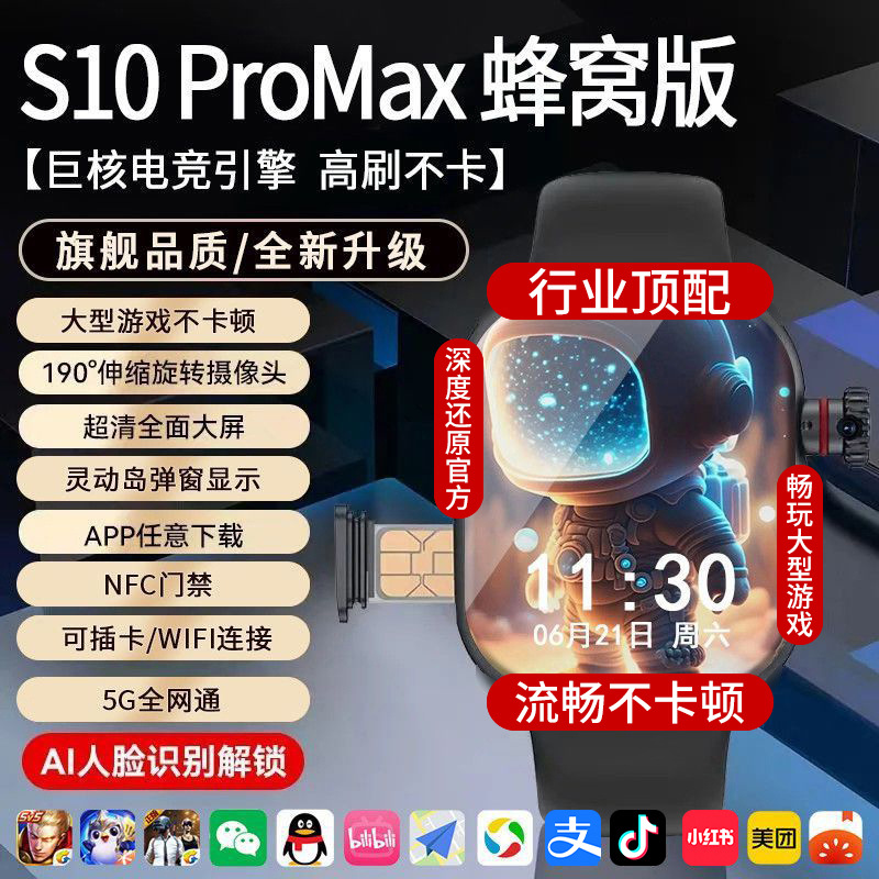Huaqiangbei S10 셀룰러 버전 Urtra2 스마트 시계 5g 전체 네트워크 다기능 카드 삽입 가능 사진 위치 지정 NFC스토어 가기