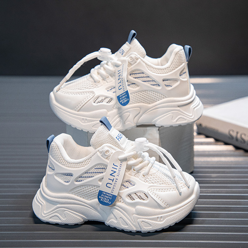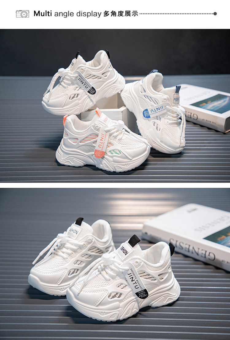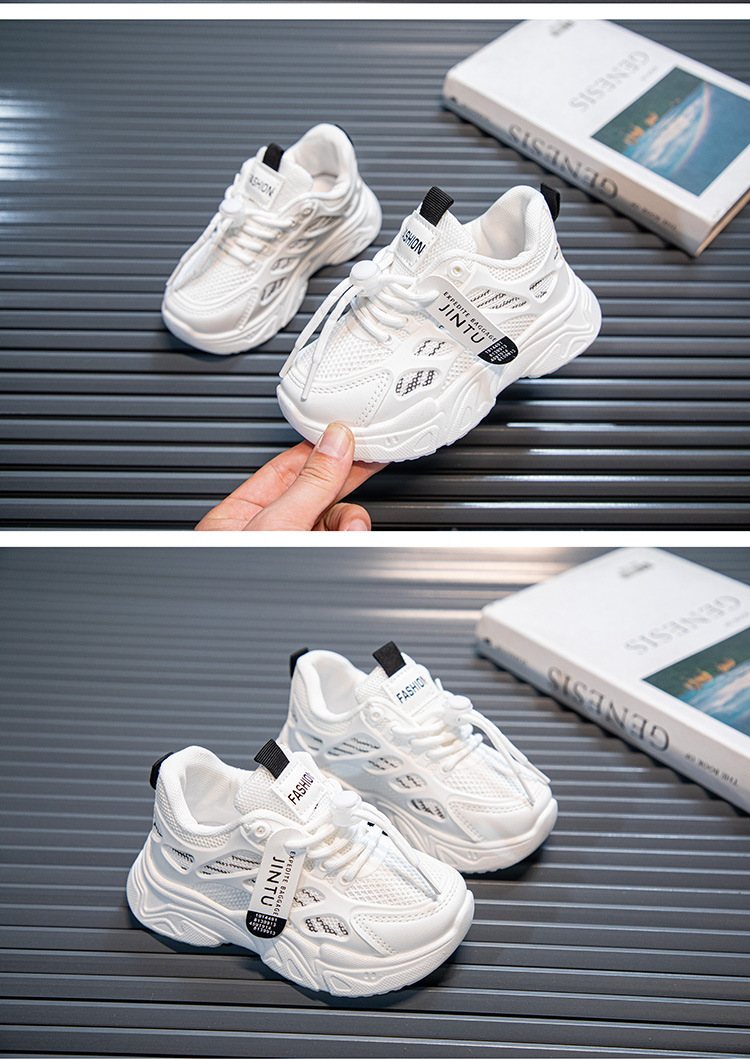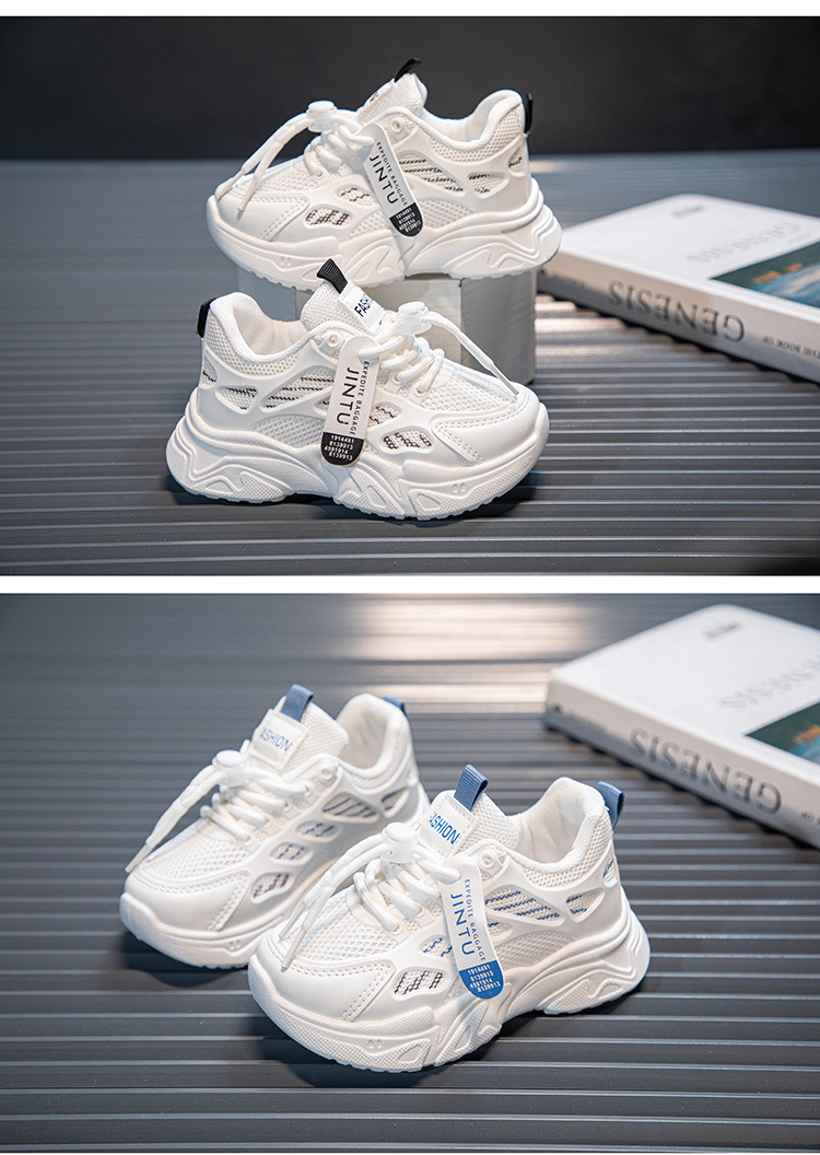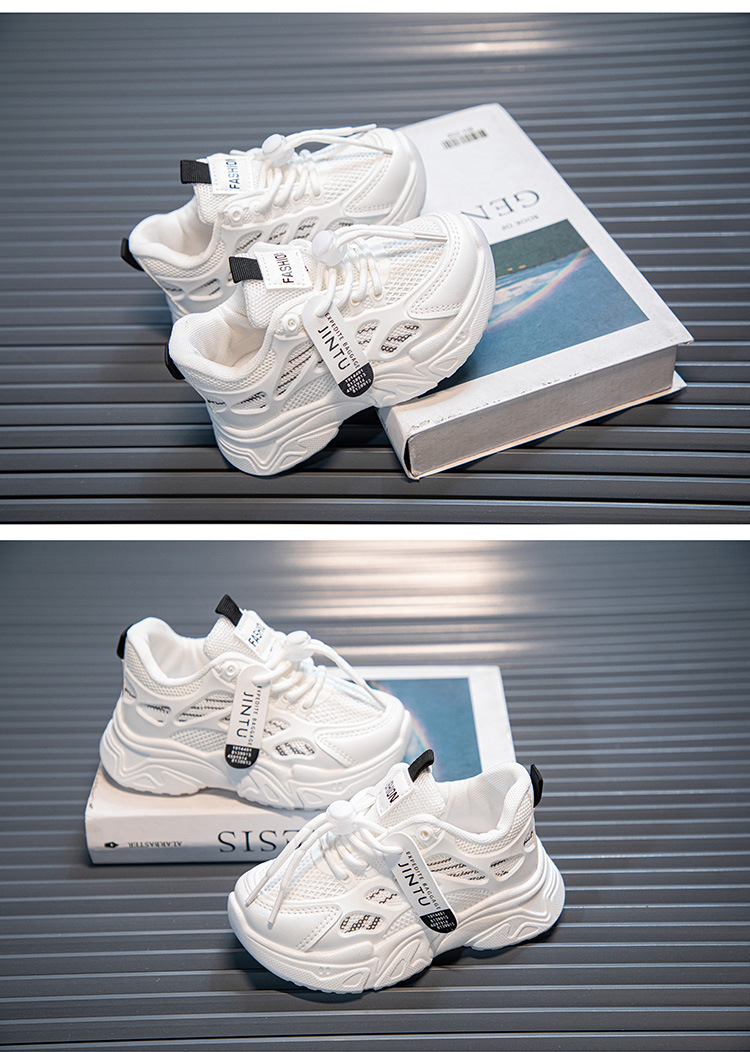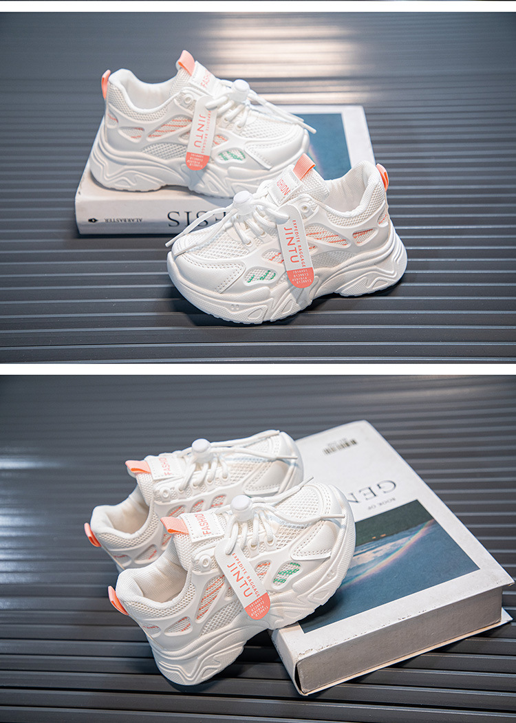 여아용 흰색 신발 2025 봄과 가을 새로운 부드러운 밑창 아동 운동화, 중대형 아동용 통기성 메쉬 여아 아빠 신발스토어 가기
