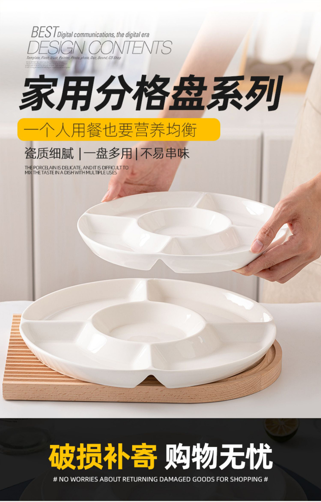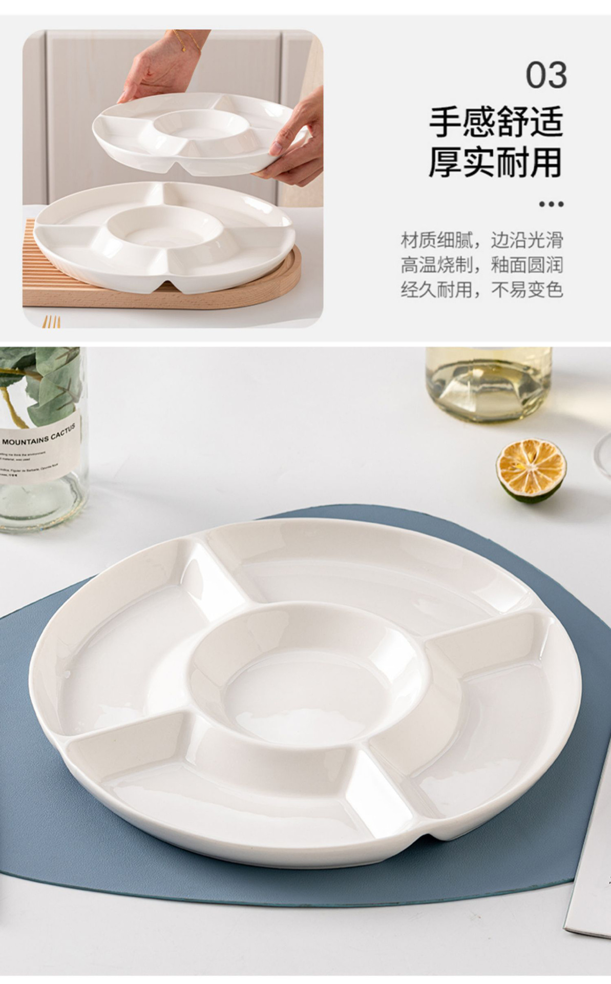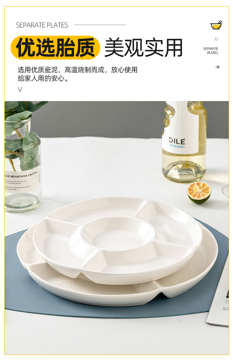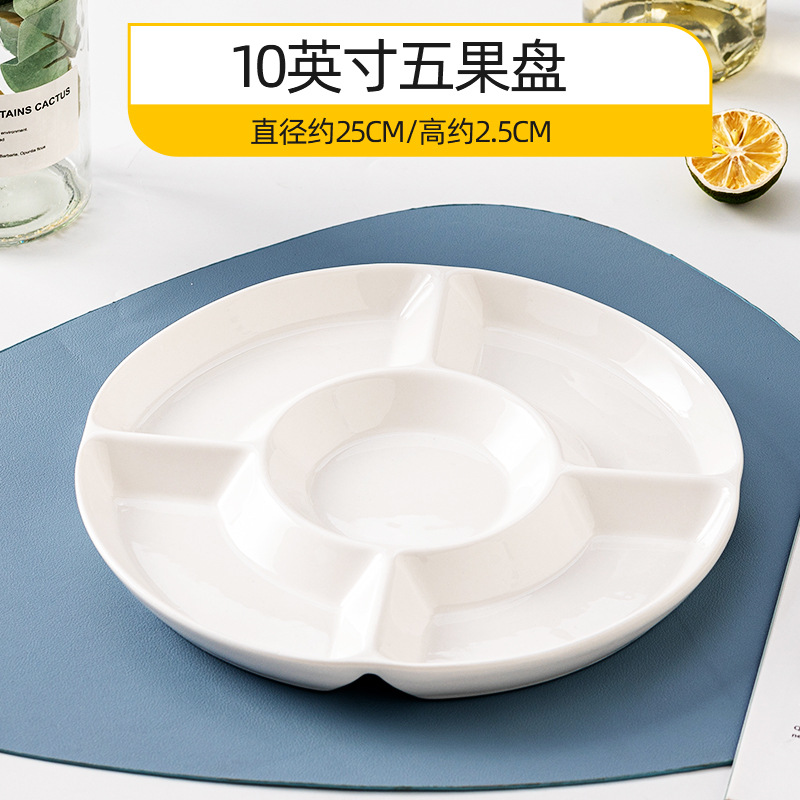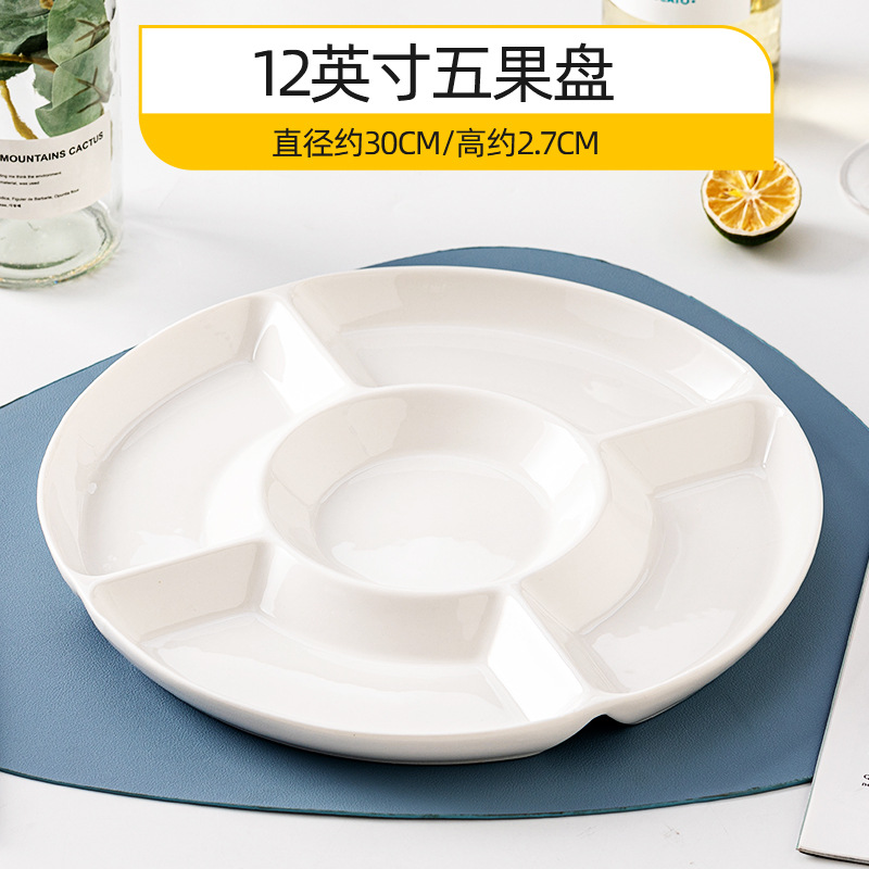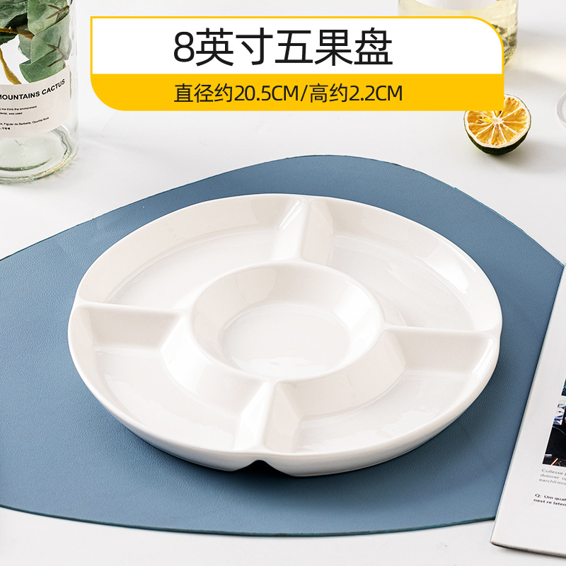 호텔 세라믹 디너 플레이트, 멀티 칸막이 플레이트, 조미료 플레이트, 과일 플래터, 원형 5칸 매리네이드 반찬 플레이트, 스낵 플레이트스토어 가기