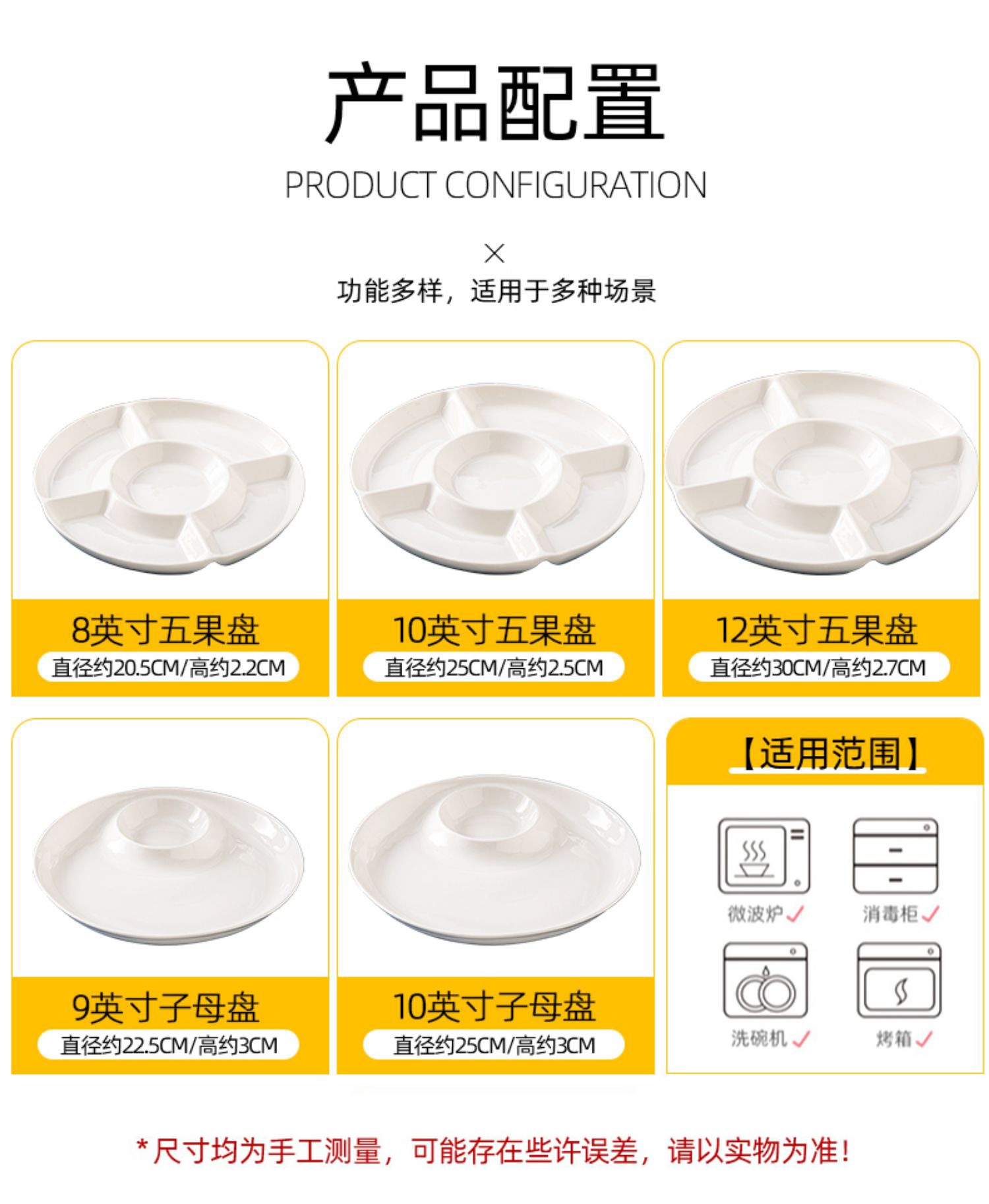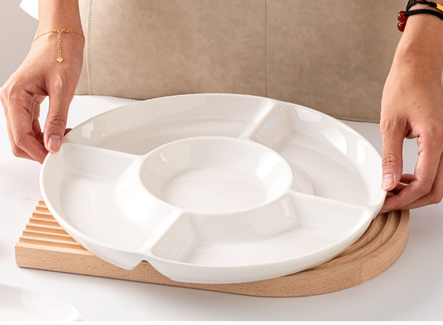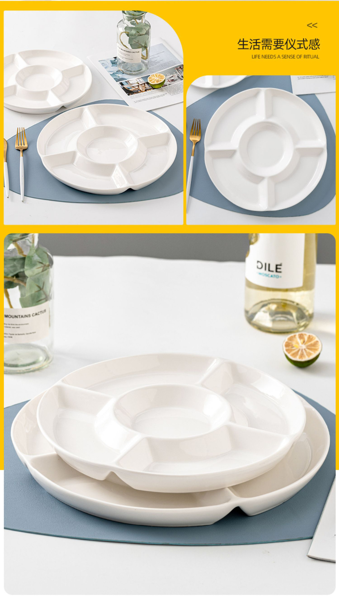 호텔 세라믹 디너 플레이트, 멀티 칸막이 플레이트, 조미료 플레이트, 과일 플래터, 원형 5칸 매리네이드 반찬 플레이트, 스낵 플레이트
