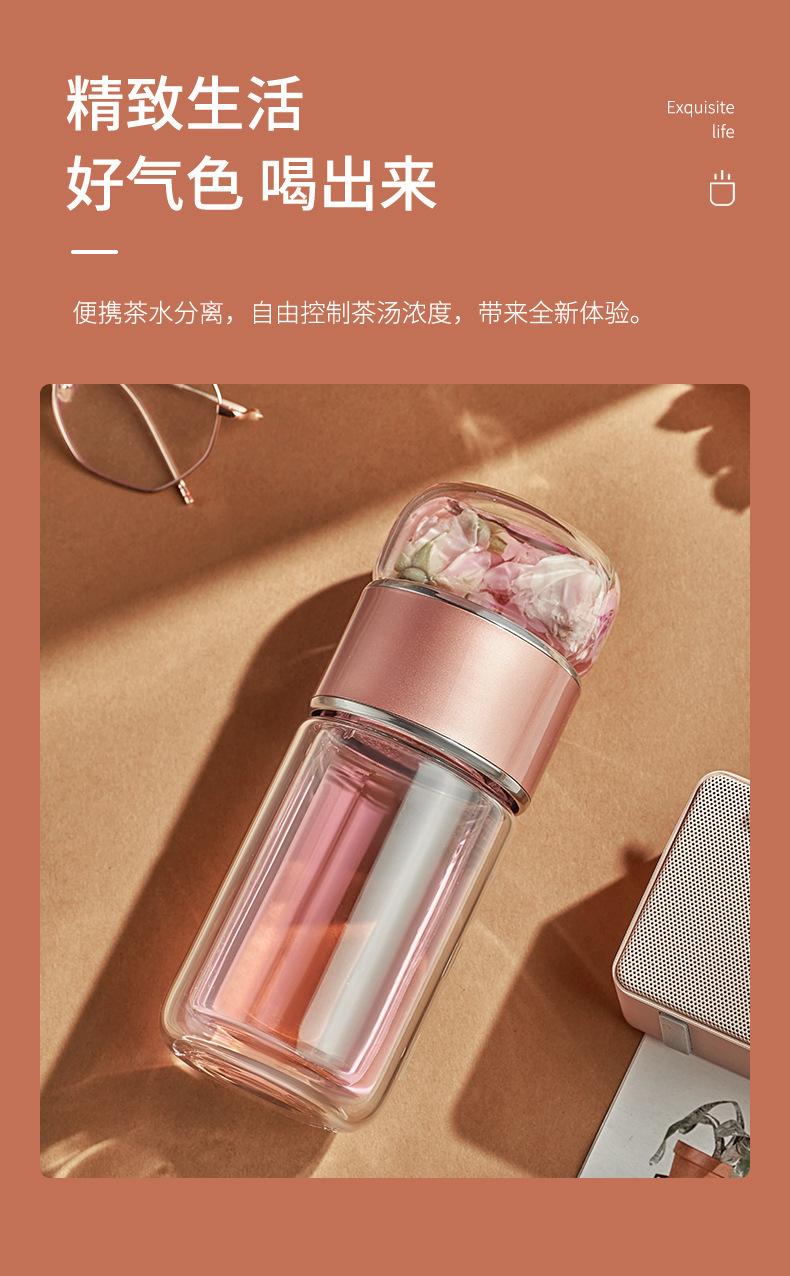 높은 붕규산 이중층 유리 차 분리 거품 차 컵 꽃 차 컵 고온 저항 여성 그물 붉은 물 컵 공장 아울렛스토어 가기
