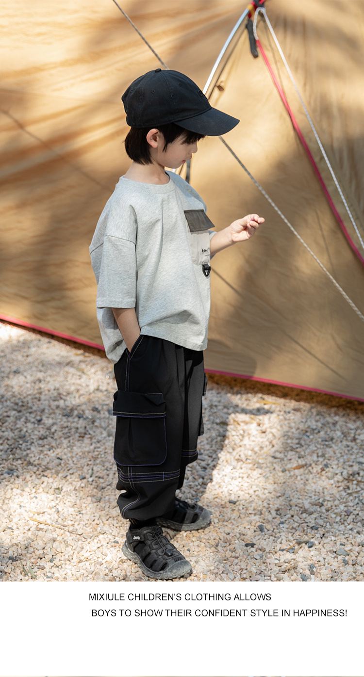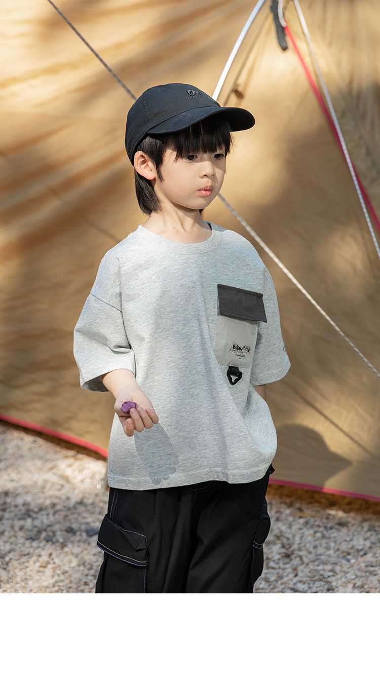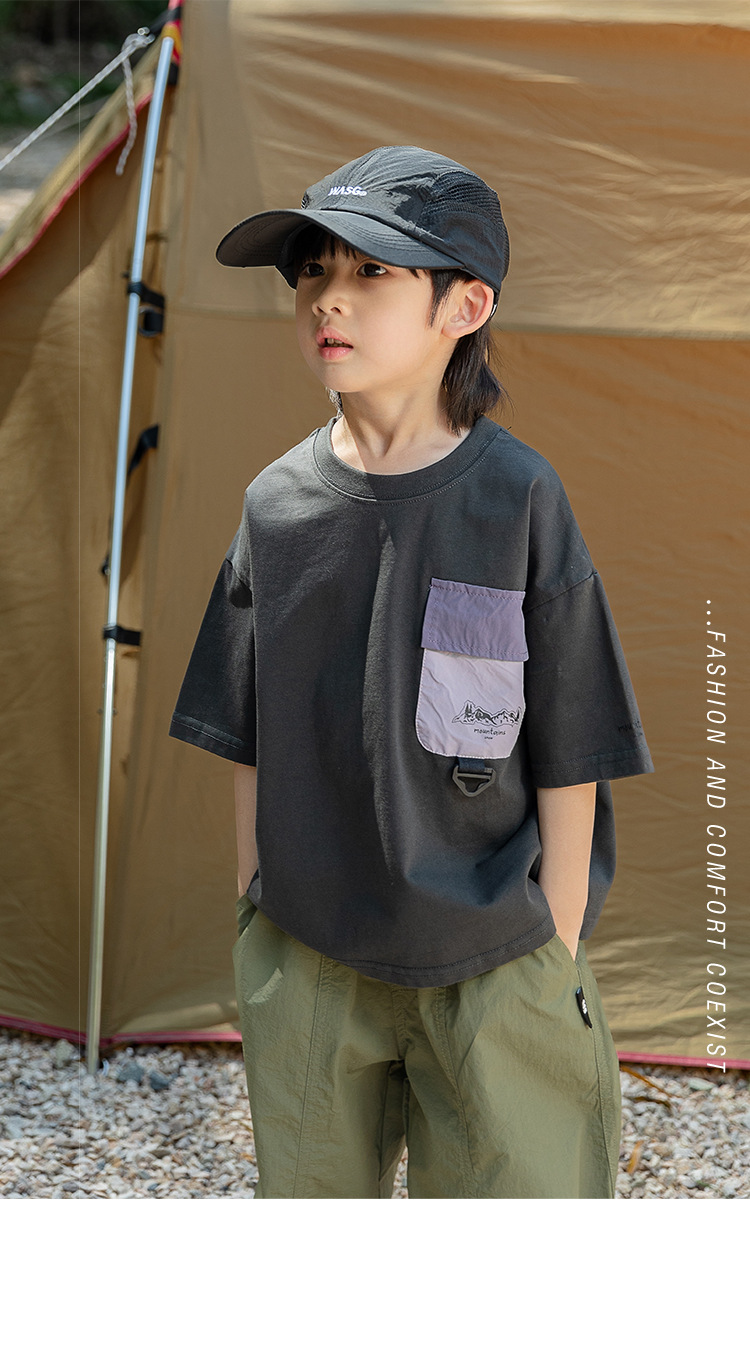남학생 산악 캠핑 여름 새로운 통기성 땀 흡수 야외 스포츠 어린이 티셔츠 인 스타일 코튼 반팔 탑