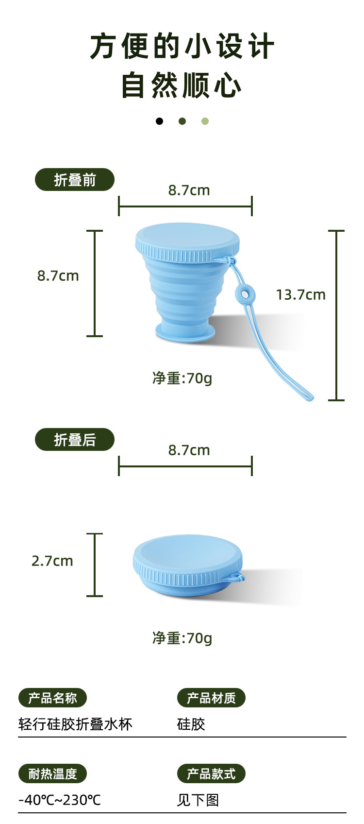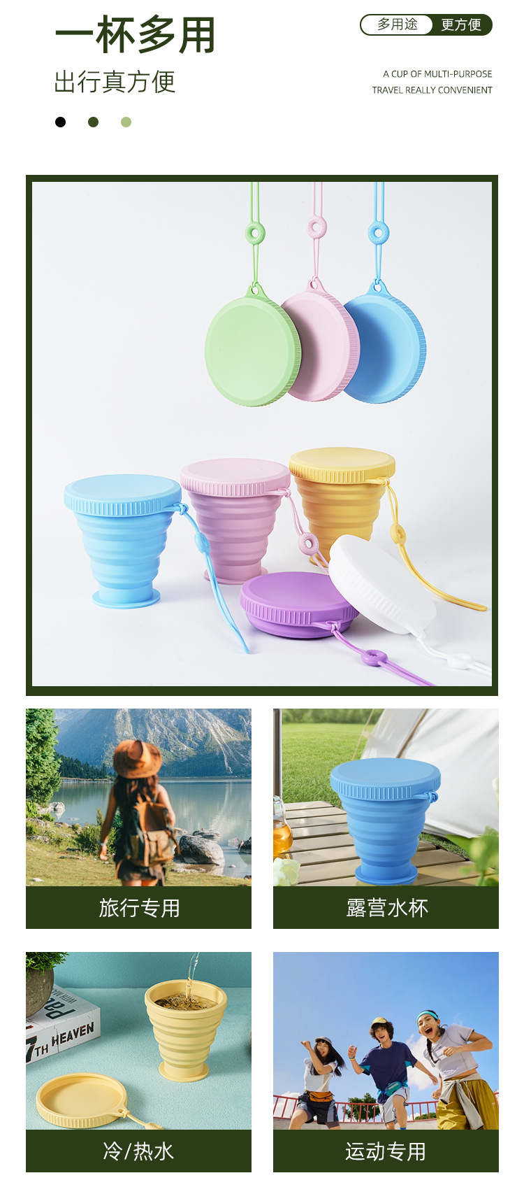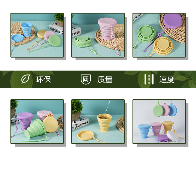 야외 휴대용 접이식 물컵 고온 저항 캠핑 여행용 실리콘 물컵 식품 등급 실리콘 접이식 컵