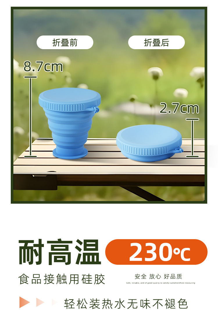 야외 휴대용 접이식 물컵 고온 저항 캠핑 여행용 실리콘 물컵 식품 등급 실리콘 접이식 컵스토어 가기
