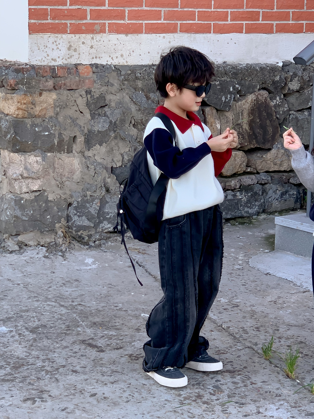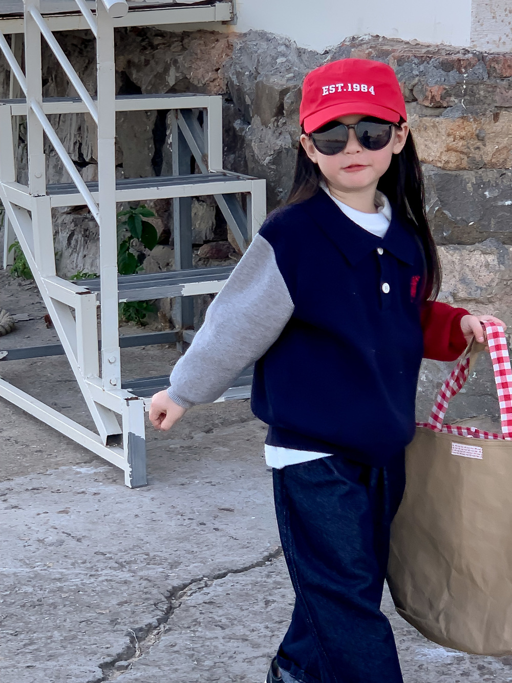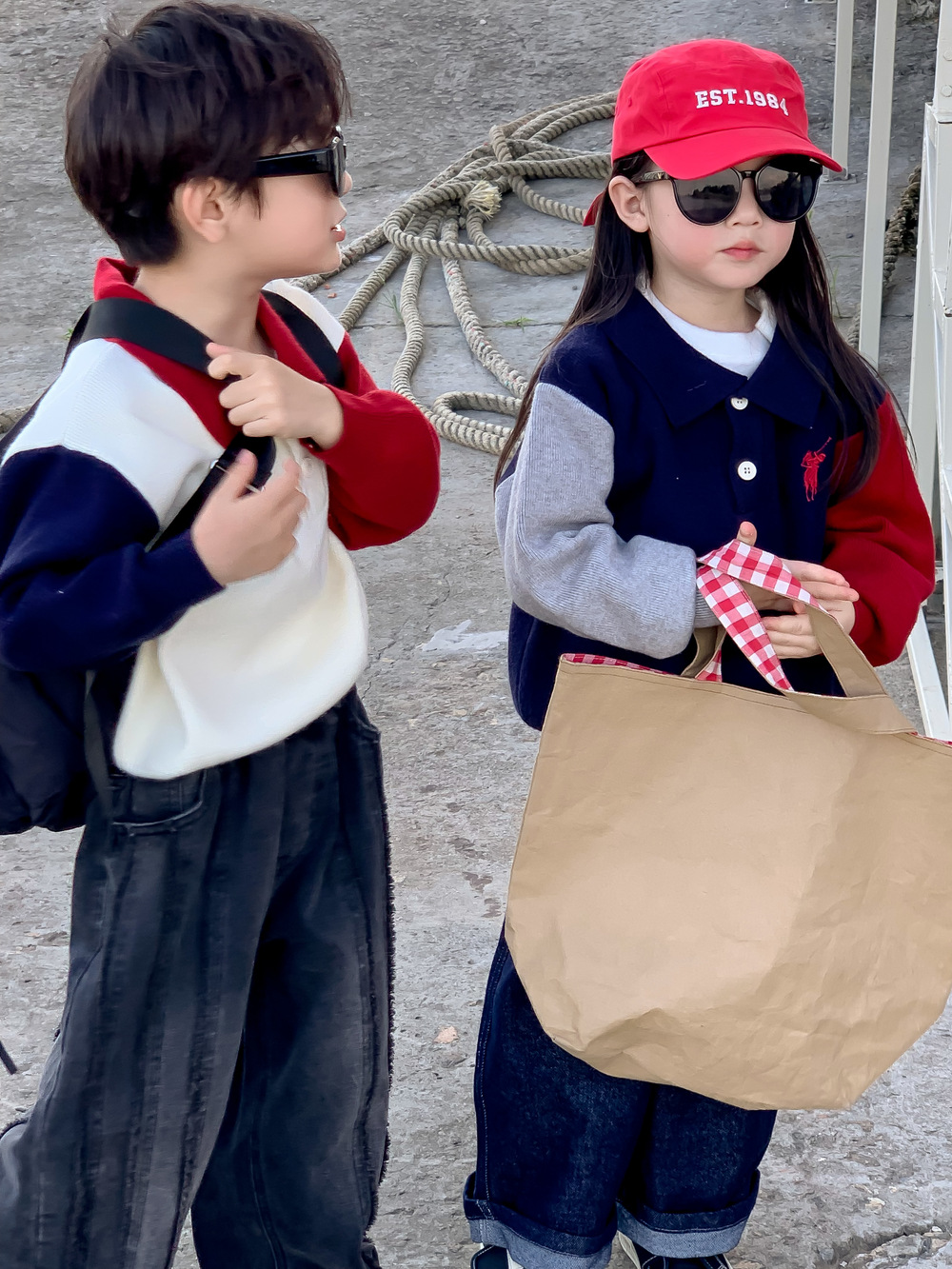 어린이 스웨터 가을 2024 년 소년 소녀 한푸 컬러 매칭 스웨터 어린이 옷깃 캐주얼 콘트라스트 니트 코트스토어 가기