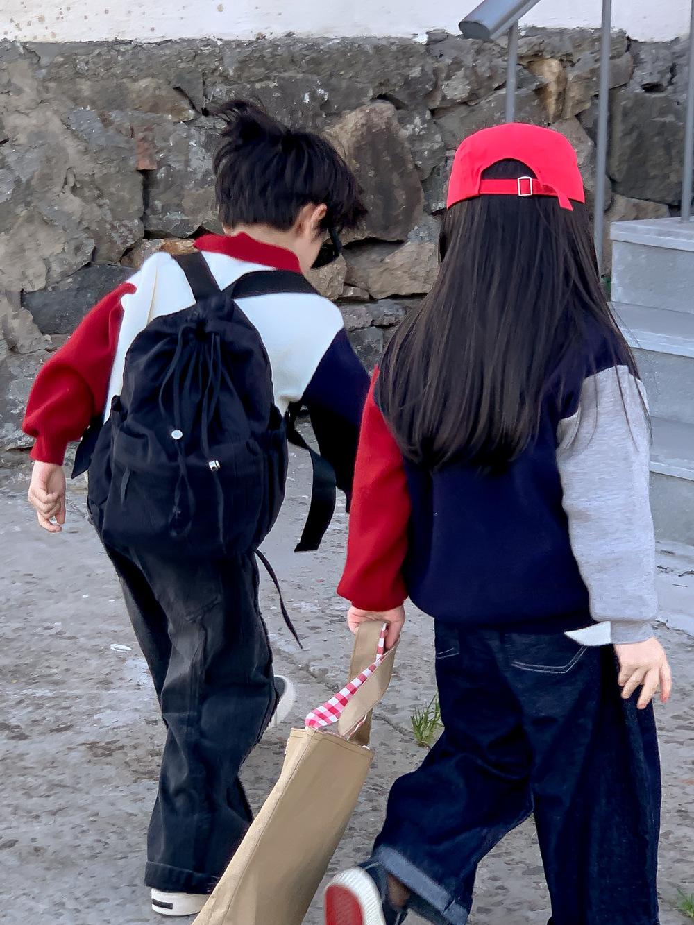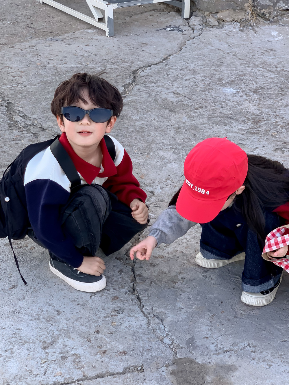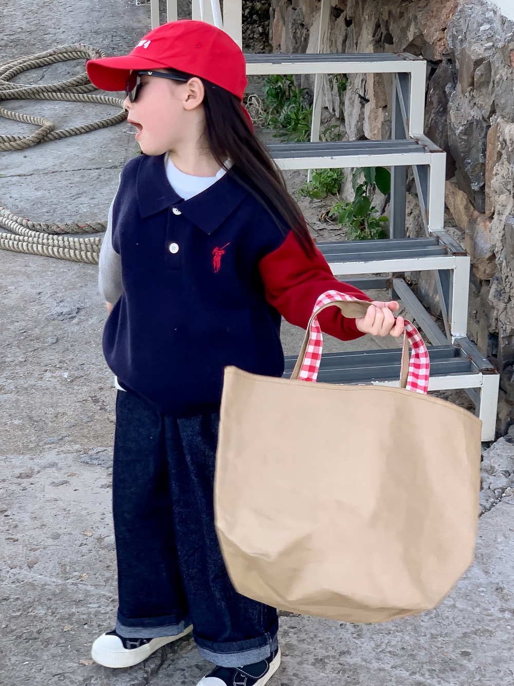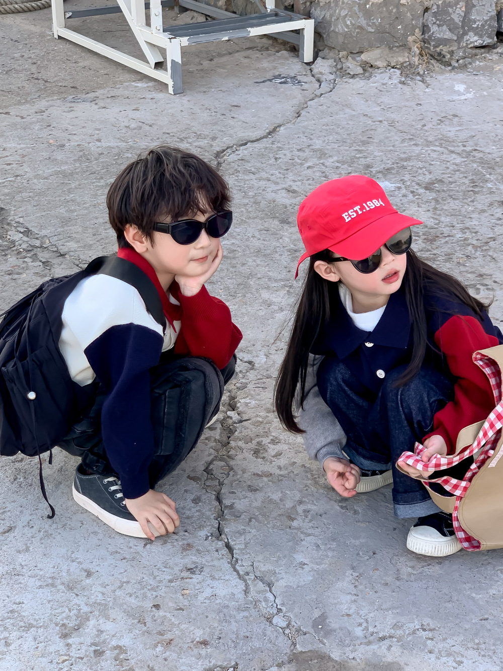어린이 스웨터 가을 2024 년 소년 소녀 한푸 컬러 매칭 스웨터 어린이 옷깃 캐주얼 콘트라스트 니트 코트스토어 가기
