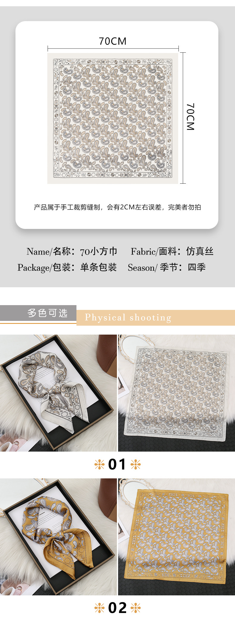 국경 간 봄과 가을 패션 우아한 70 모방 실크 스카프 6 색 캐슈 꽃 선 스크린 스카프 목 광장 스카프 여성 도매