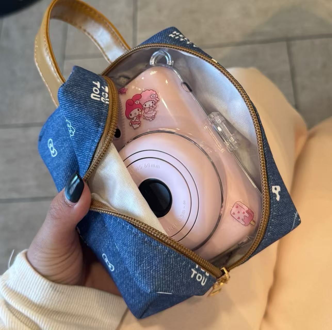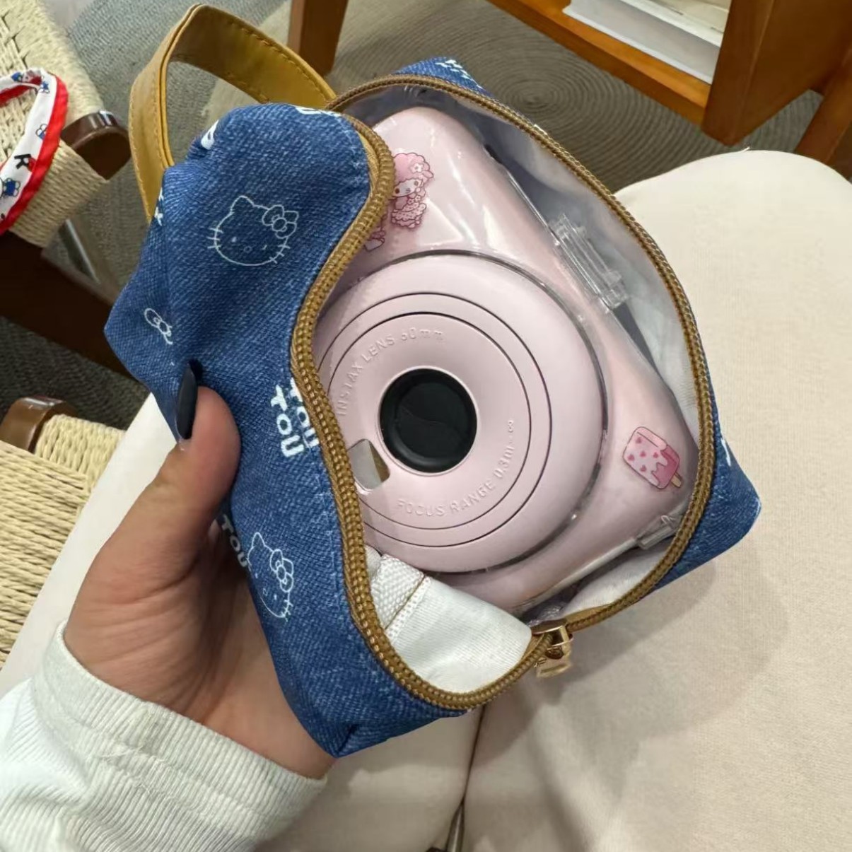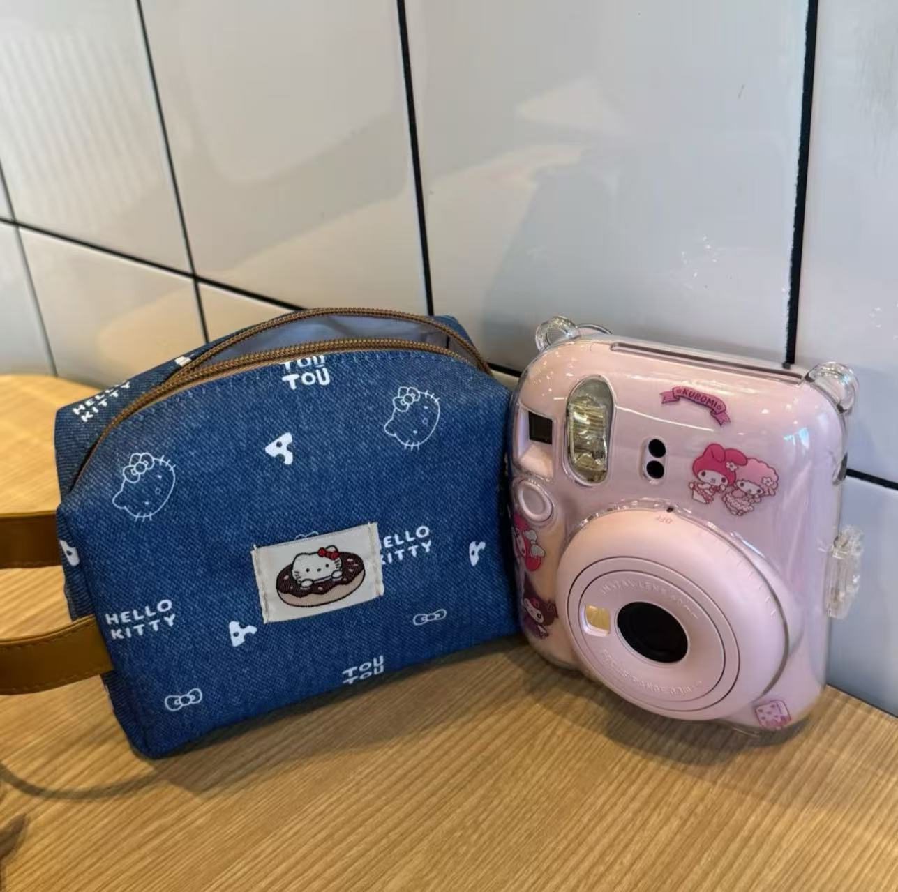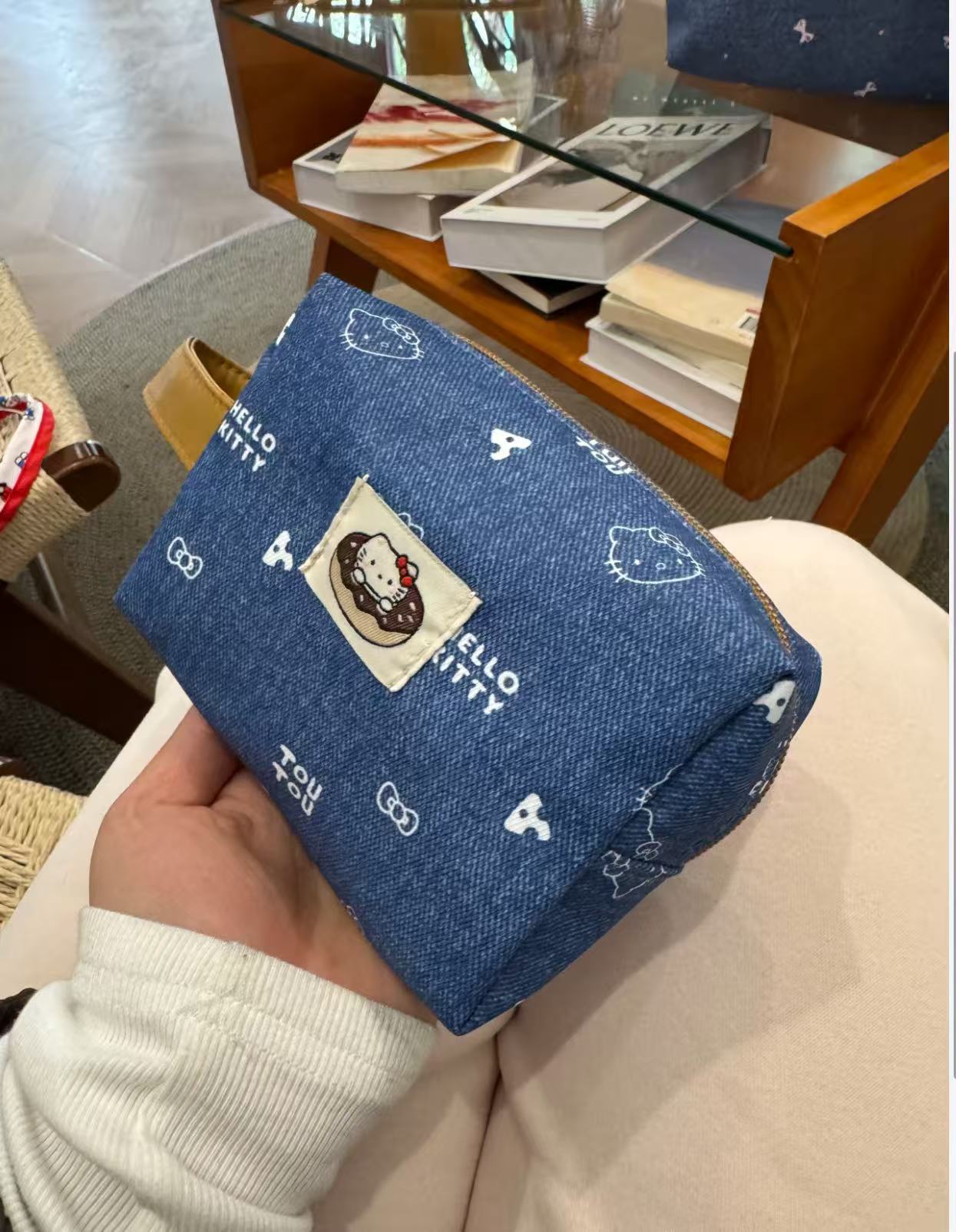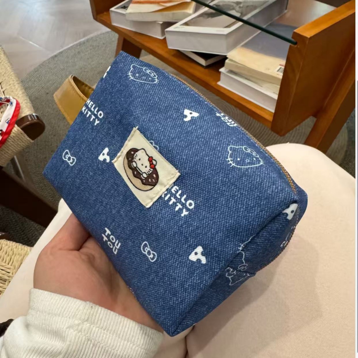 귀여운 헬로키티 데님 화장품 가방, 소녀 하트 대용량 카메라 가방, 핸드백, 휴대용 핸드백, 세면도구 가방