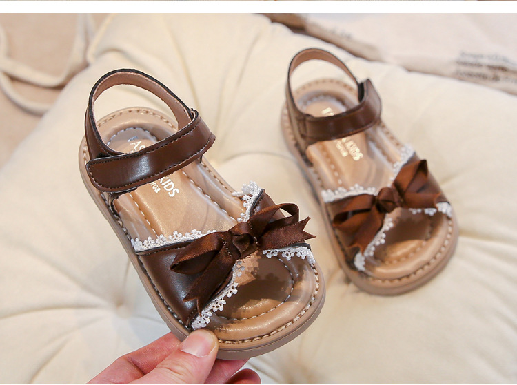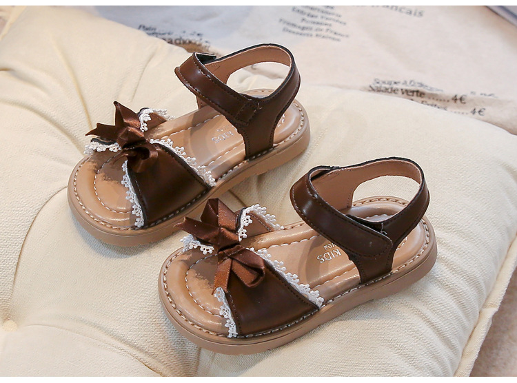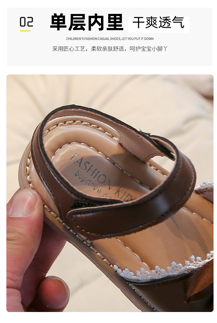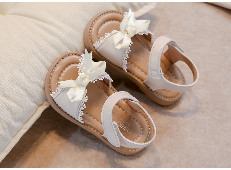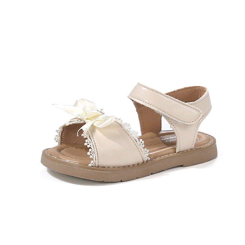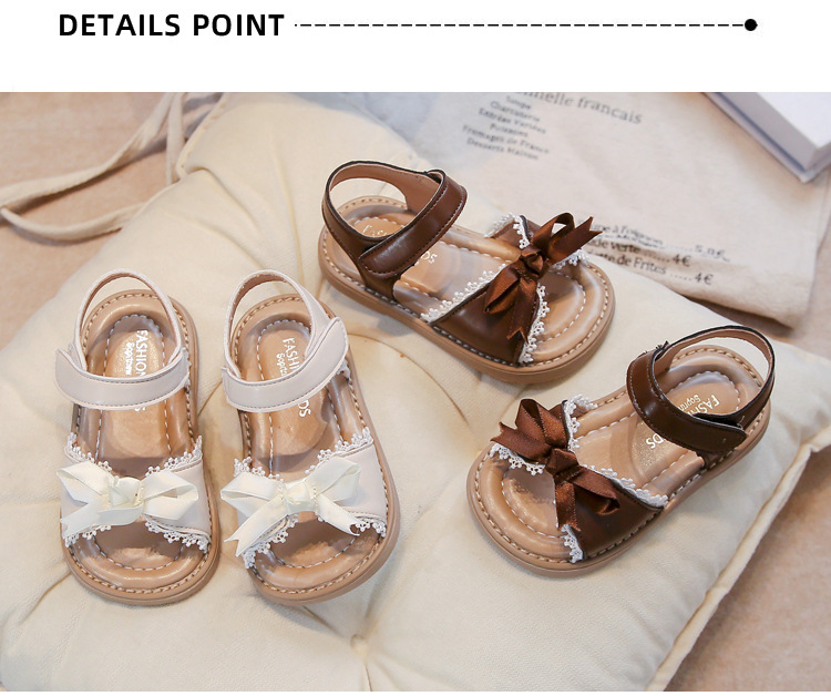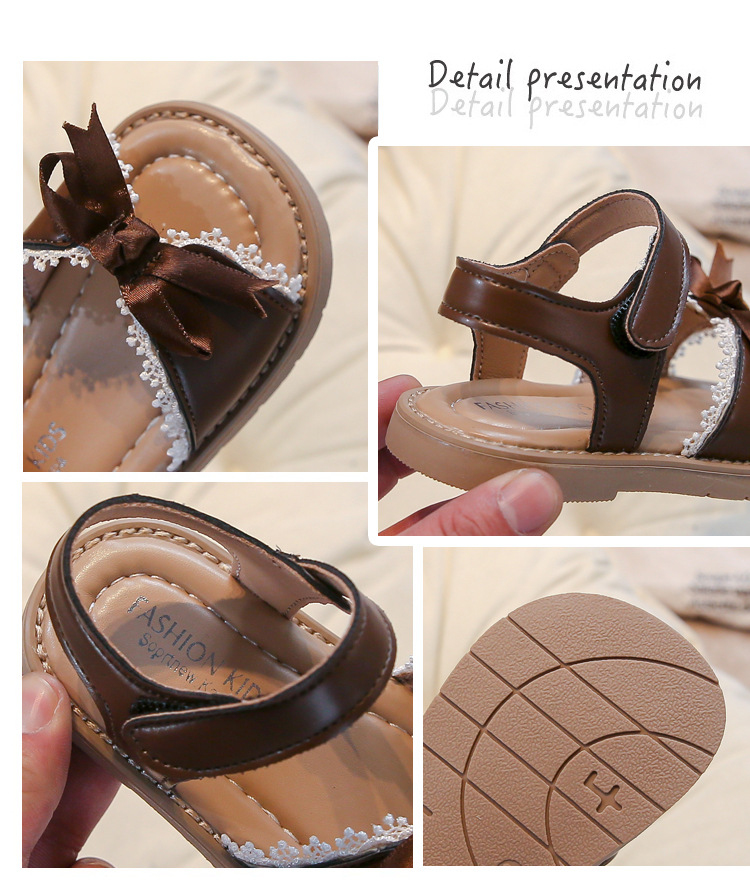 Ins 어린이 샌들 2025 봄과 여름 새로운 한국 스타일 소녀의 활 레이스 플랫 공주 신발스토어 가기