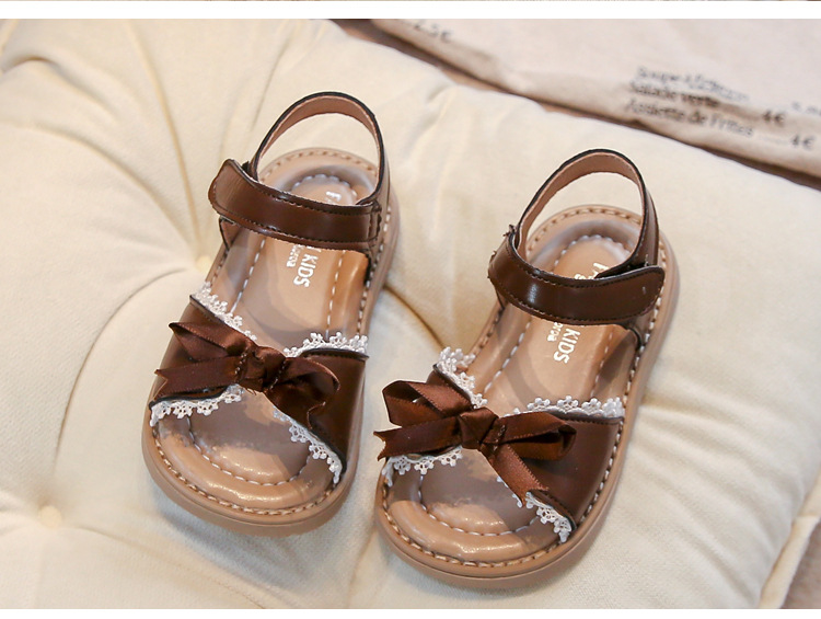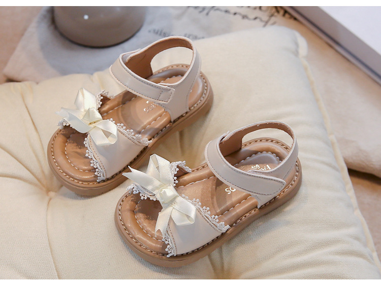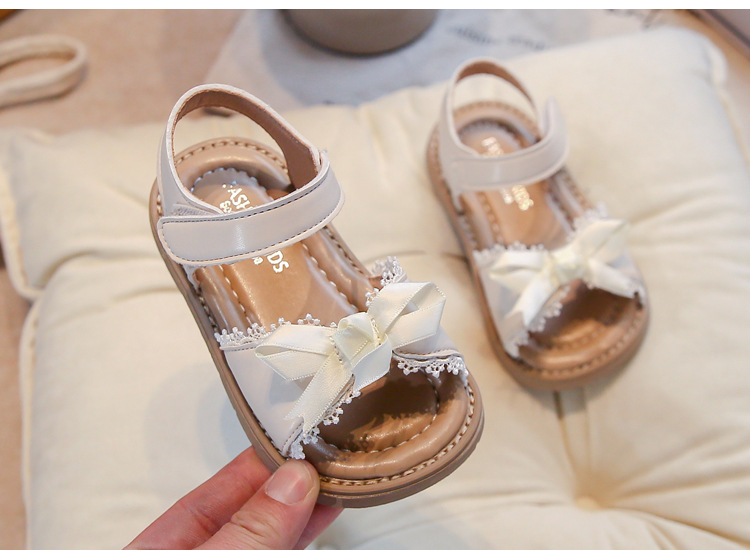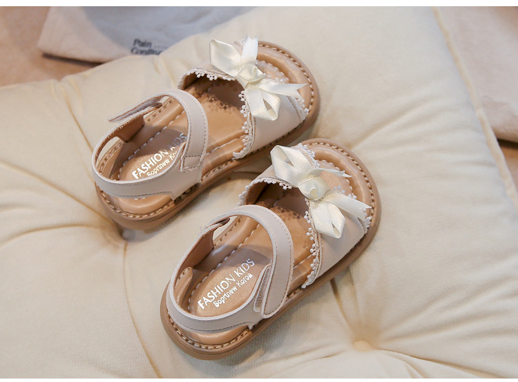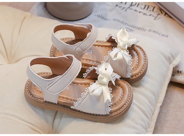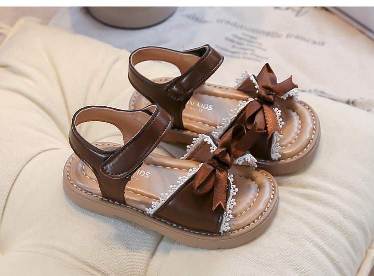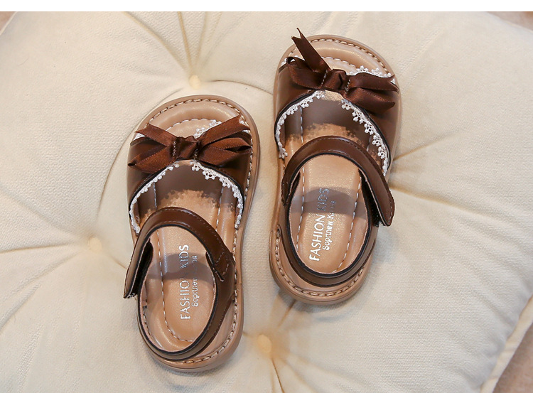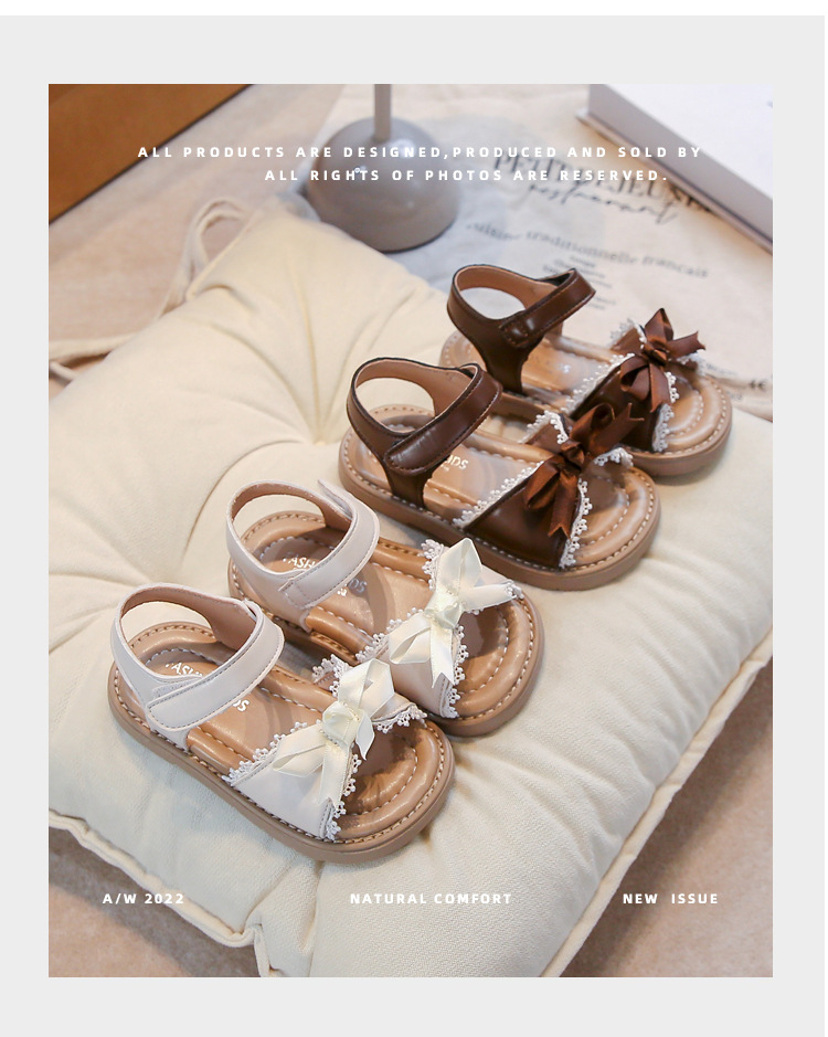 Ins 어린이 샌들 2025 봄과 여름 새로운 한국 스타일 소녀의 활 레이스 플랫 공주 신발스토어 가기