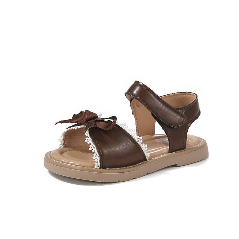 Ins 어린이 샌들 2025 봄과 여름 새로운 한국 스타일 소녀의 활 레이스 플랫 공주 신발