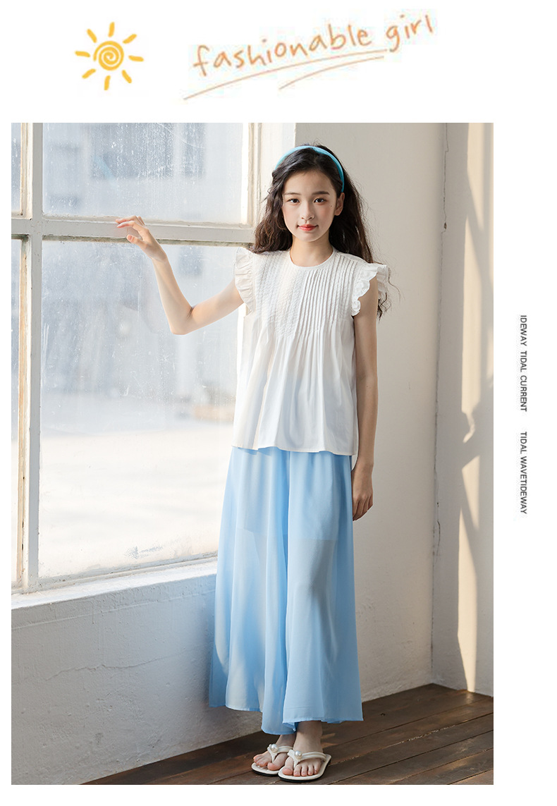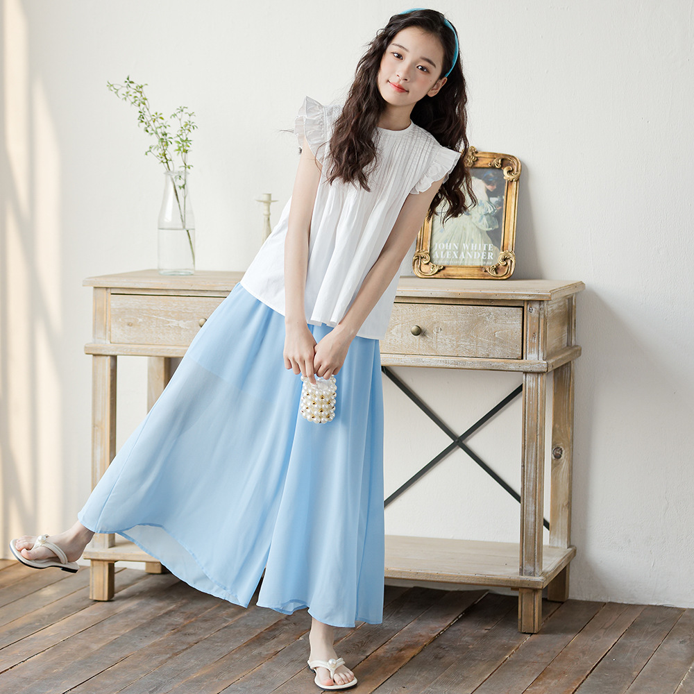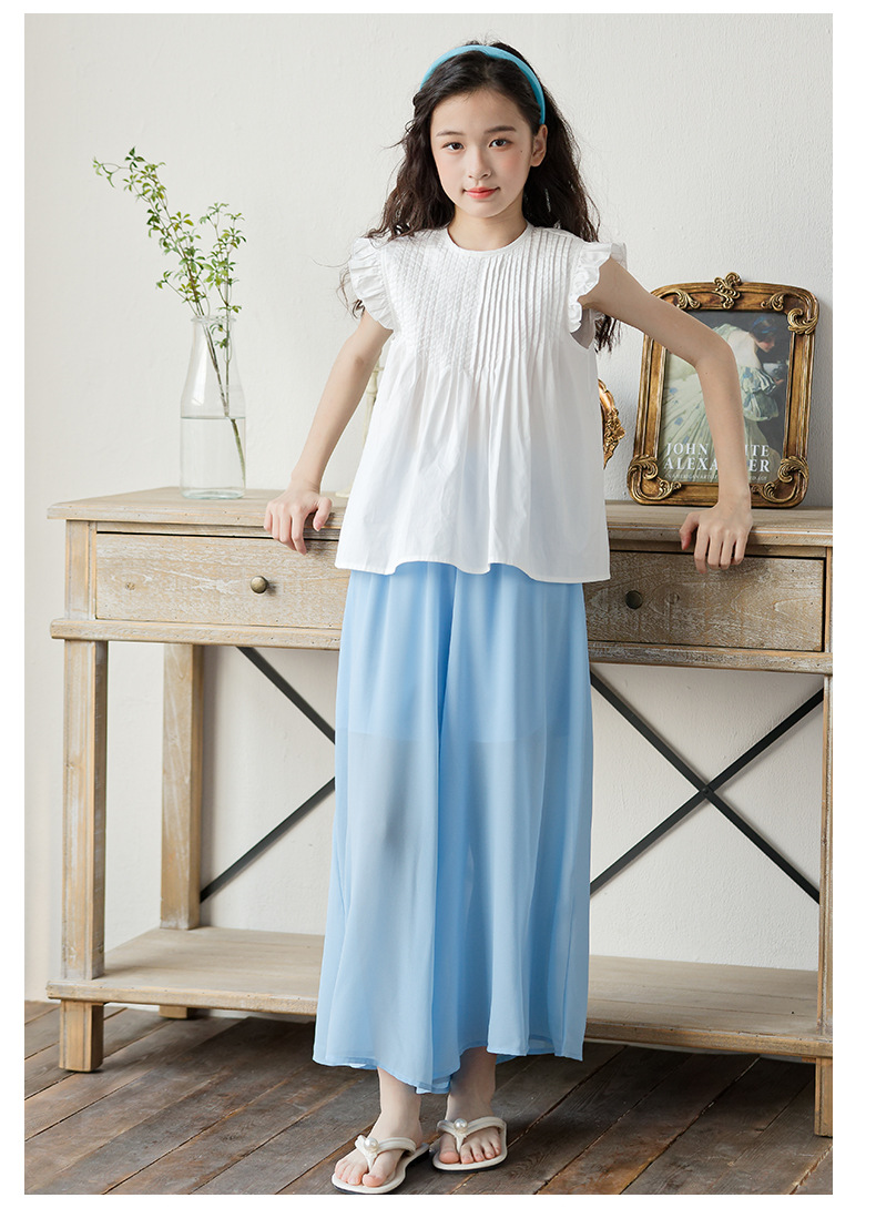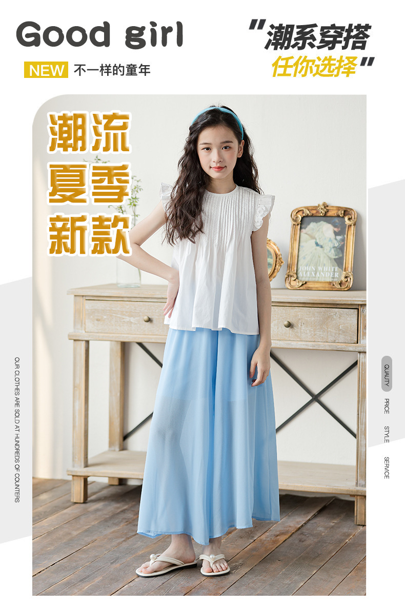 소녀 2025 여름 새로운 유행과 유행 한국 반팔 바지 스커트 투피스 세트