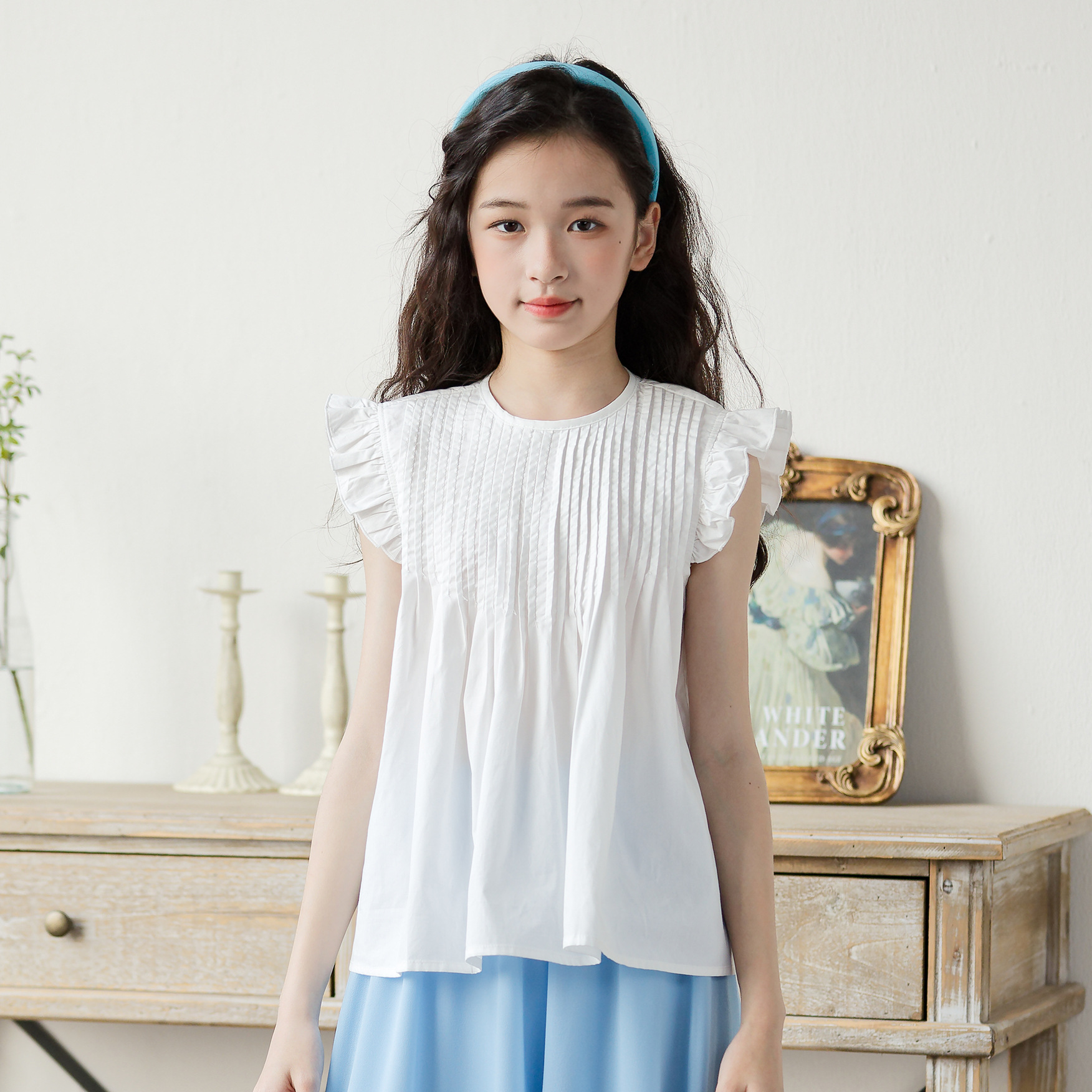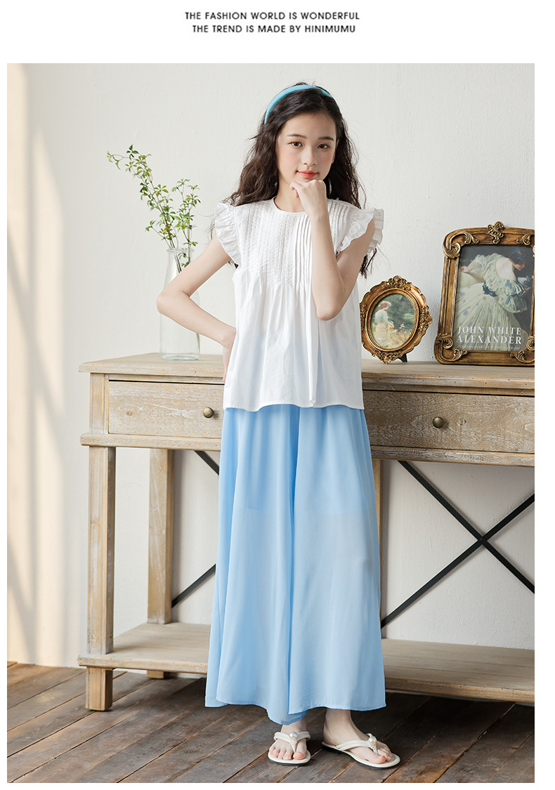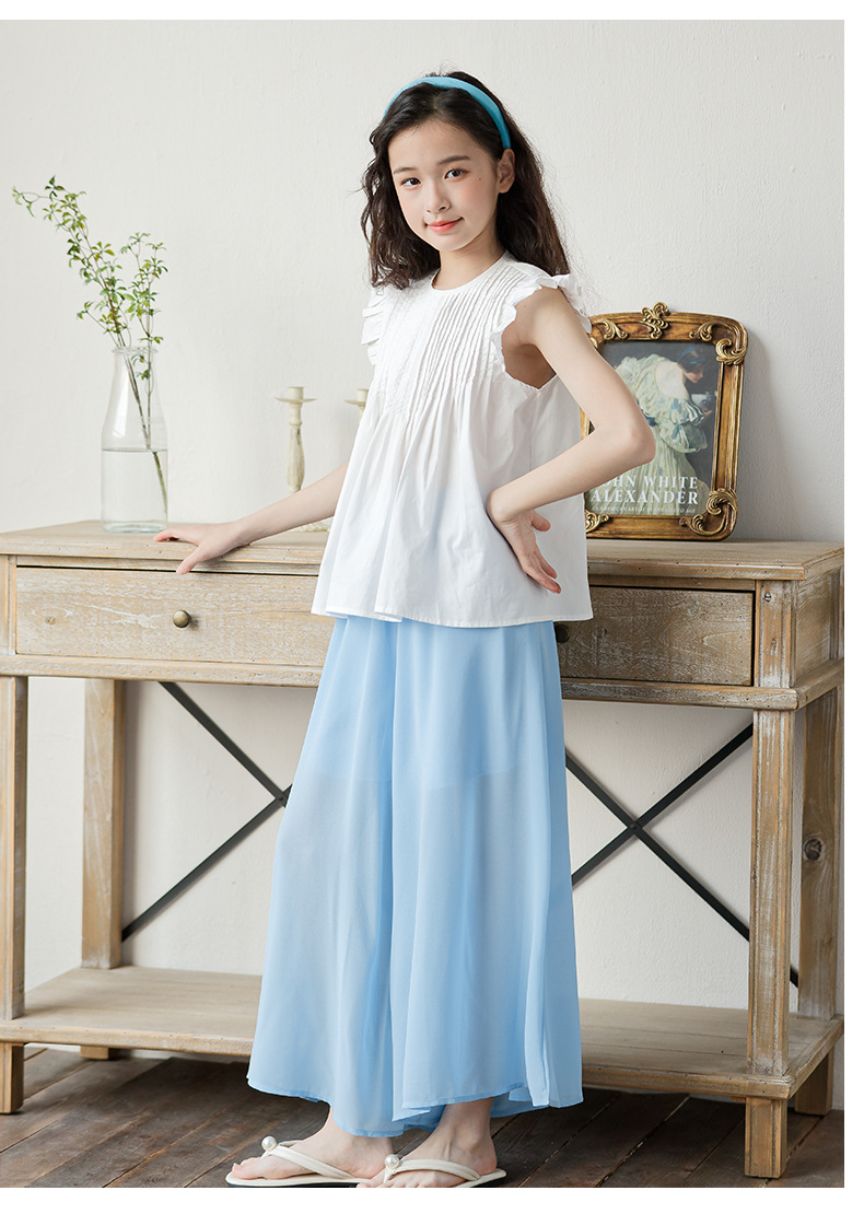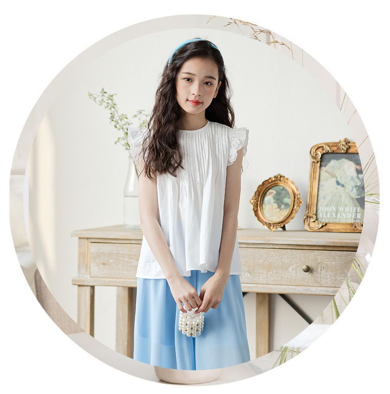 소녀 2025 여름 새로운 유행과 유행 한국 반팔 바지 스커트 투피스 세트