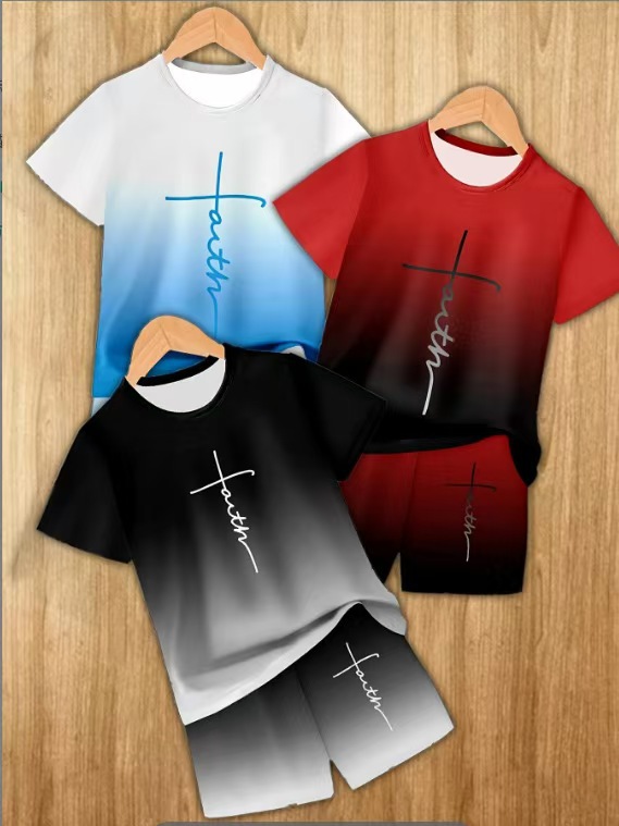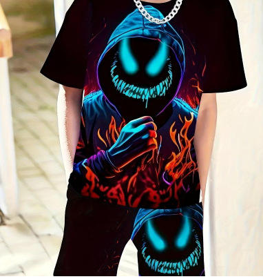 봄과 여름 새로운 아동복 세트 3d 인쇄 청소년 스포츠 인쇄 남녀 어린이 세트 국경 간 소스 공장스토어 가기