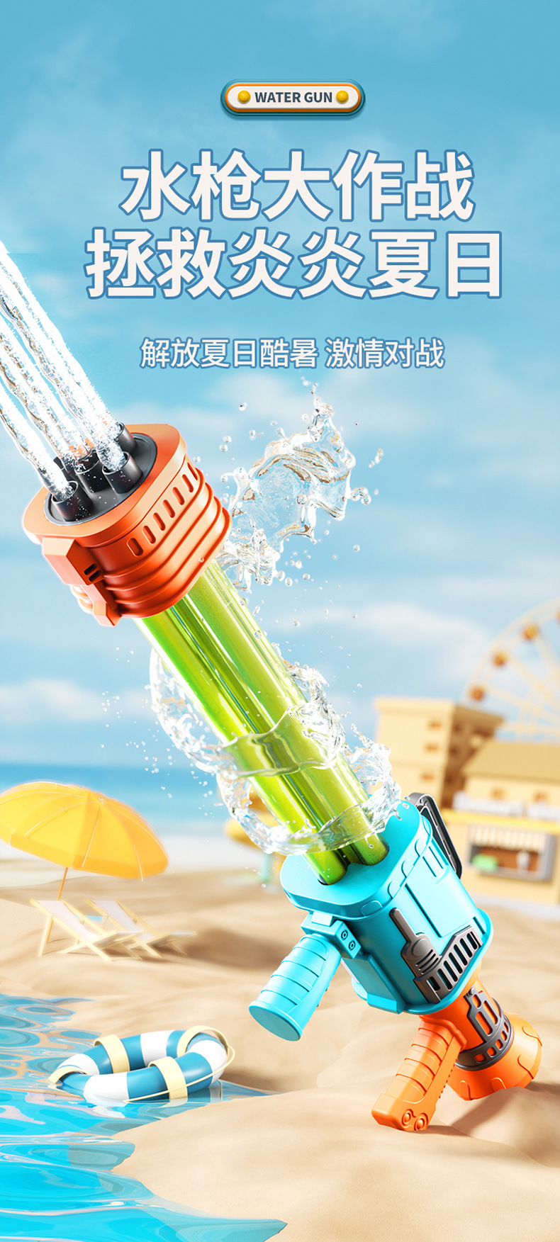 • 66cm [개틀링] 5관 5구 물대포 (색상선택시 참고사항)