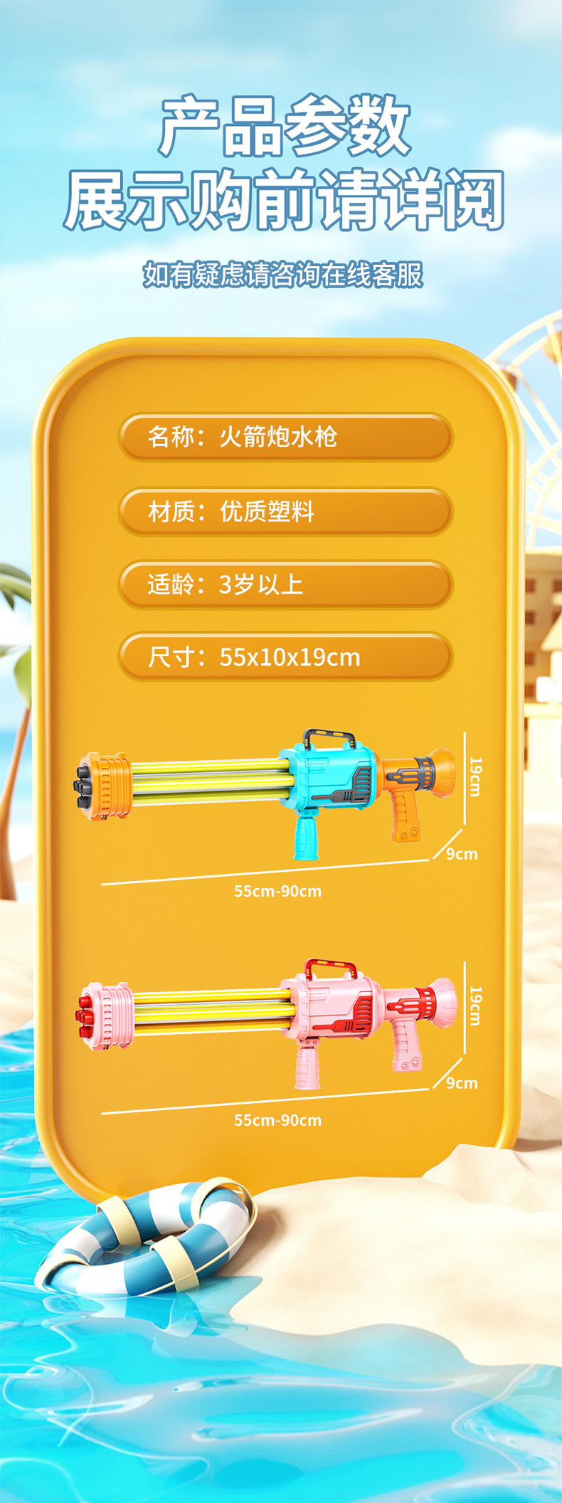 • 55cm [바주카] 3관 3구 물대포 (색상선택시 참고사항)