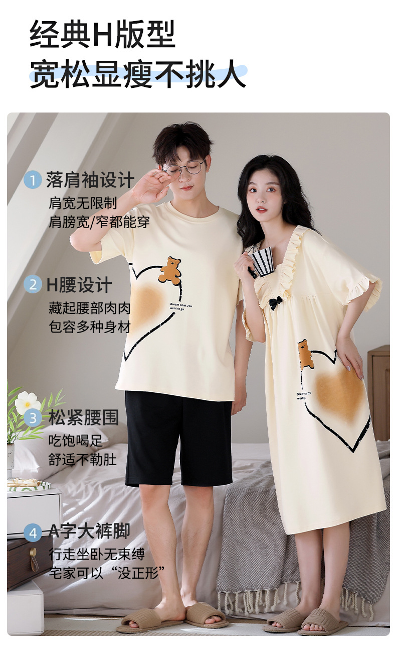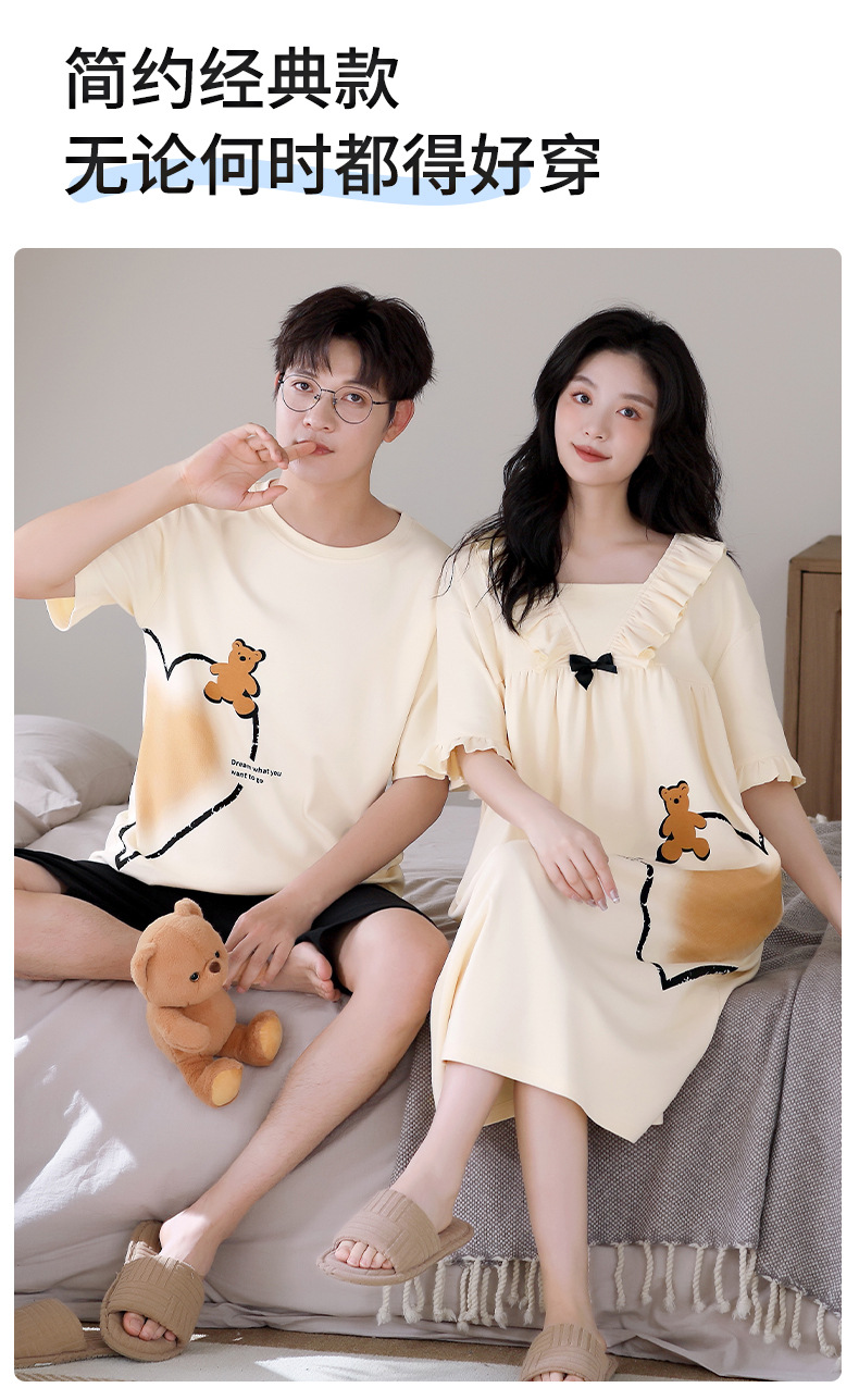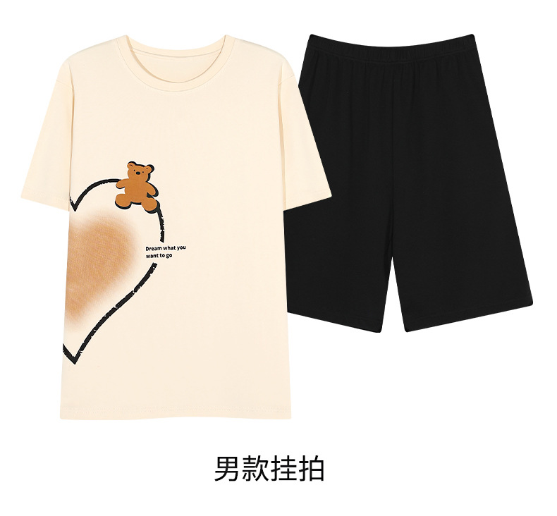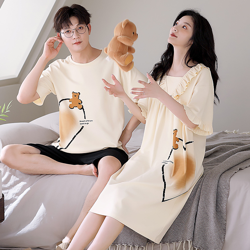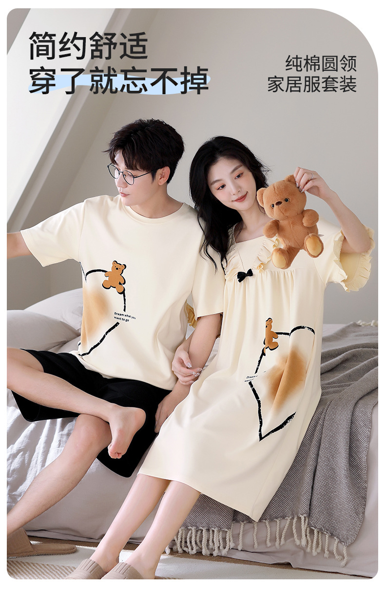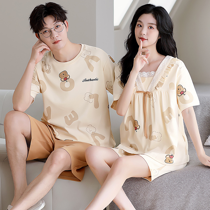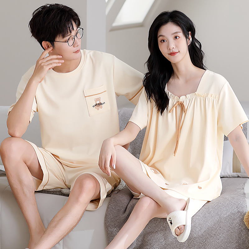 가슴 패드가 있는 커플 잠옷, 여름 순면 반팔 반바지, 여성용 대형 잠옷, 남성용 시원한 홈웨어 세트스토어 가기