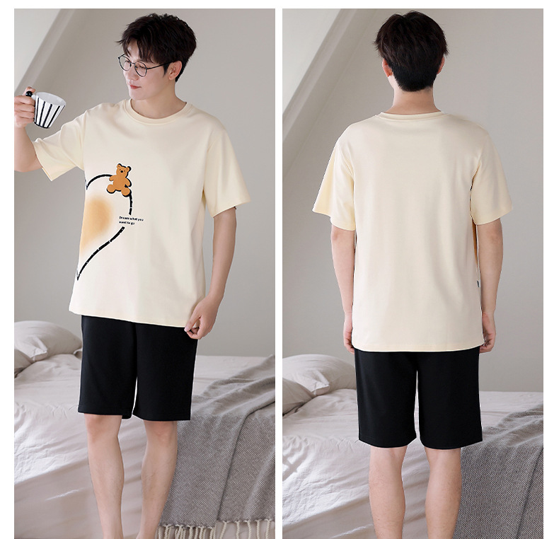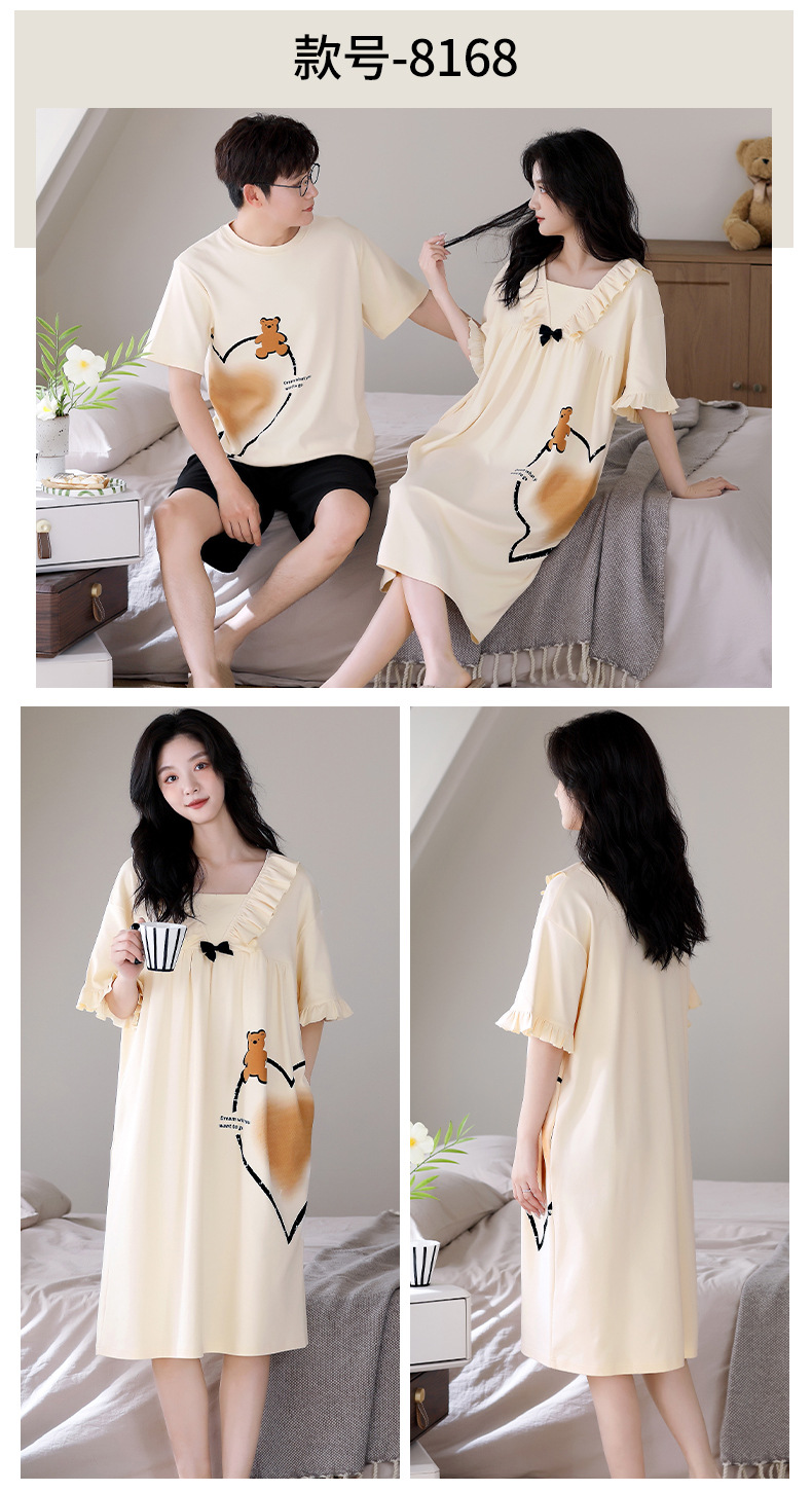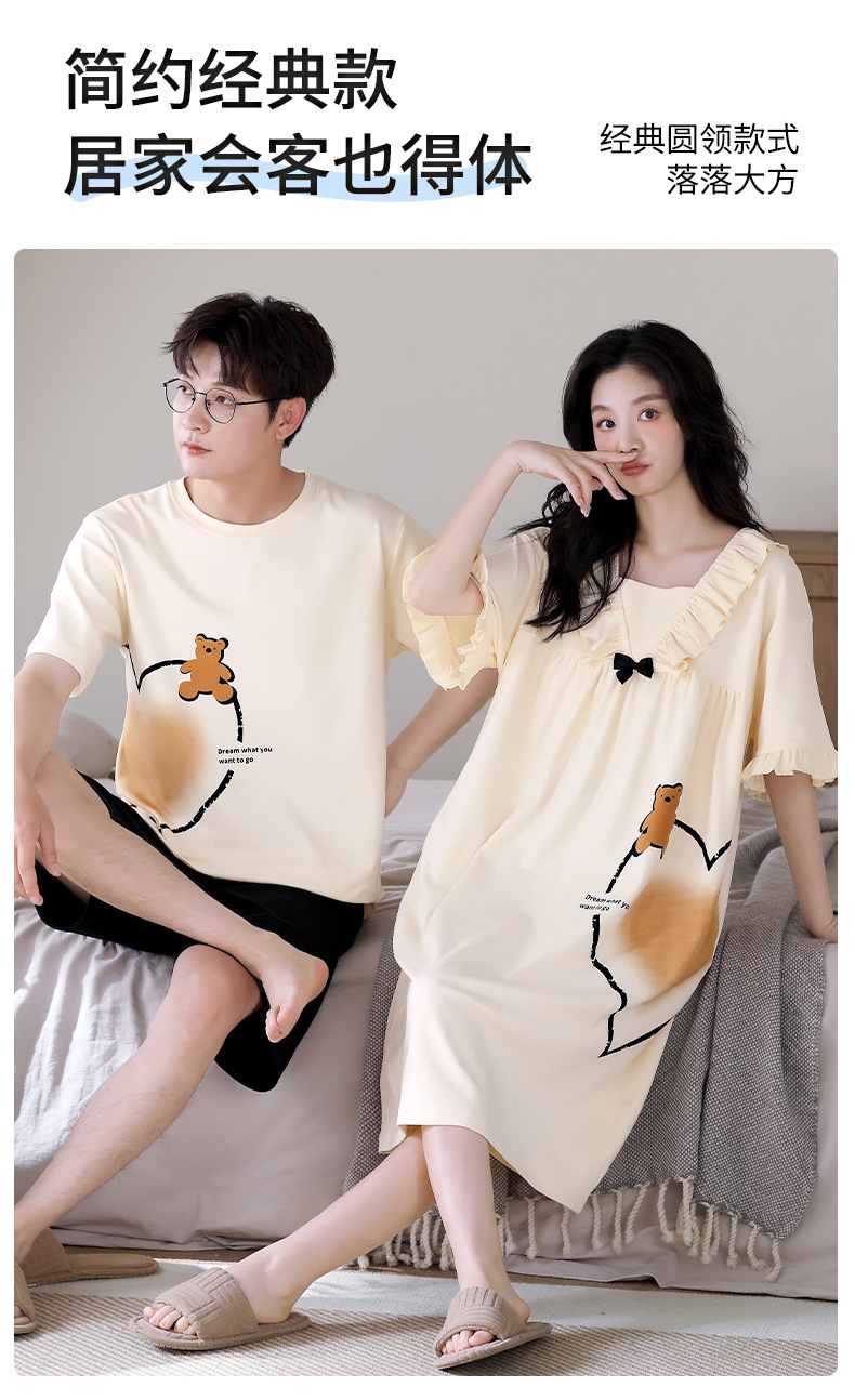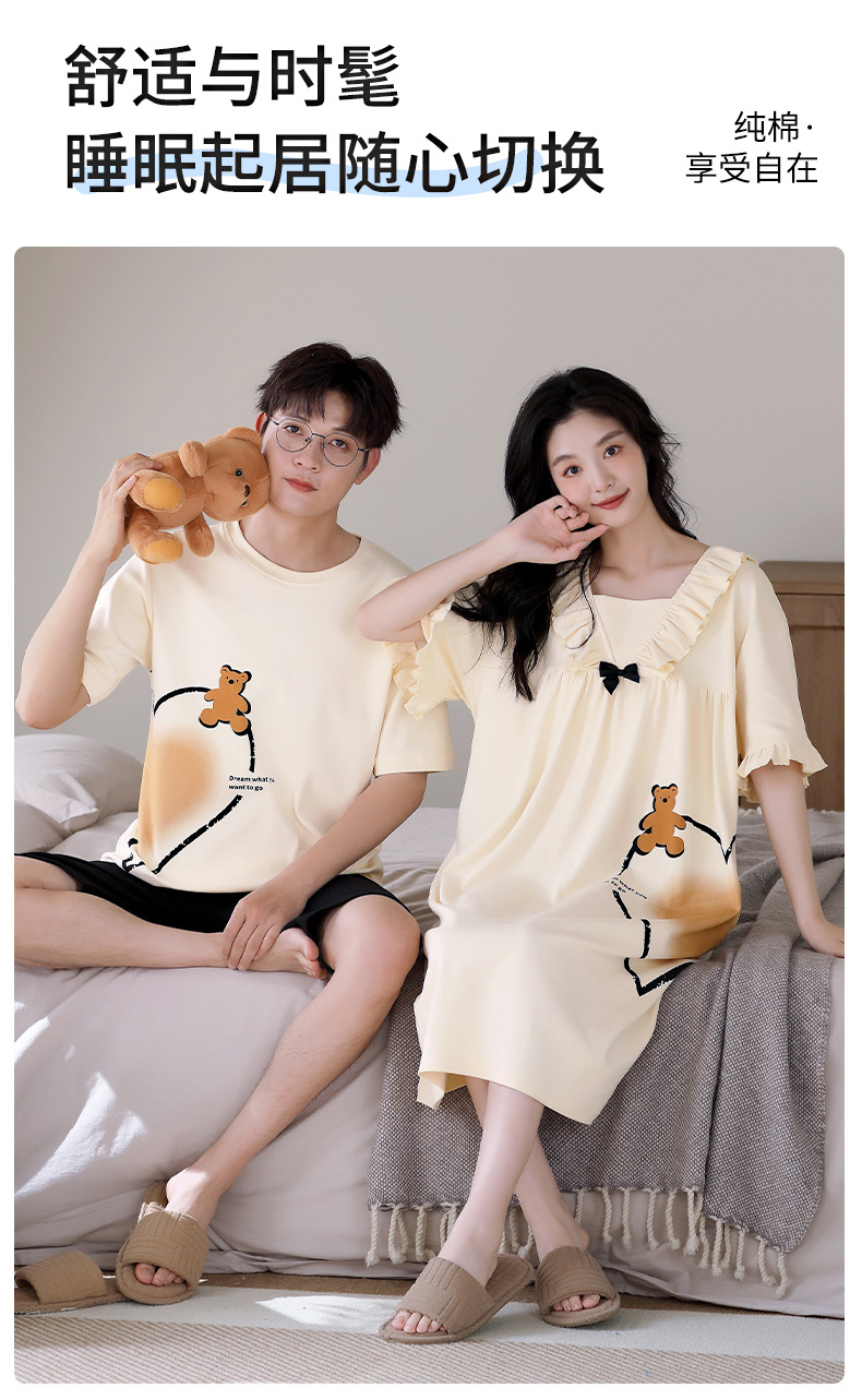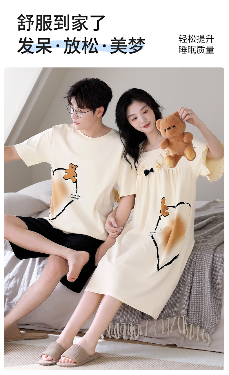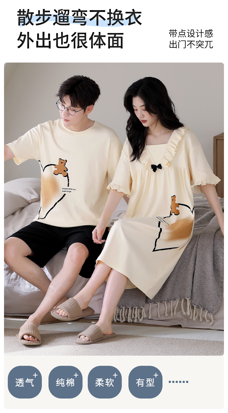 가슴 패드가 있는 커플 잠옷, 여름 순면 반팔 반바지, 여성용 대형 잠옷, 남성용 시원한 홈웨어 세트스토어 가기