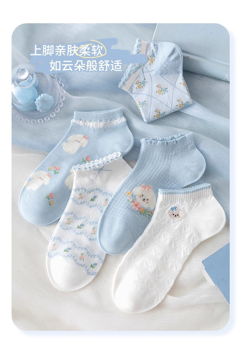 귀여운 강아지 양말 여성 여름 얇은 짧은 양말 로우 컷 얕은 입 레이스 일본 보우는 메시 여성용 양식에서 떨어지지 않습니다.스토어 가기