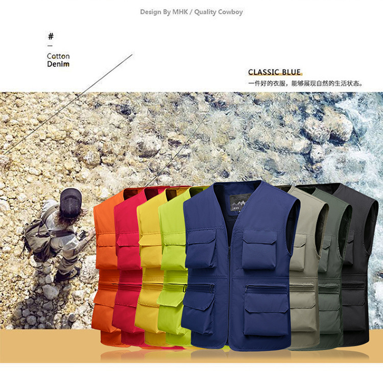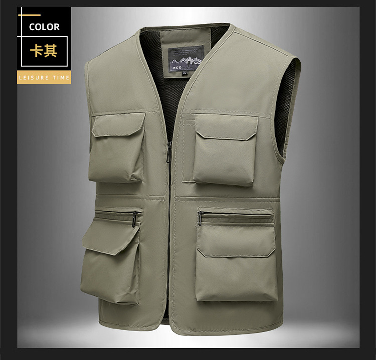 공동 구매 작업복 조끼 멀티 포켓 조끼 재킷 낚시 및 등산 방수 사진 인쇄 남성용 캐주얼 양복 조끼