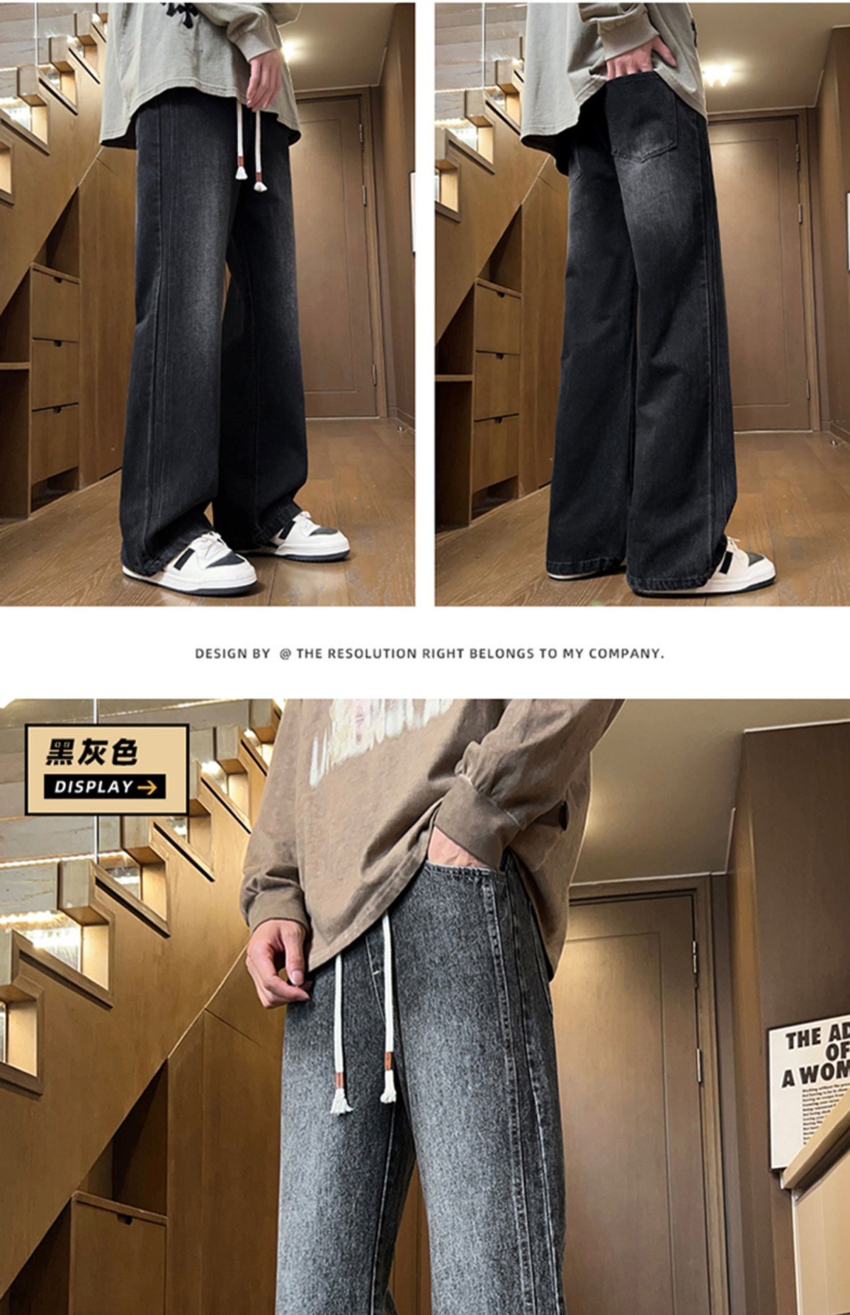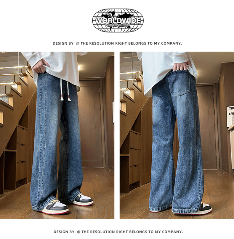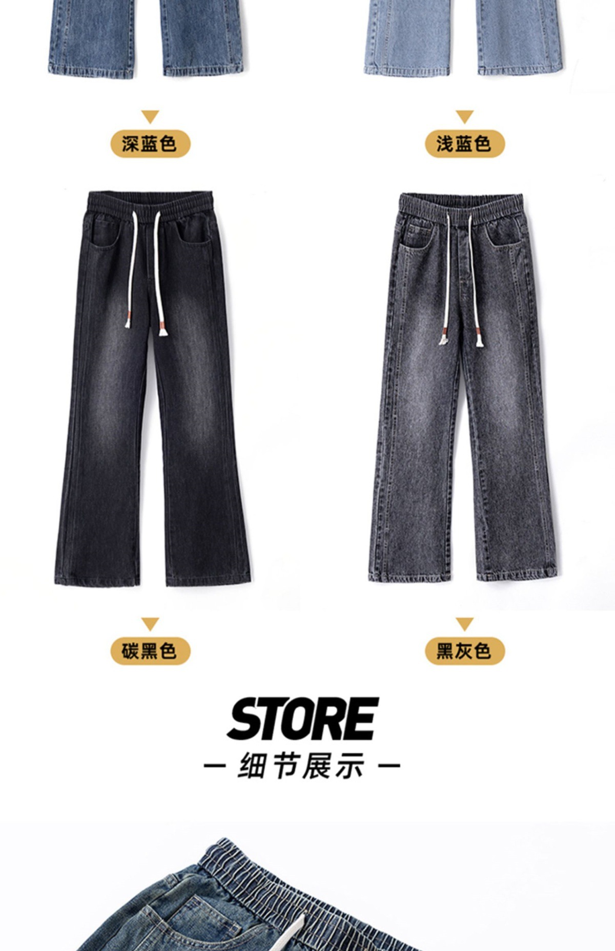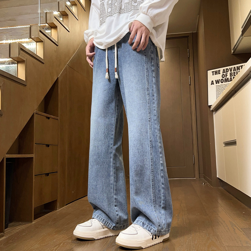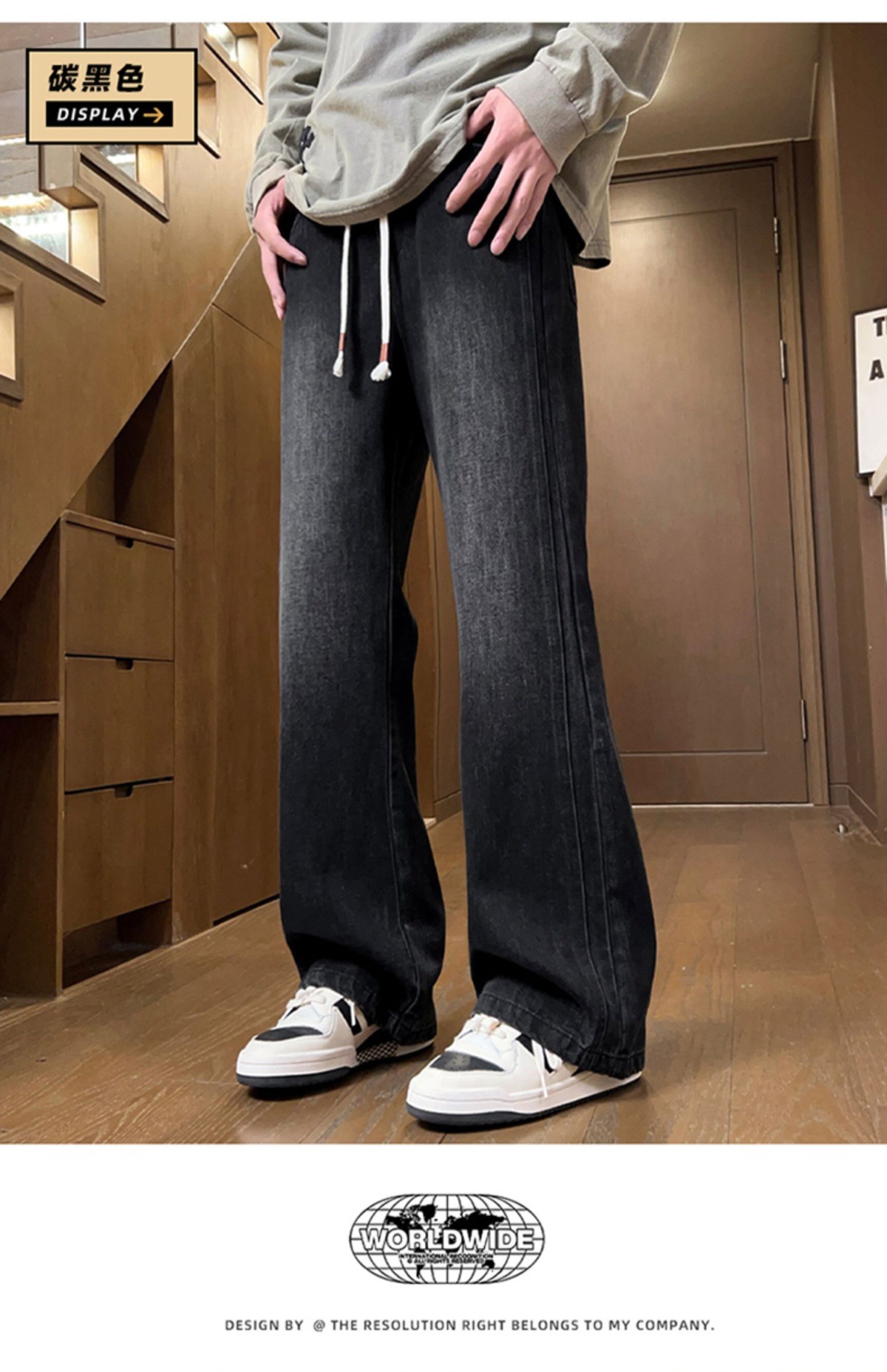 남성용 마이크로 플레어 진, 봄, 가을, 여름용 레트로 아메리칸 스타일 긴 바지, 워싱 처리된 루즈핏 청소년용 스트레이트 와이드 팬츠스토어 가기
