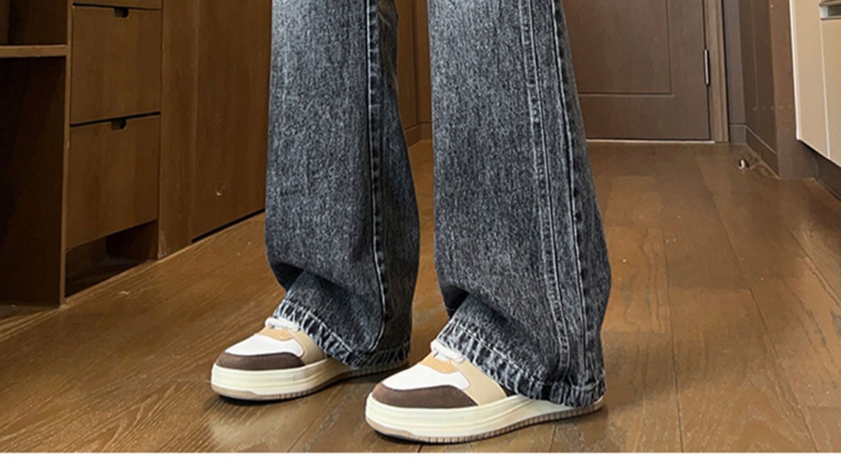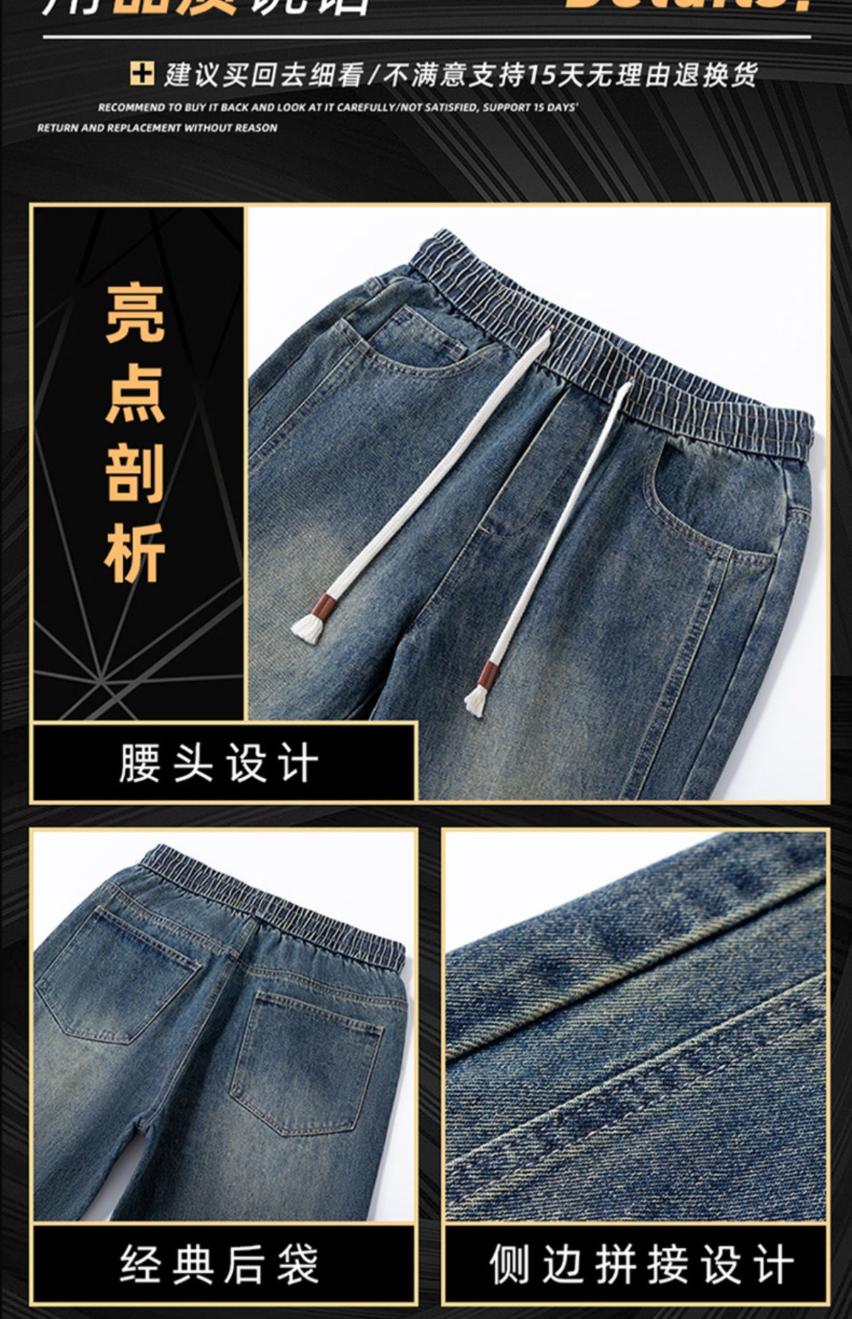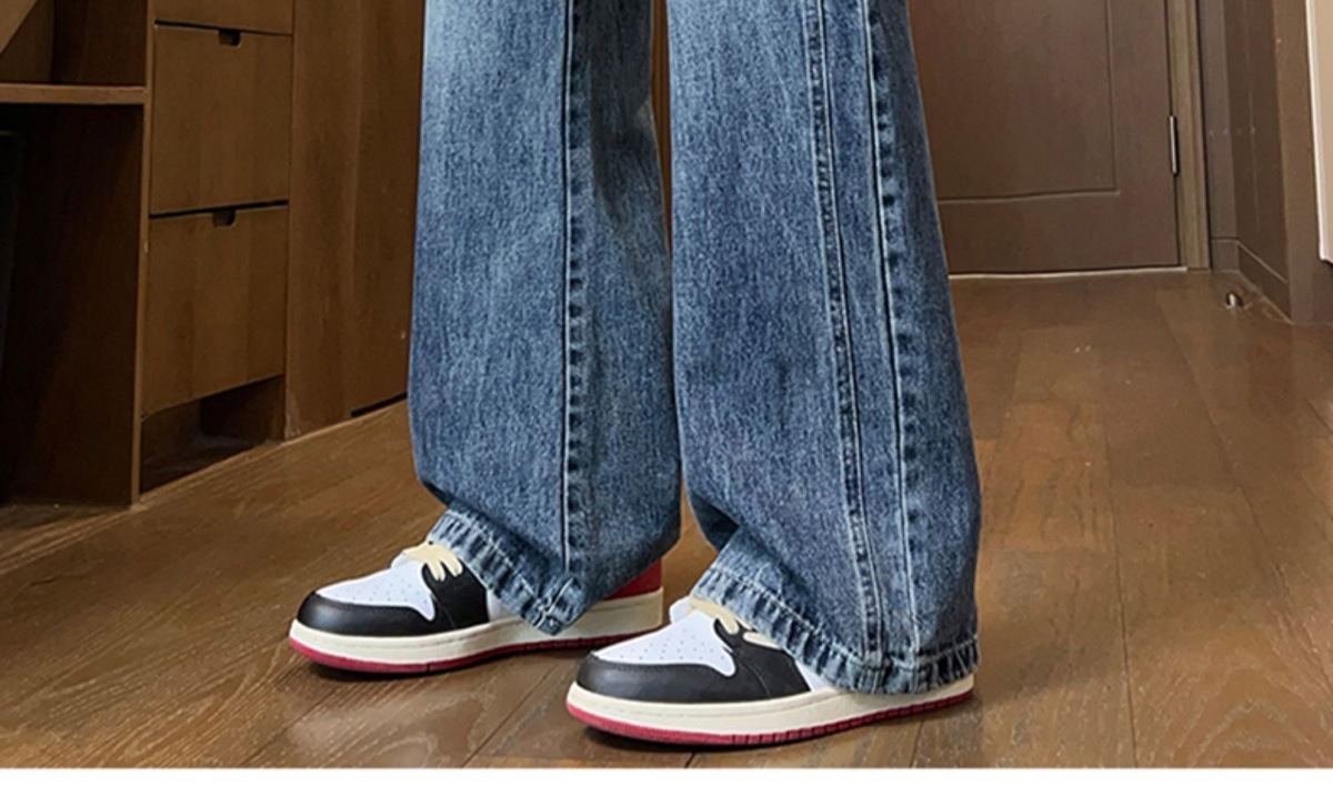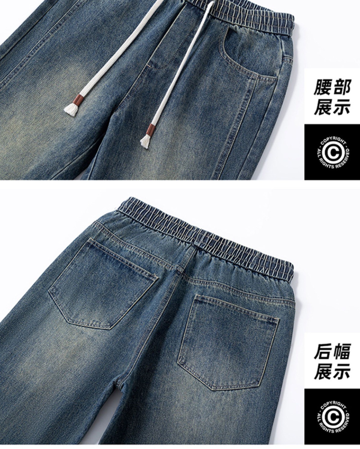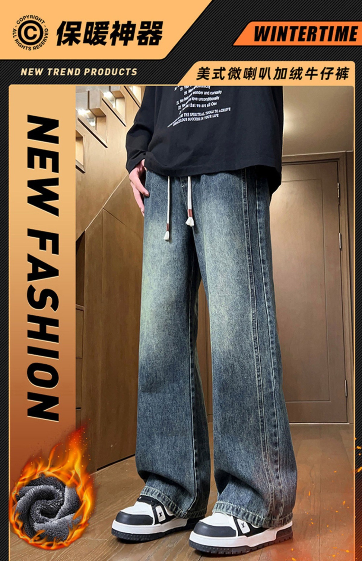 남성용 마이크로 플레어 진, 봄, 가을, 여름용 레트로 아메리칸 스타일 긴 바지, 워싱 처리된 루즈핏 청소년용 스트레이트 와이드 팬츠스토어 가기