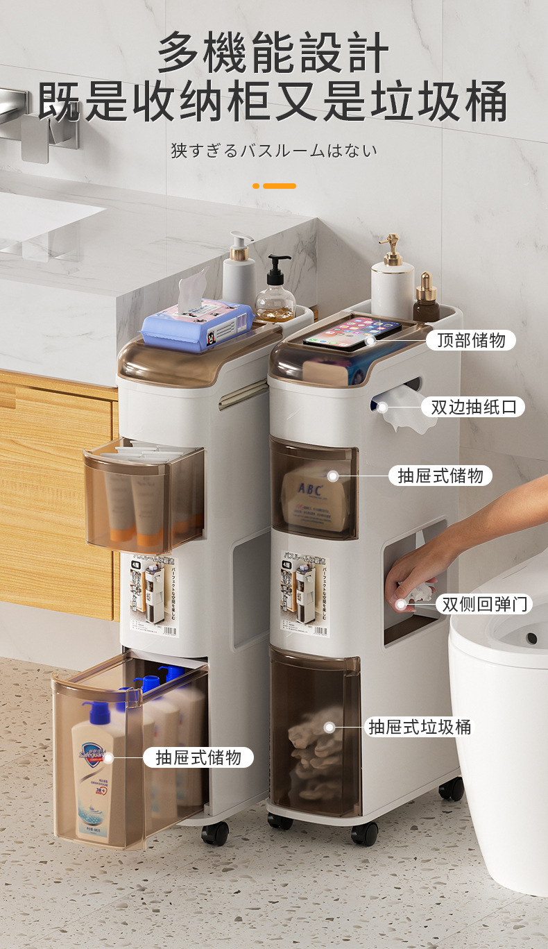 욕실 틈새 바닥 수납장, 욕실 쓰레기통 수납선반, 간이 바닥 서랍형스토어 가기