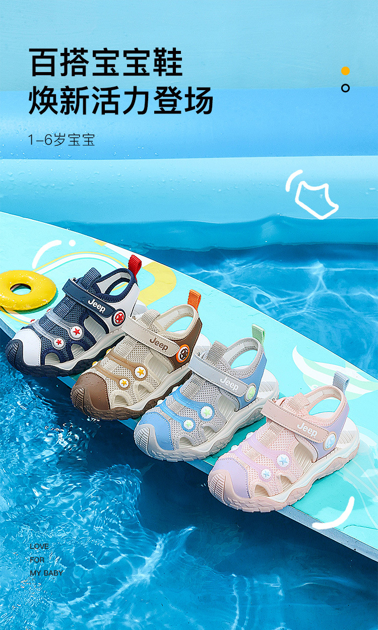 Jeep 어린이 1-6 세 Baotou 스포츠 샌들 2025 여름 새로운 실내 아기 강 해변 신발스토어 가기
