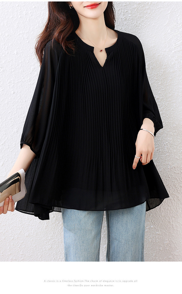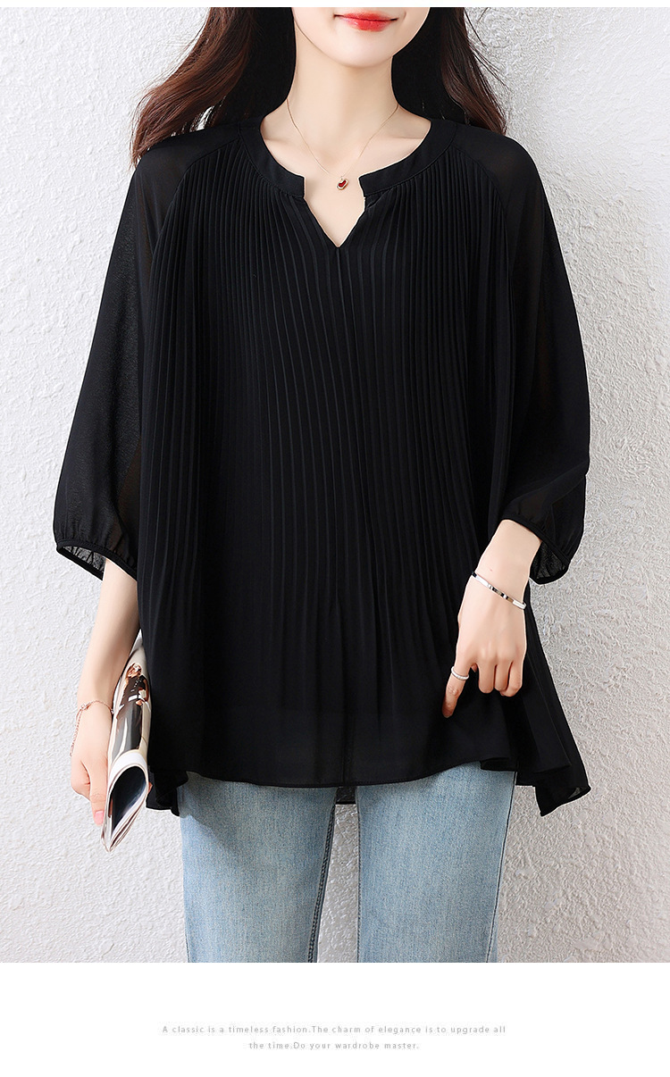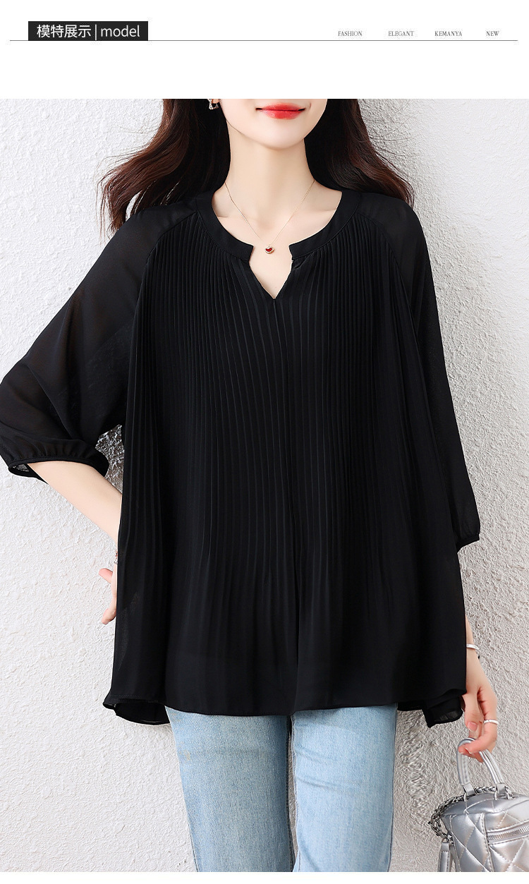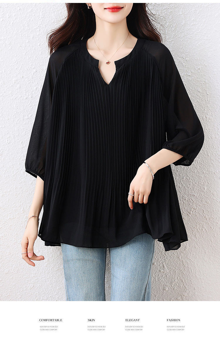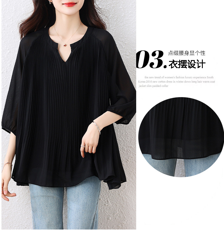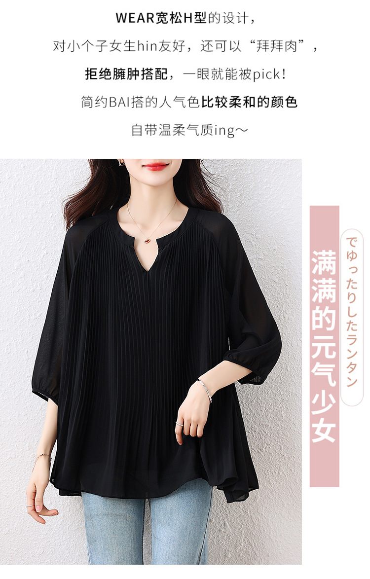 플러스 사이즈 여자 프렌치 러플 벨리 커버 반소매 쉬폰 셔츠 여성의 여름 통통녀 느슨한 슬리밍 탑