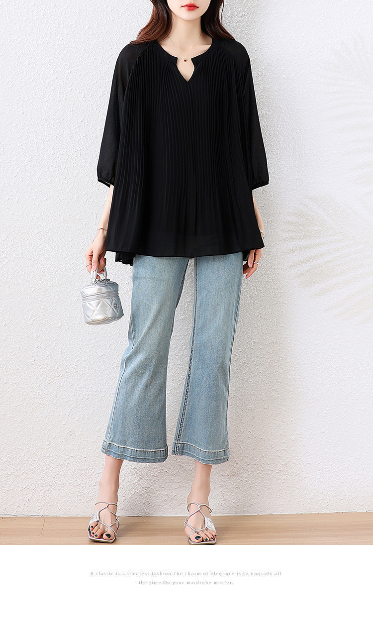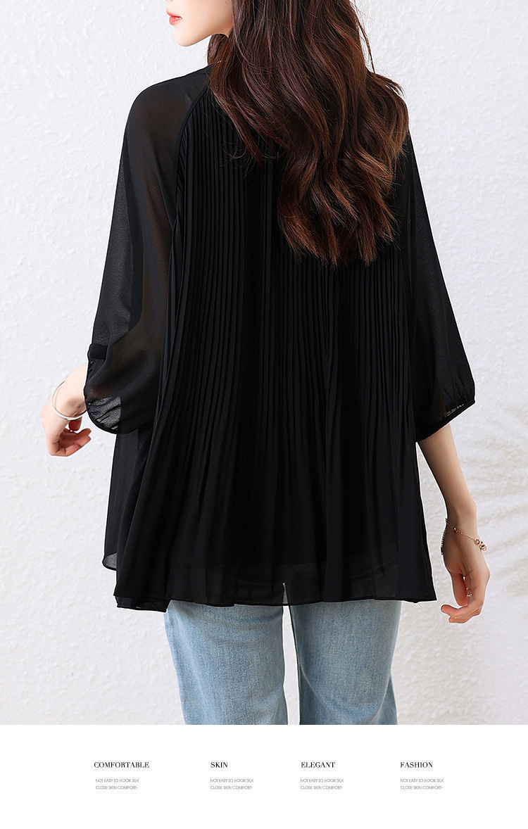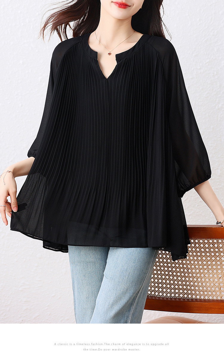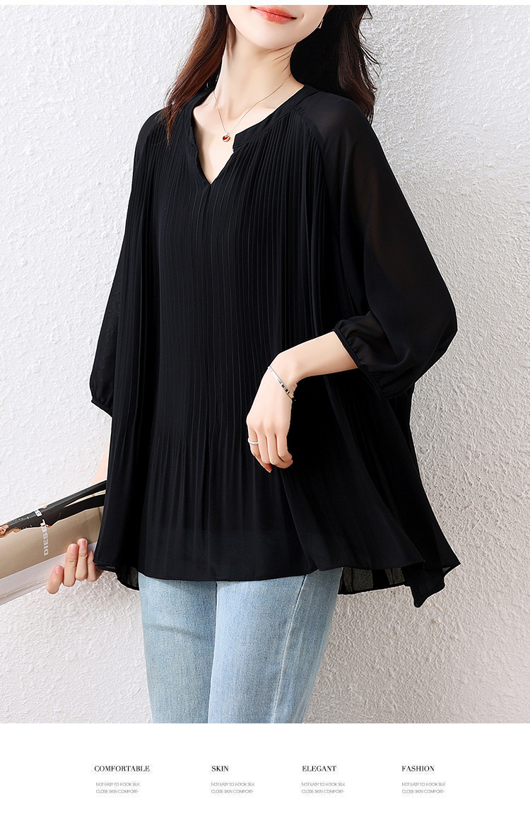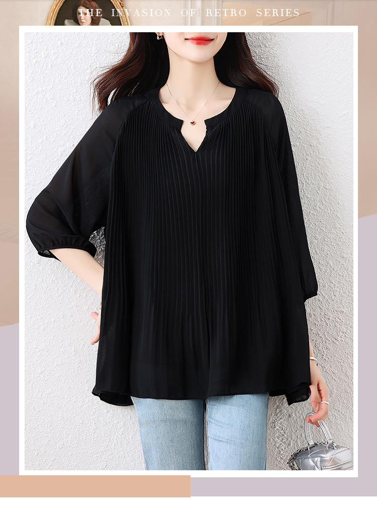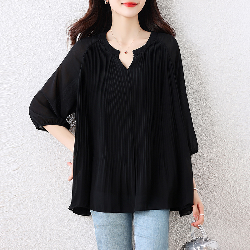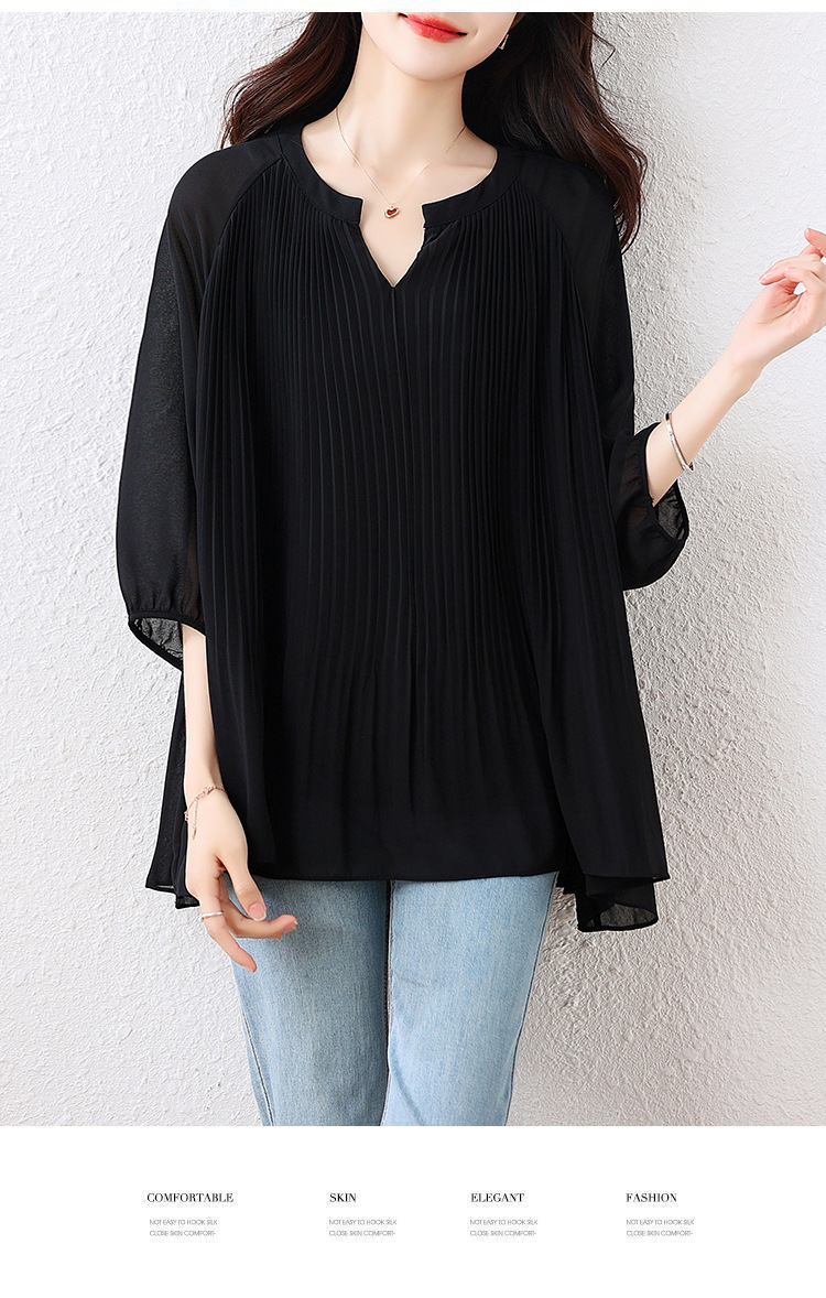 플러스 사이즈 여자 프렌치 러플 벨리 커버 반소매 쉬폰 셔츠 여성의 여름 통통녀 느슨한 슬리밍 탑
