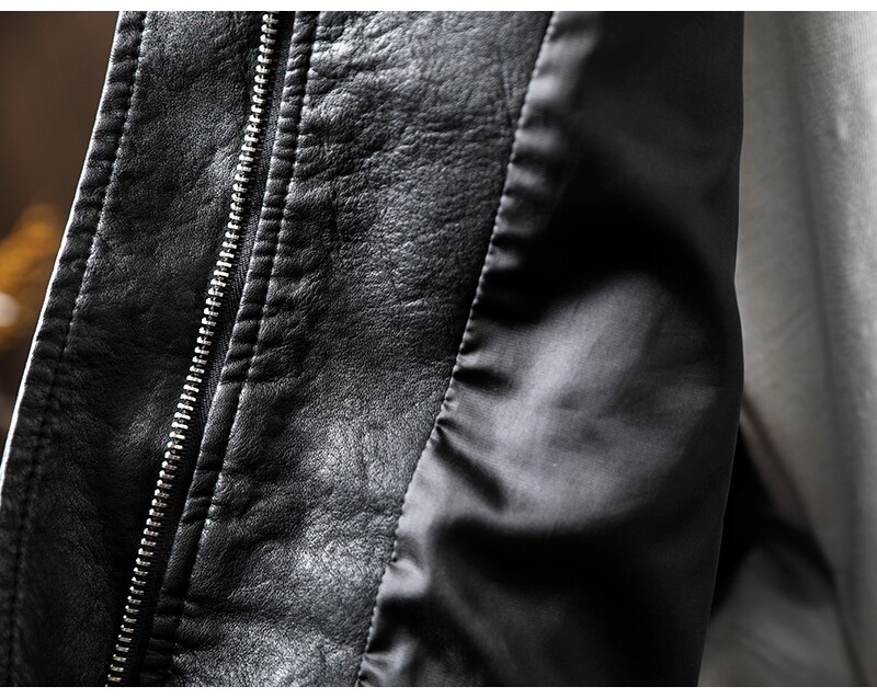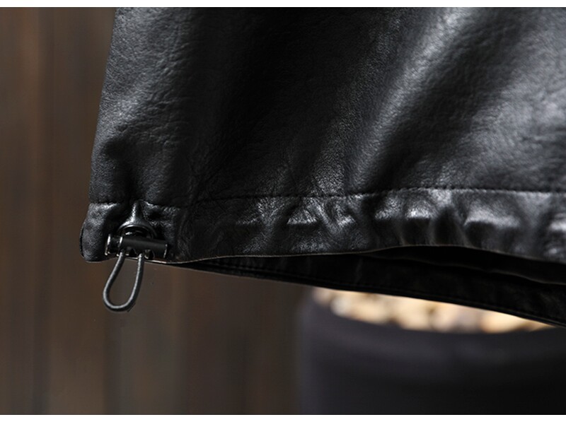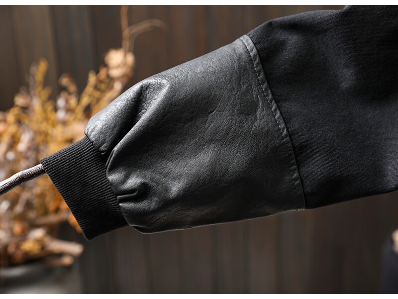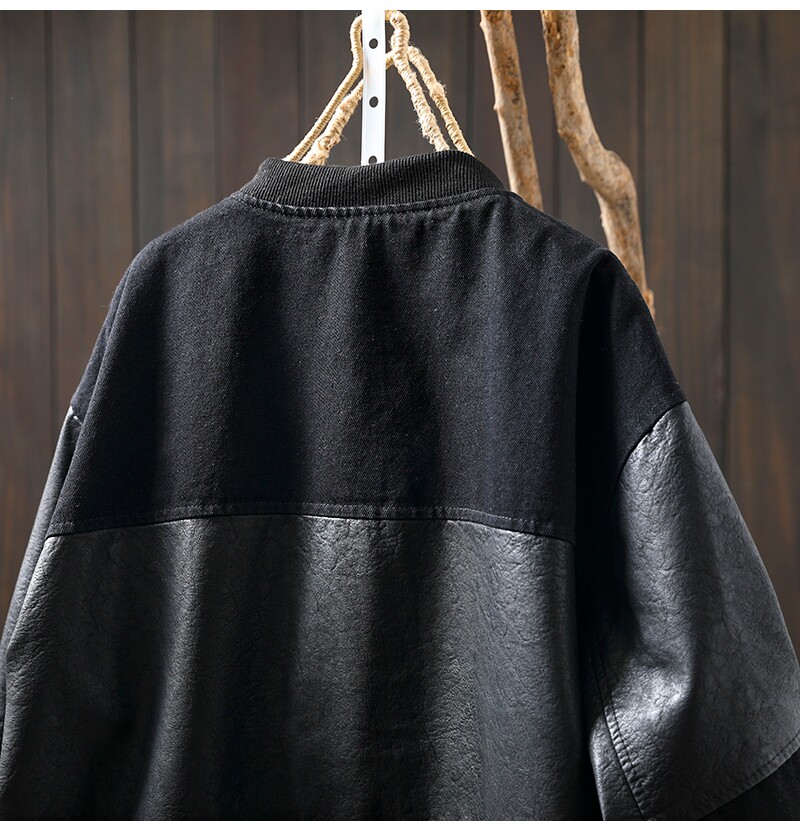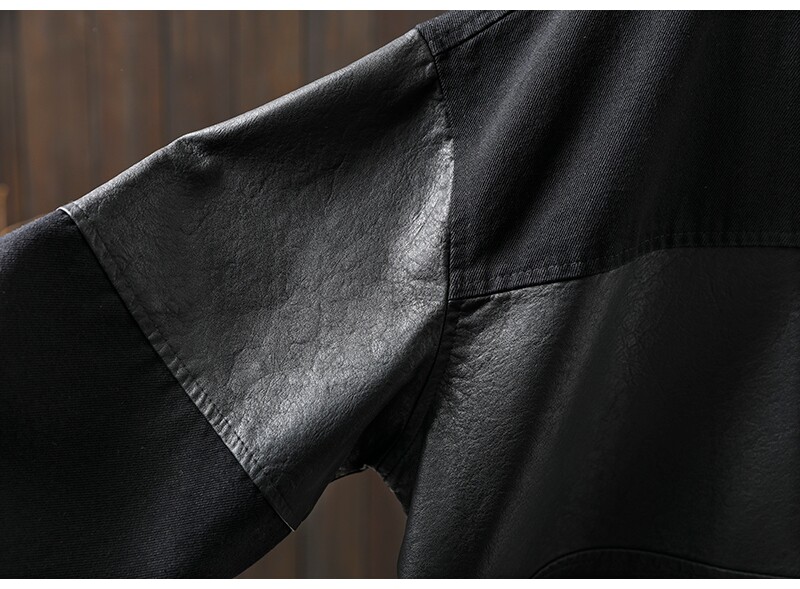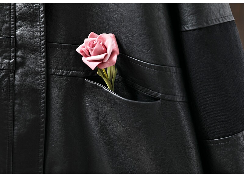 여성을 위한 세련되고 세련된 밑단 조임끈 PU 가죽 재킷, 대형 루즈 캐주얼 기질, 대비되는 색상 스플라이싱 재킷 카디건