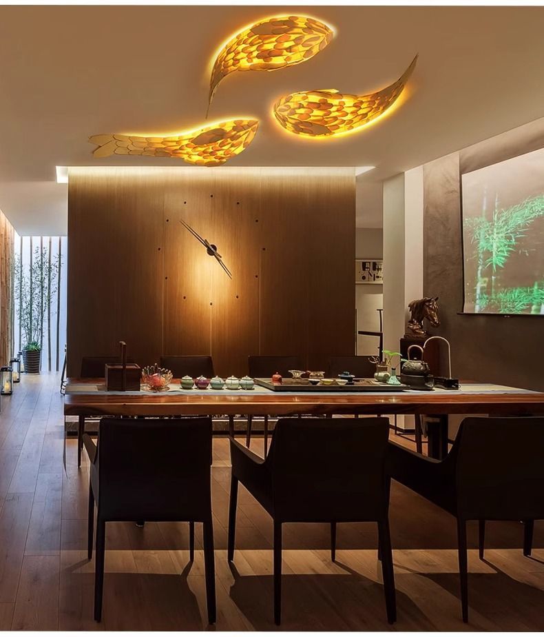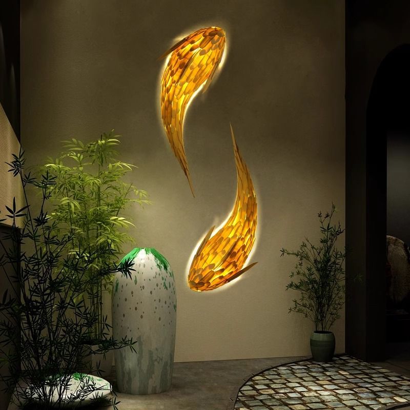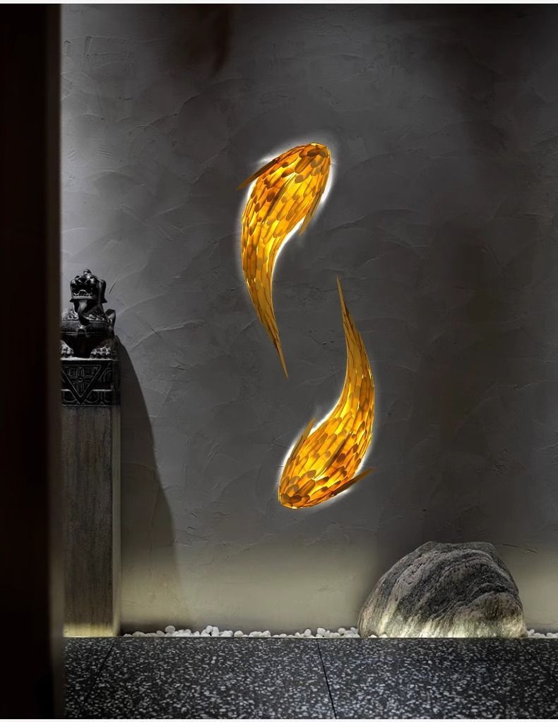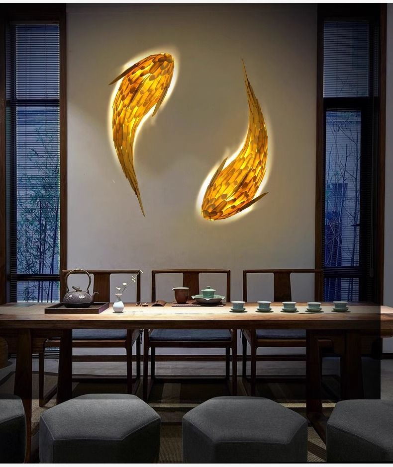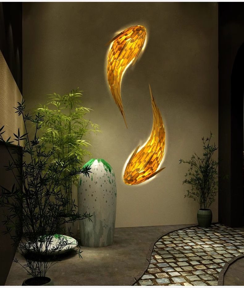 벽등 일본식 젠 스타일 다실 민박 어항등 식당 호텔 배경 벽 장식 나무 물고기 모양 조명 LED스토어 가기