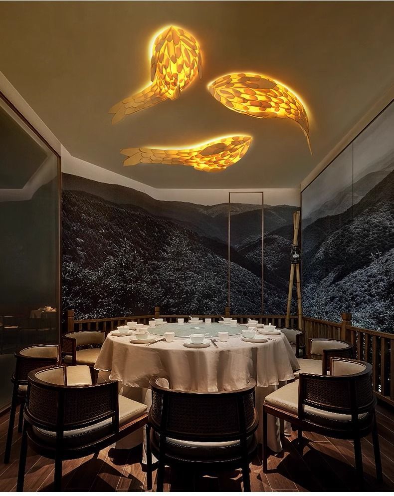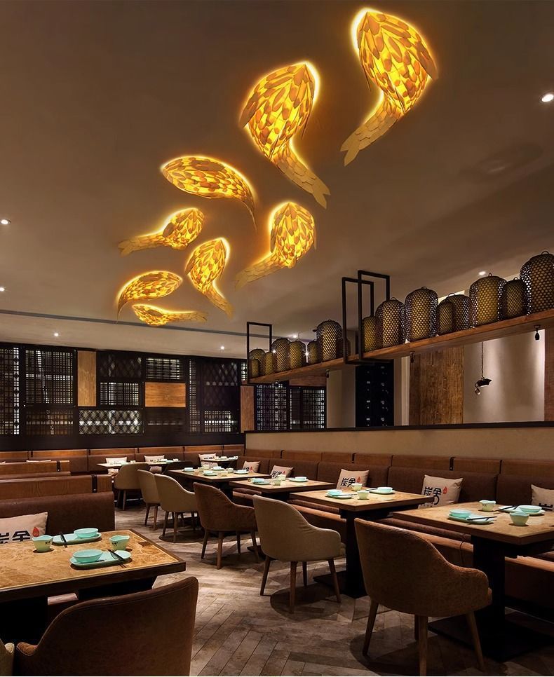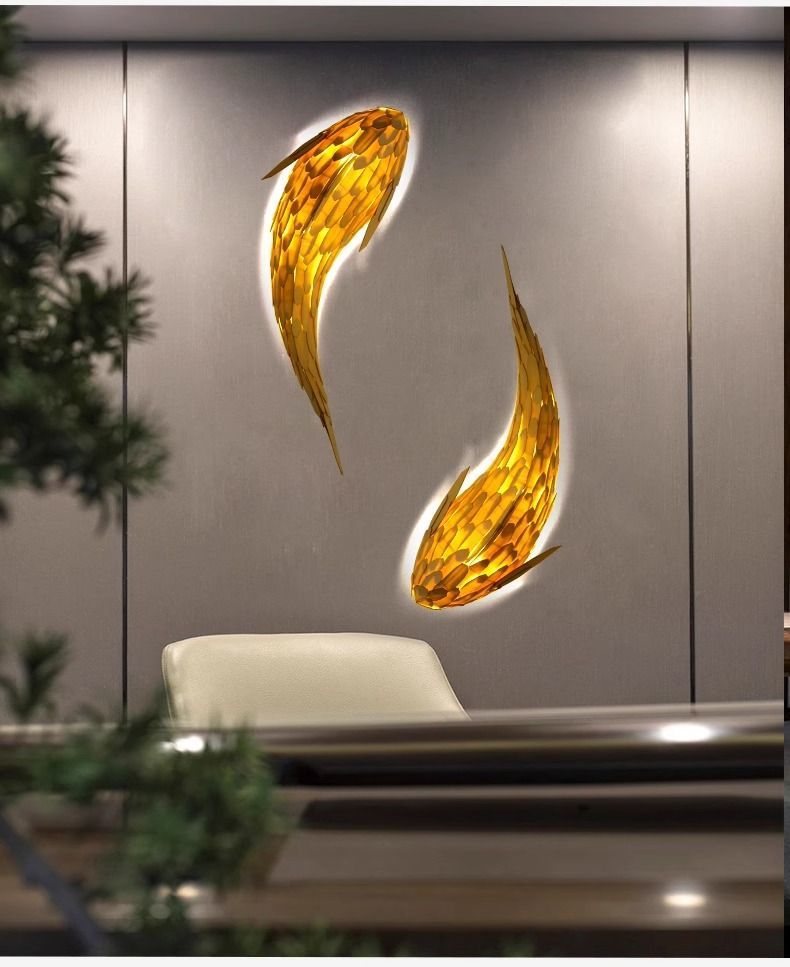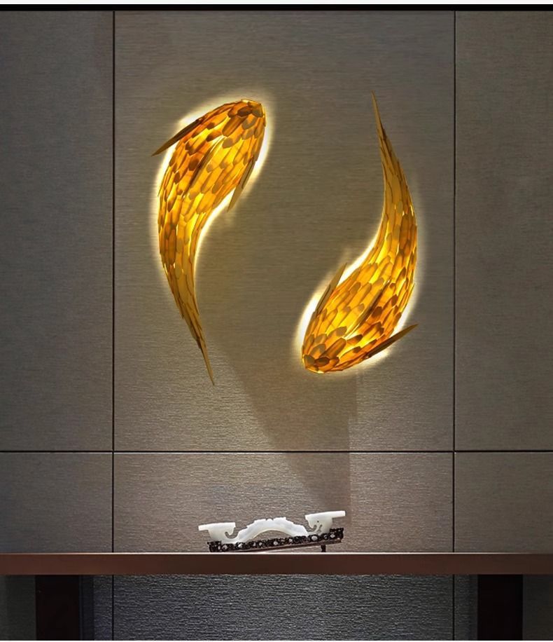 벽등 일본식 젠 스타일 다실 민박 어항등 식당 호텔 배경 벽 장식 나무 물고기 모양 조명 LED스토어 가기