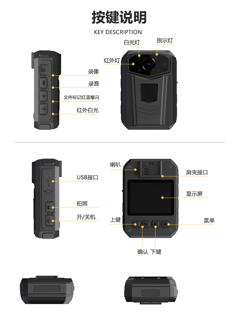 가슴에 고정된 레코더, 초소형 휴대용 촬영, 고화질 운전, 방수 및 낙하 방지, 맞춤형 로고 비디오 레코더