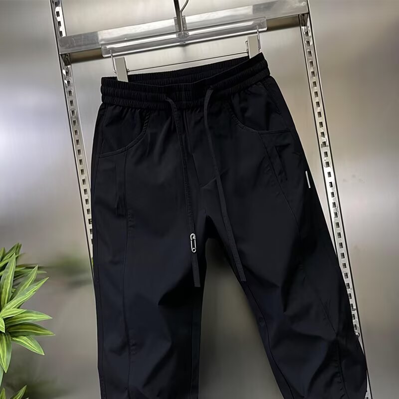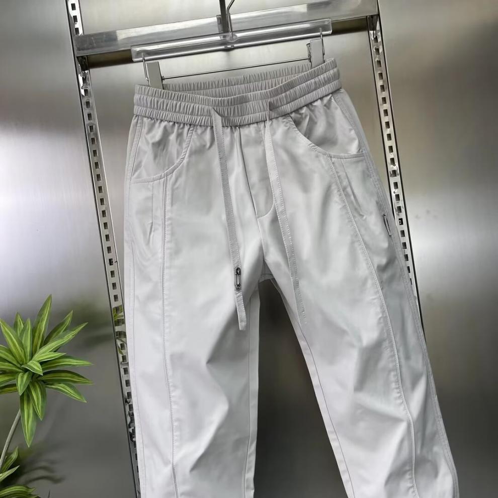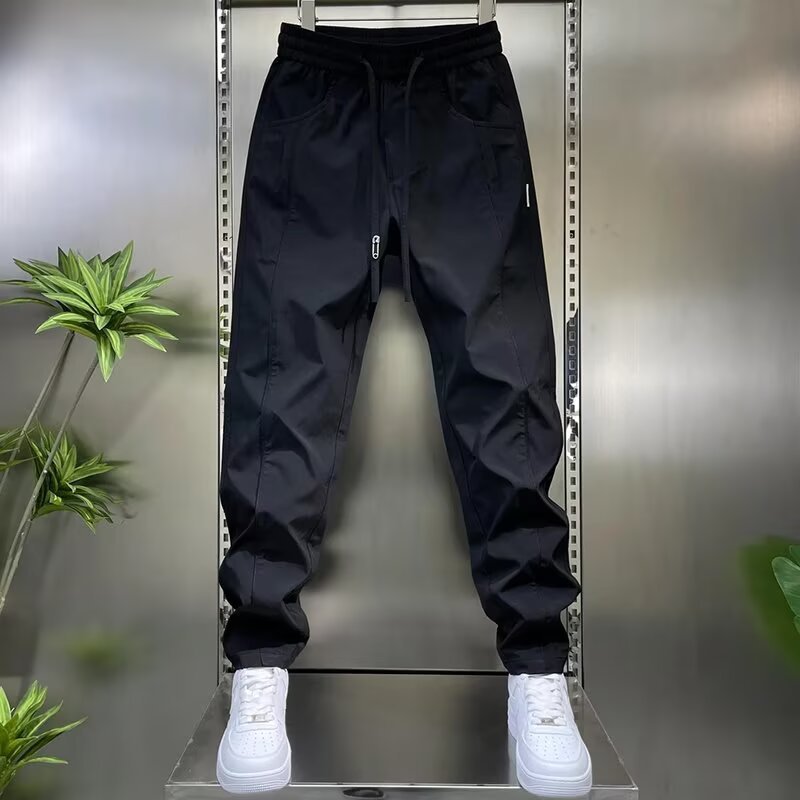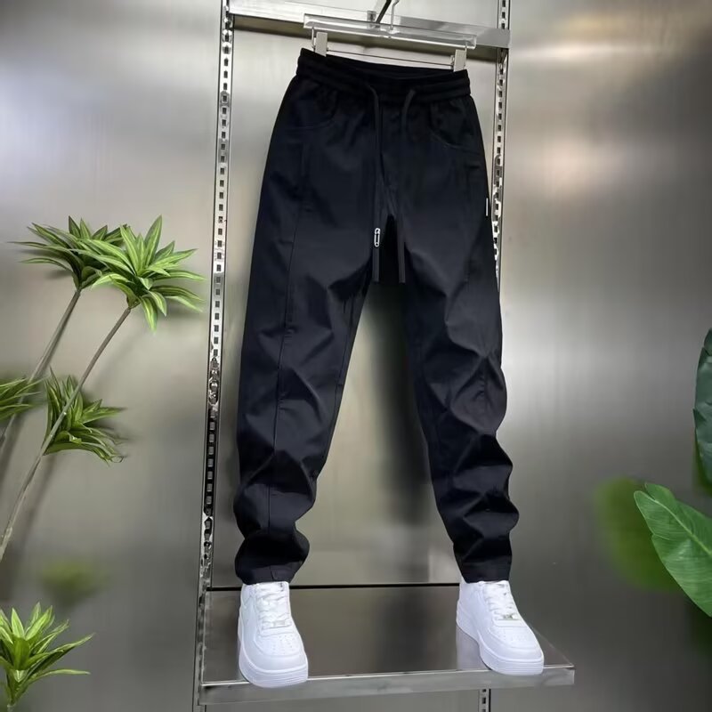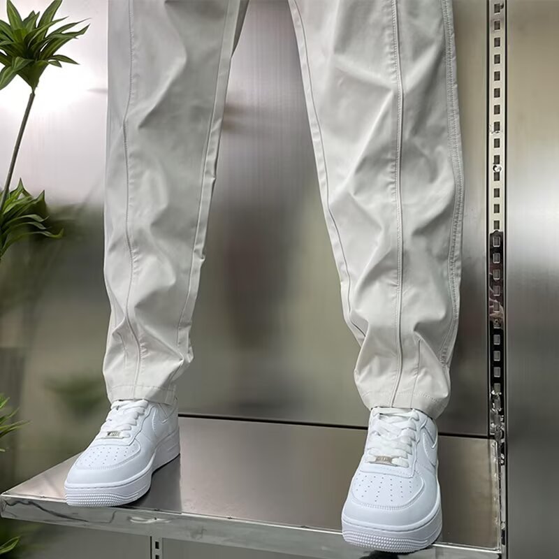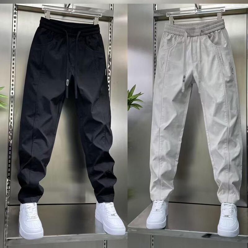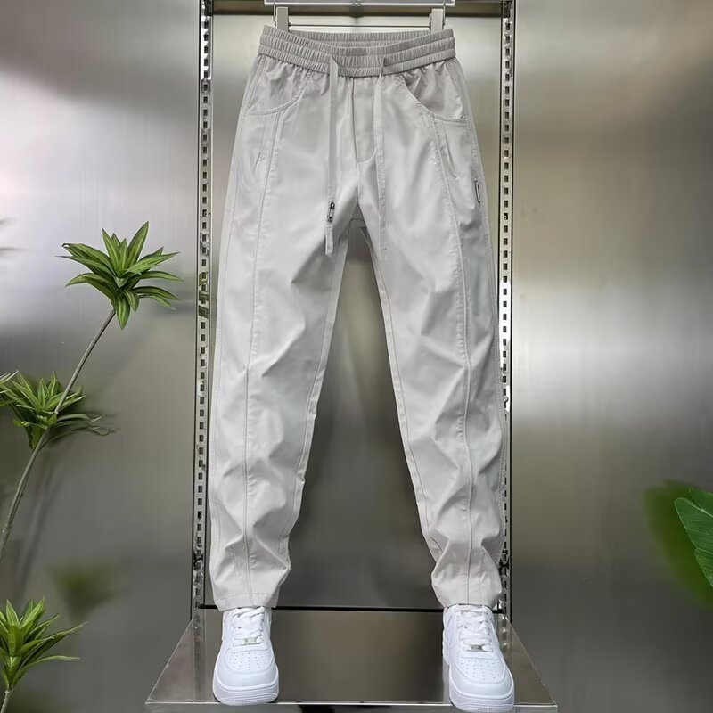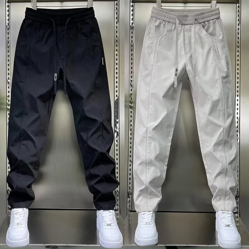남성용 바지 2025 새로운 솔리드 컬러 스플 라이스 캐주얼 바지 탄성 신축성있는 허리 스트레이트 바지 남성용 야외 충전 바지스토어 가기