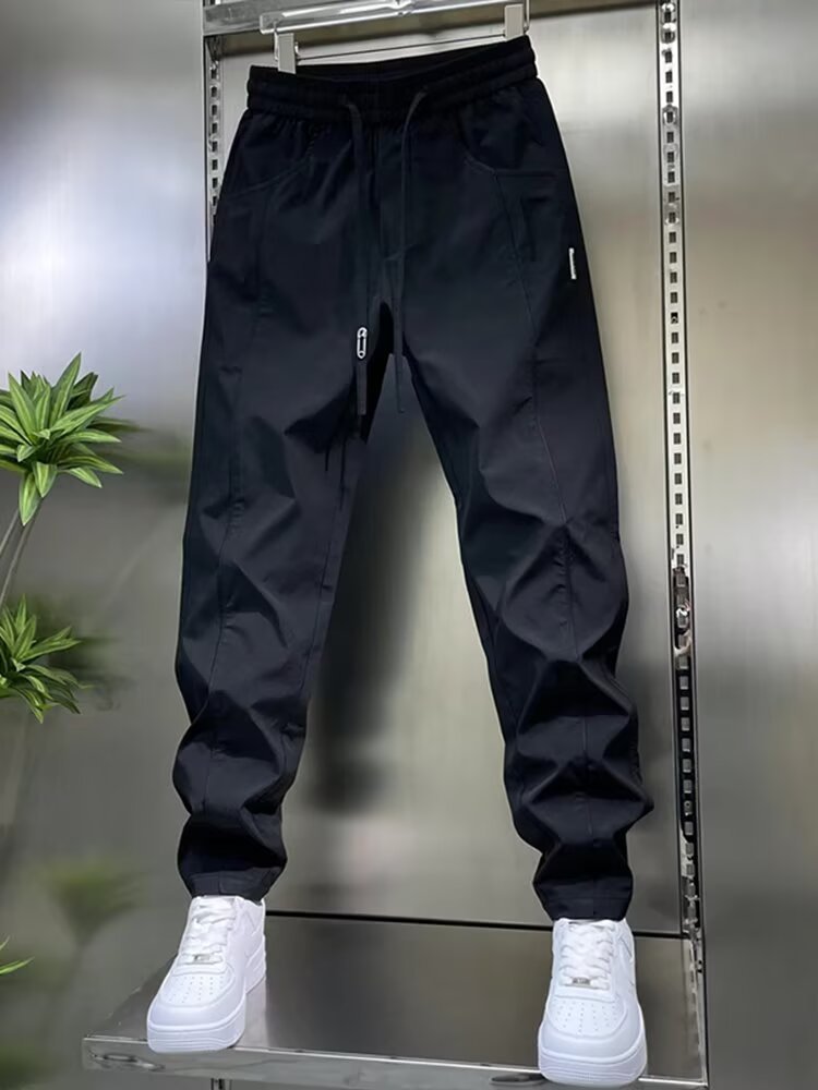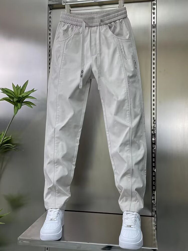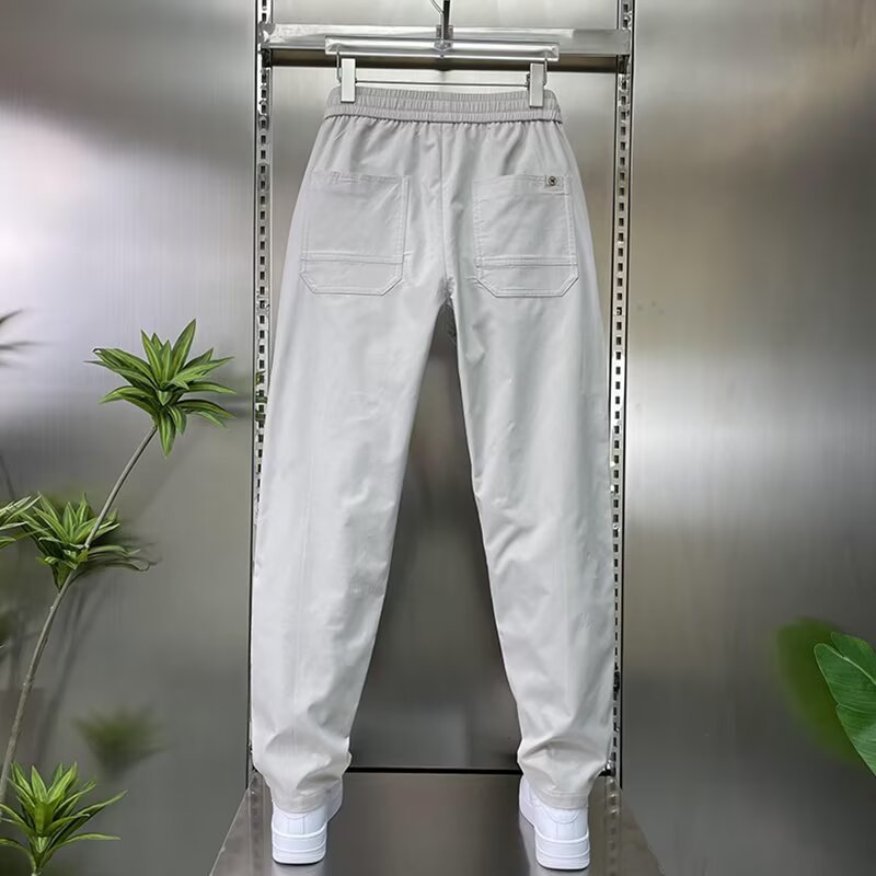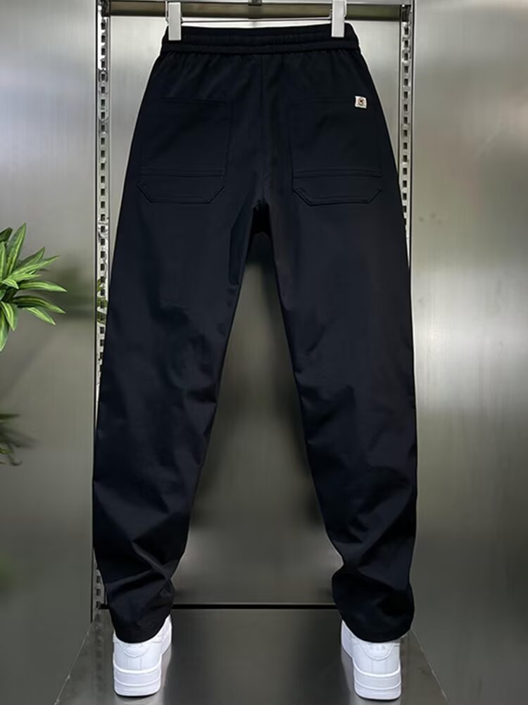 남성용 바지 2025 새로운 솔리드 컬러 스플 라이스 캐주얼 바지 탄성 신축성있는 허리 스트레이트 바지 남성용 야외 충전 바지