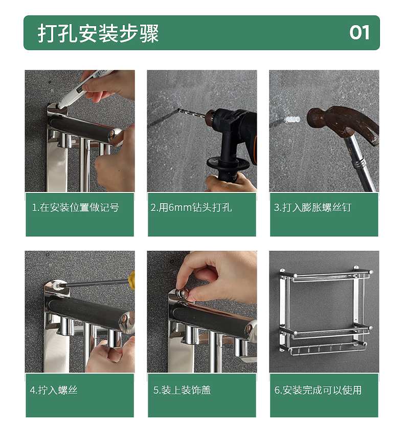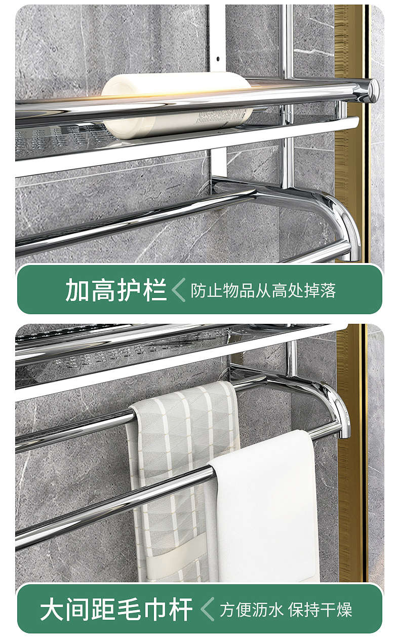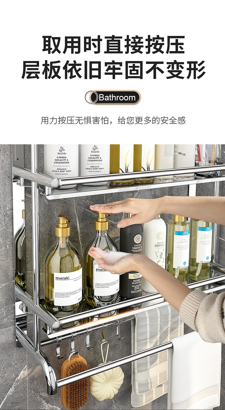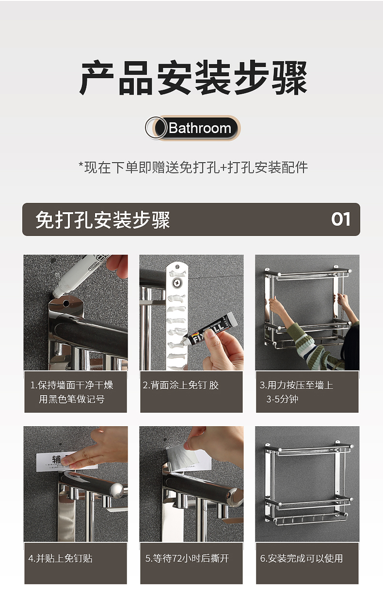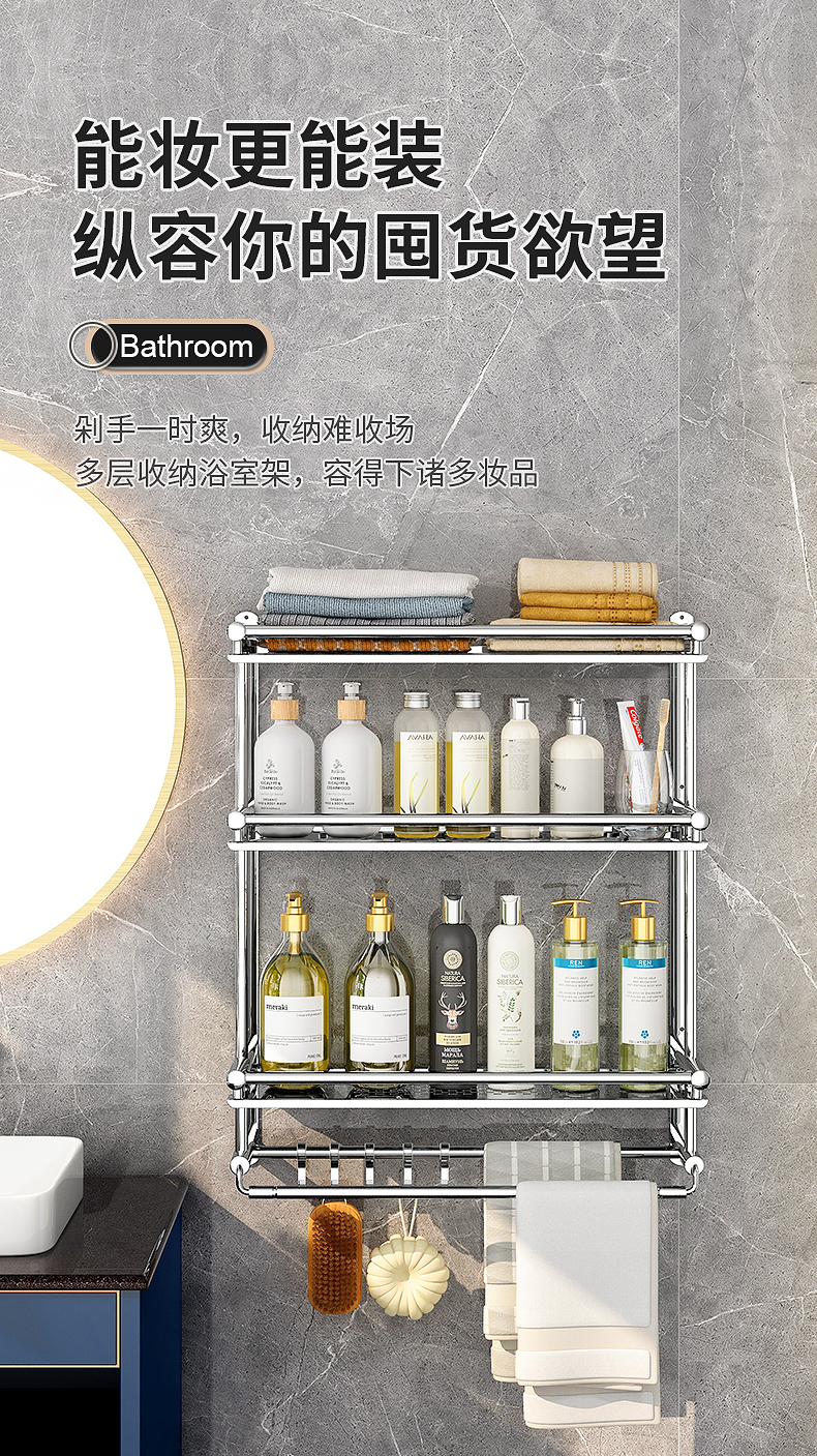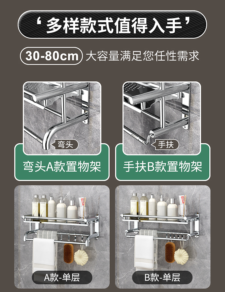 욕실 수건 걸이 욕실 보관함 304 스테인레스 스틸 욕실 화장실 선반 벽걸이 형 펀치없는 두꺼운스토어 가기