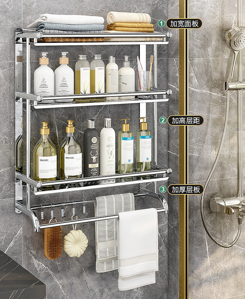 욕실 수건 걸이 욕실 보관함 304 스테인레스 스틸 욕실 화장실 선반 벽걸이 형 펀치없는 두꺼운