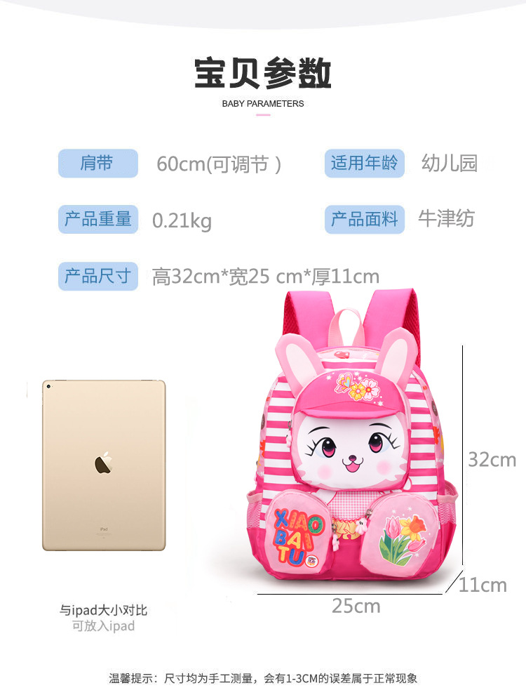한국식 3 차원 유치원 스쿨백 소녀 토끼 3-5-6 세 아기 귀여운 아기 어린이 서양식 배낭