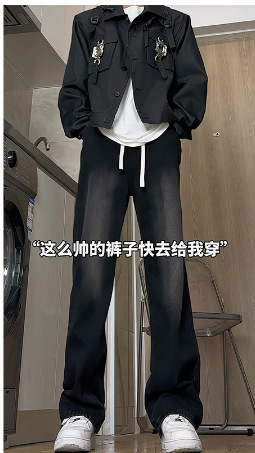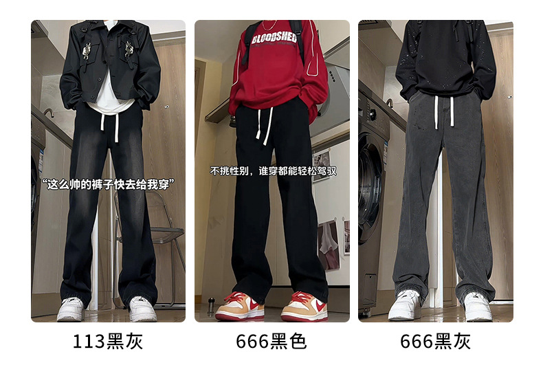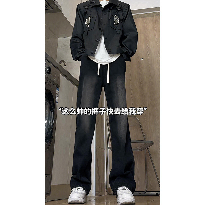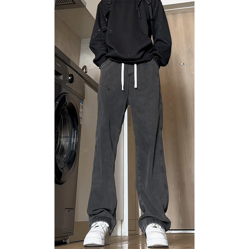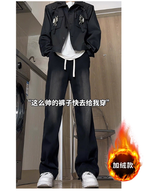 긴 키 남성용 2025 가을 겨울 신상 데님 팬츠, 청소년용 아메리칸 스타일 스트레이트 플러스 벨벳 팬츠스토어 가기