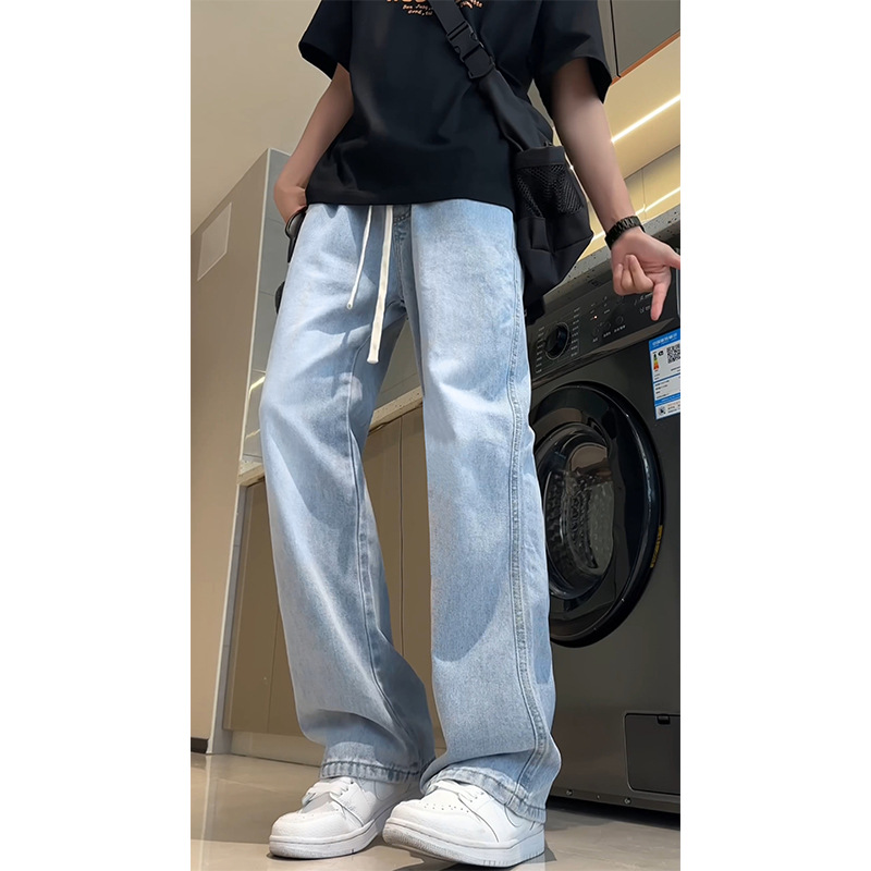 긴 키 남성용 2025 가을 겨울 신상 데님 팬츠, 청소년용 아메리칸 스타일 스트레이트 플러스 벨벳 팬츠
