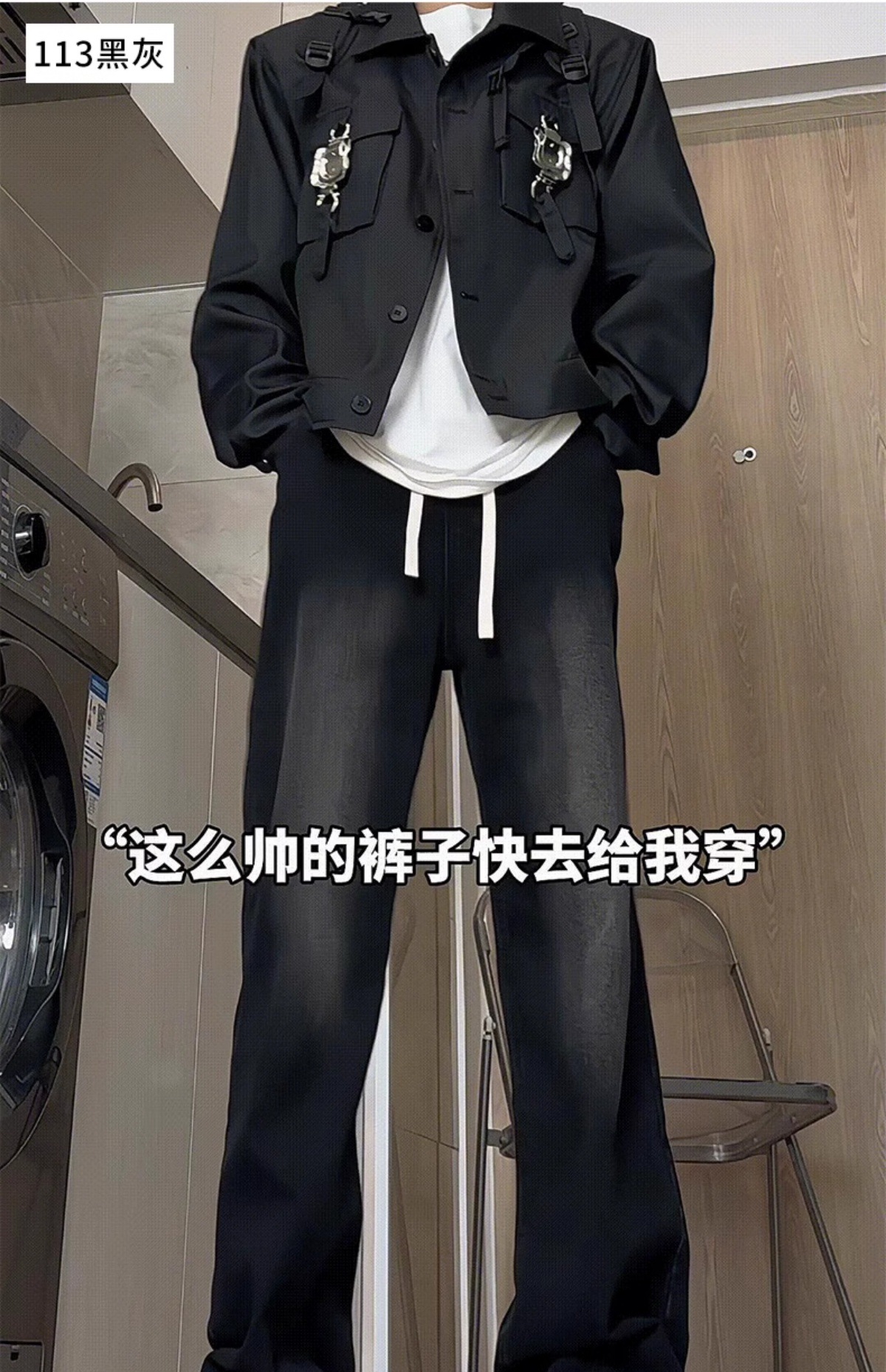 • 113 (기장 추가 없음) - 블랙/회색 [신장 160-175cm에 적합]