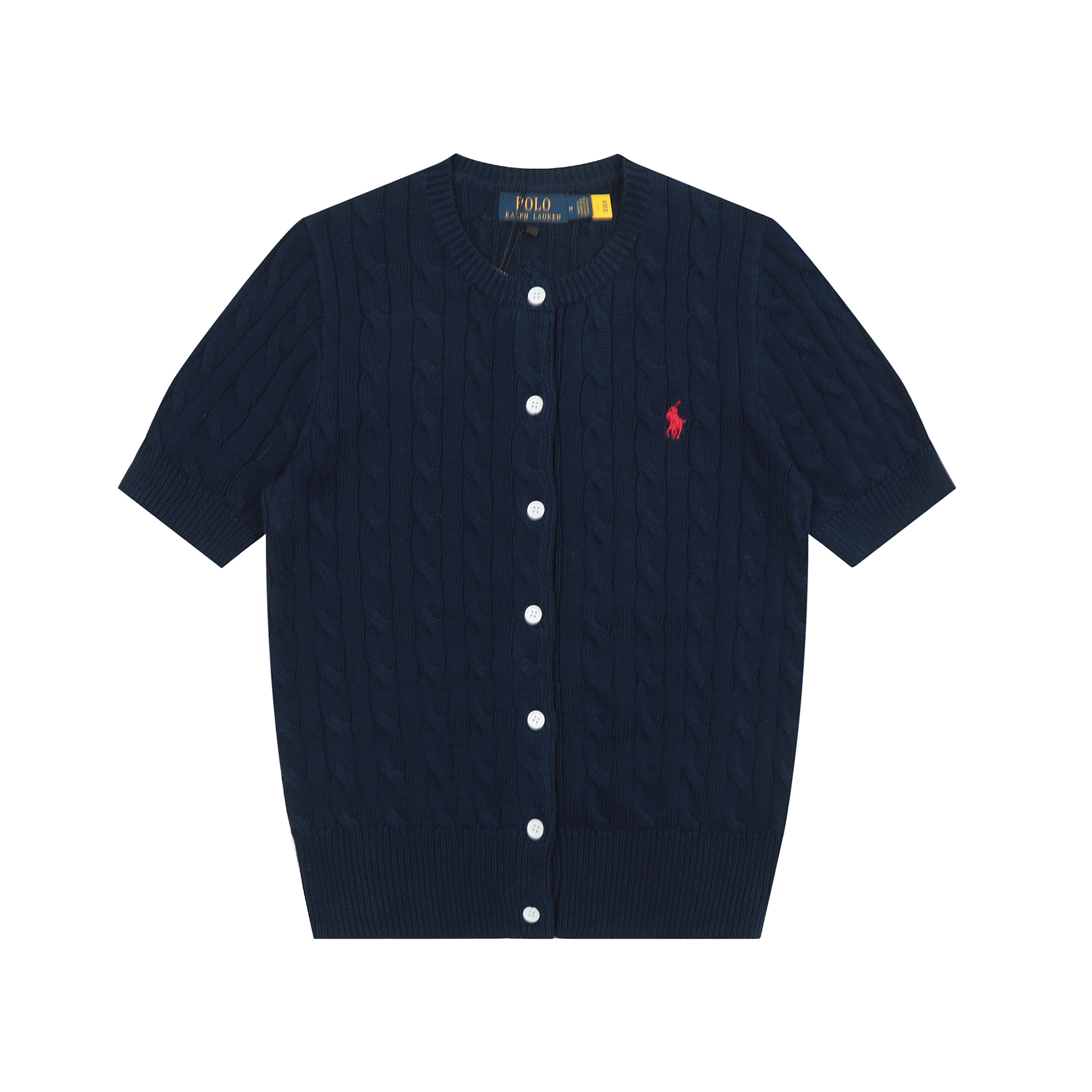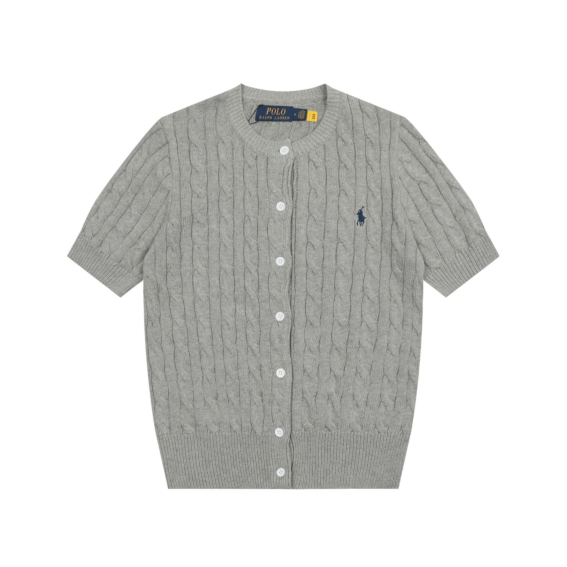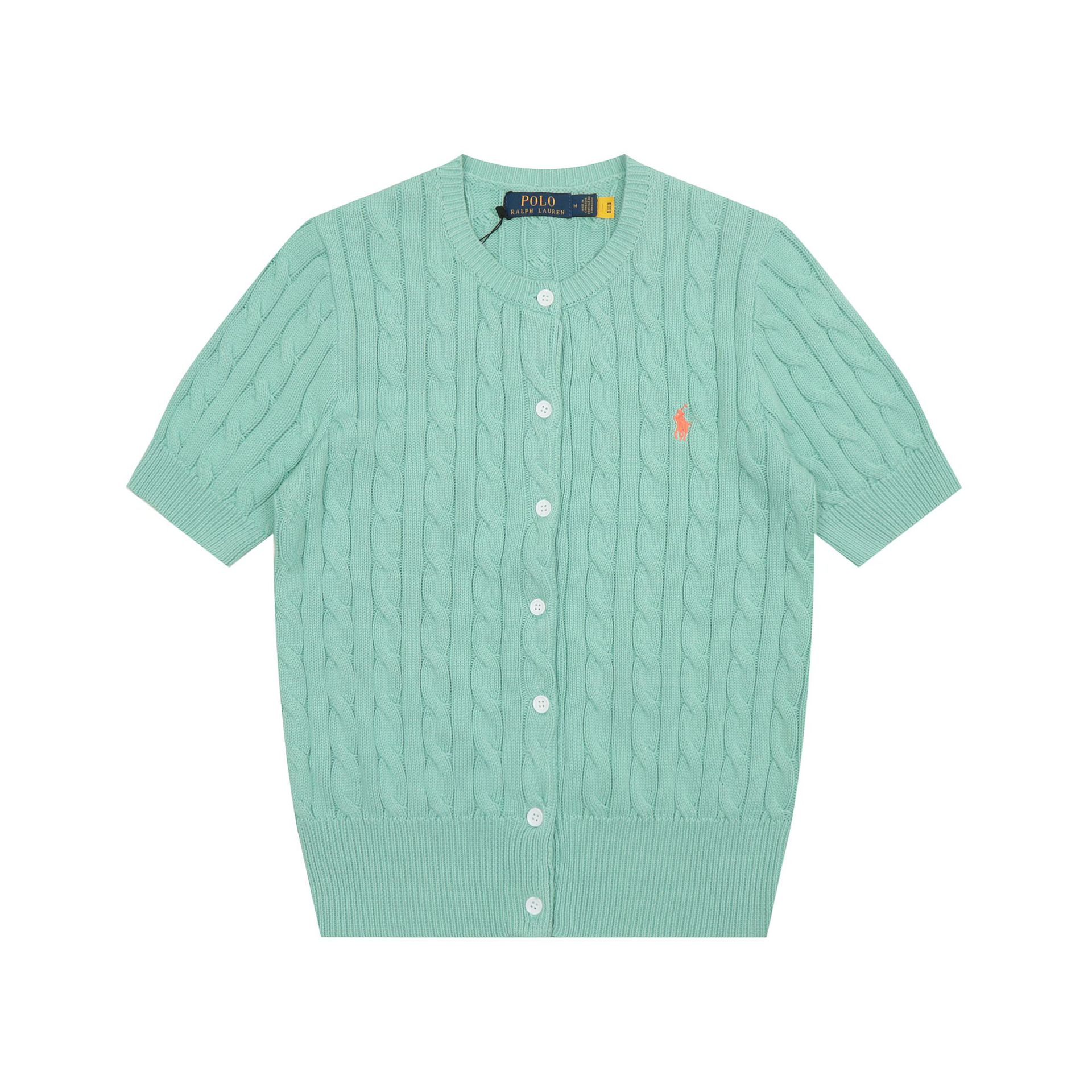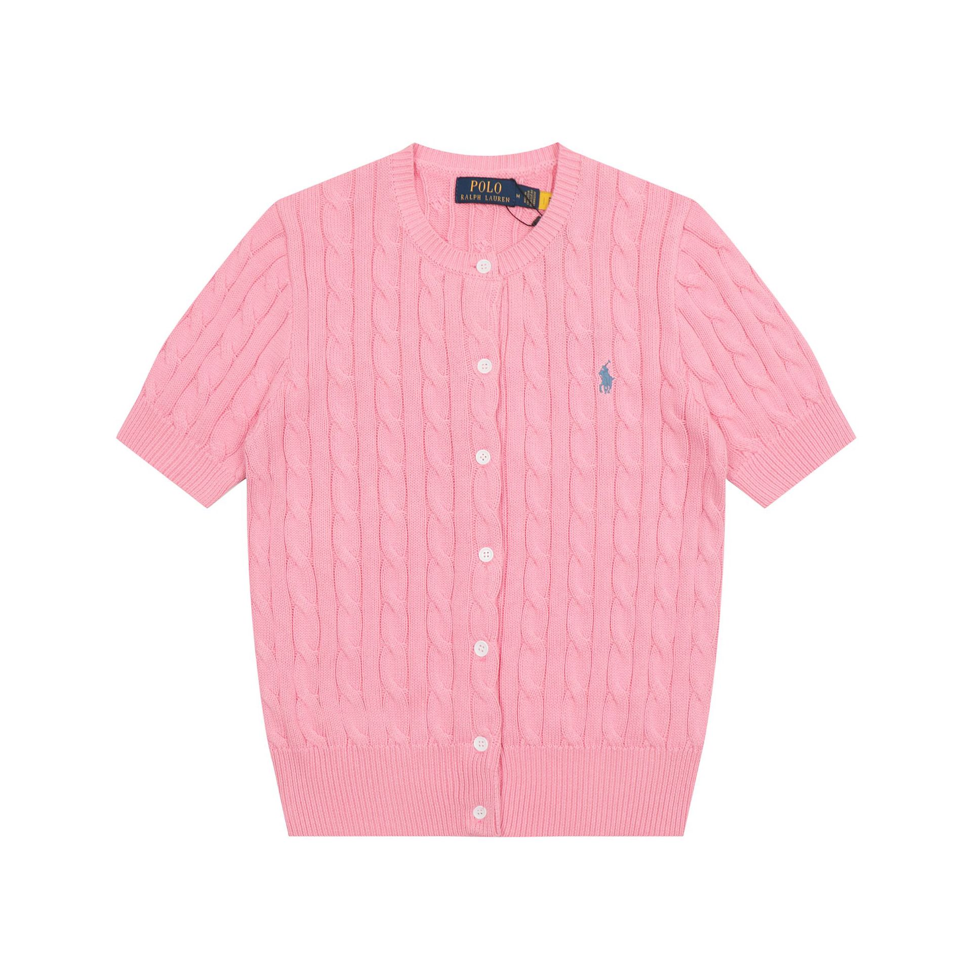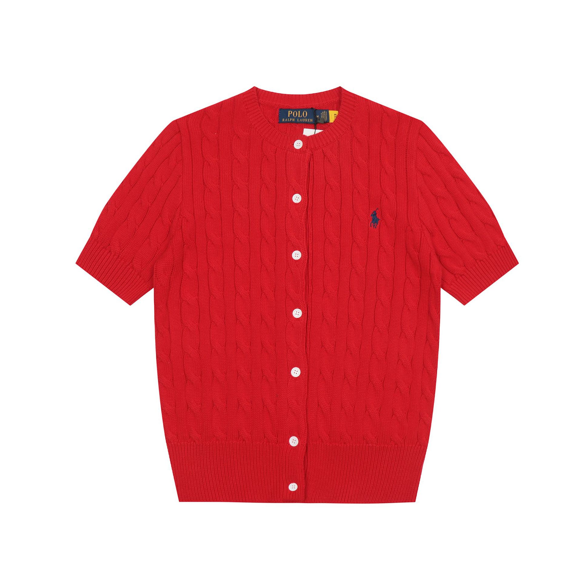 SS 스윕 RL 러프 포니 자수 폴로 반팔 니트 셔츠 트위스트 카디건 여성용 간단한 티셔츠 탑