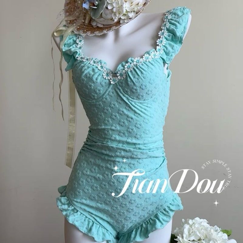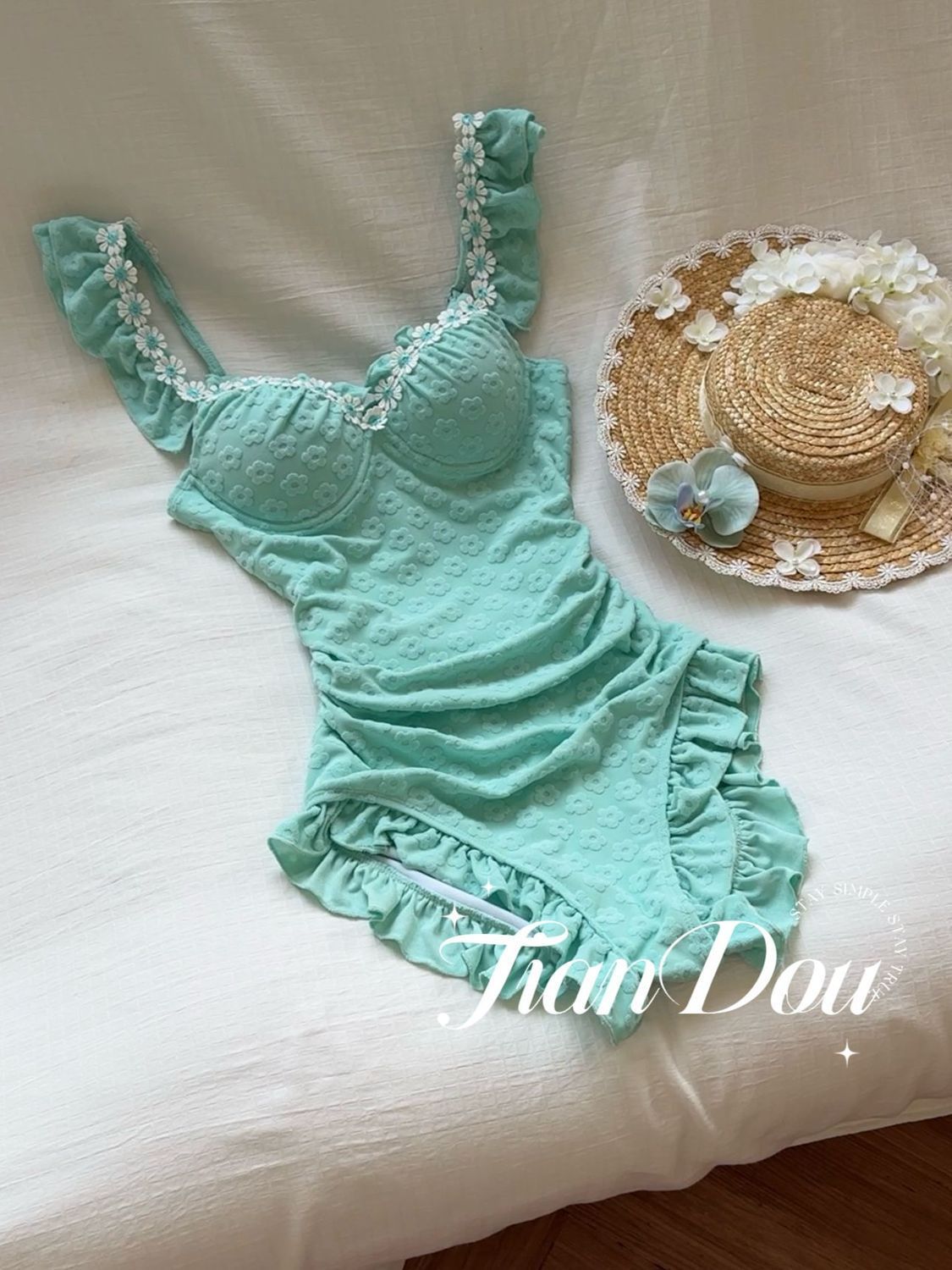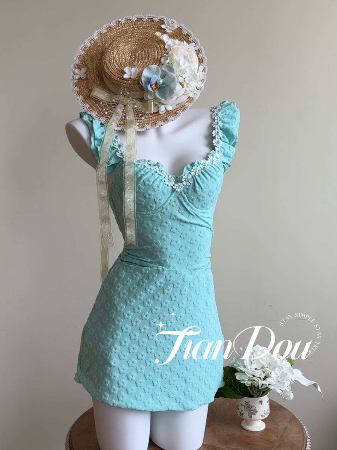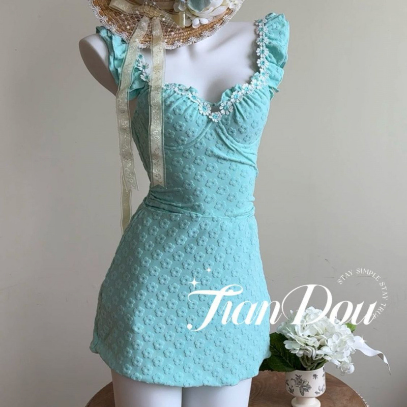 [Sweet Daisy] 작은 가슴을 가진 여성을 위한 민트 그린 고급 질감의 온천 리조트 원피스 수영복