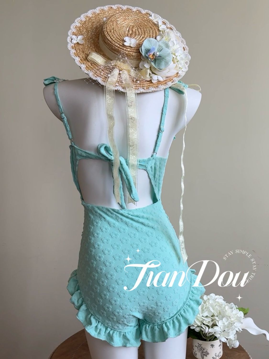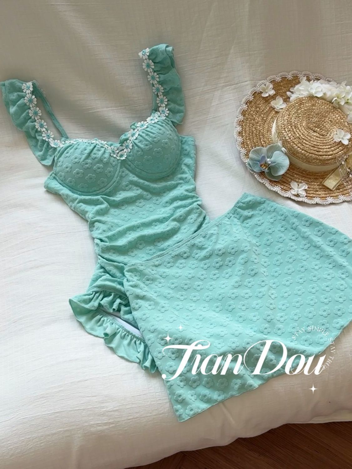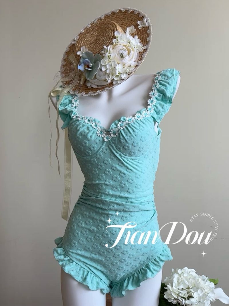 [Sweet Daisy] 작은 가슴을 가진 여성을 위한 민트 그린 고급 질감의 온천 리조트 원피스 수영복